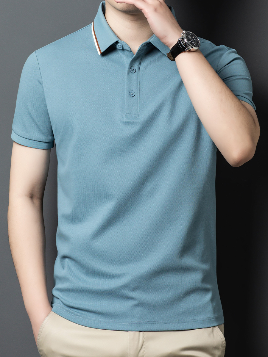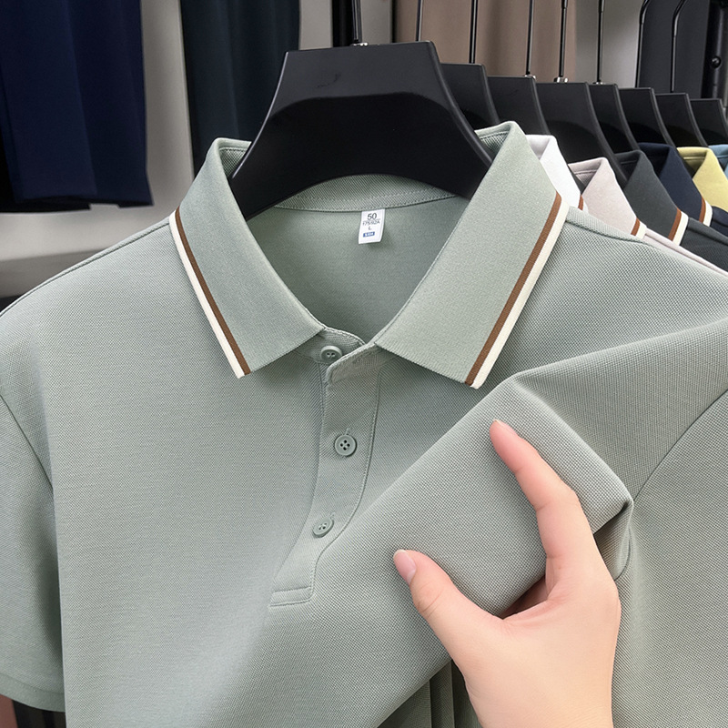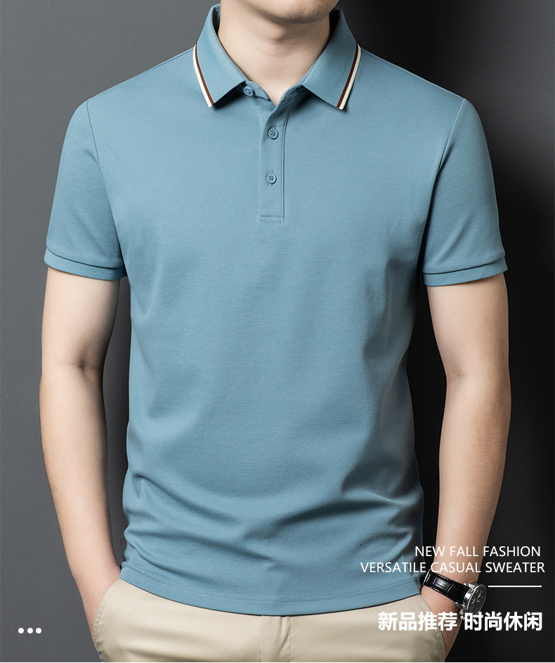 男士短袖t恤夏季双面莱赛尔翻领商务休闲公司工装半袖体恤
