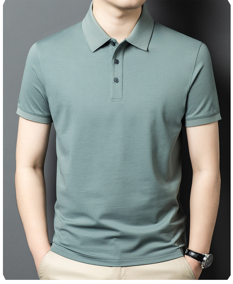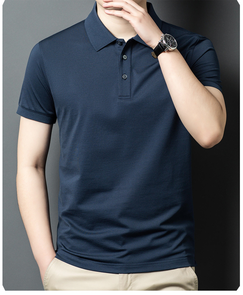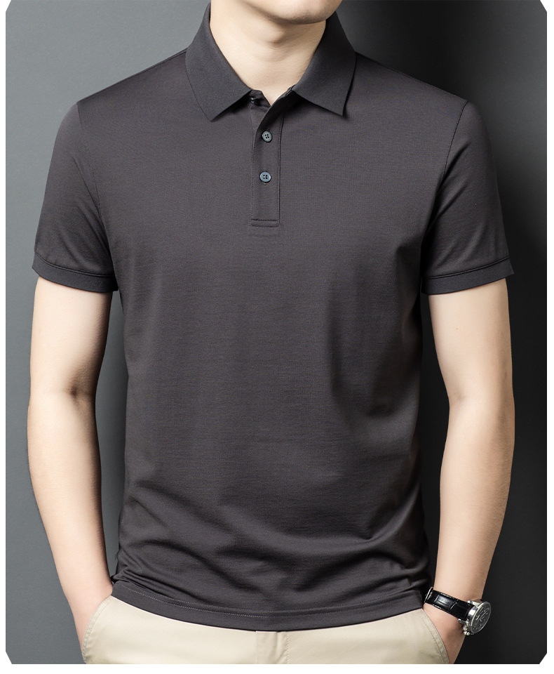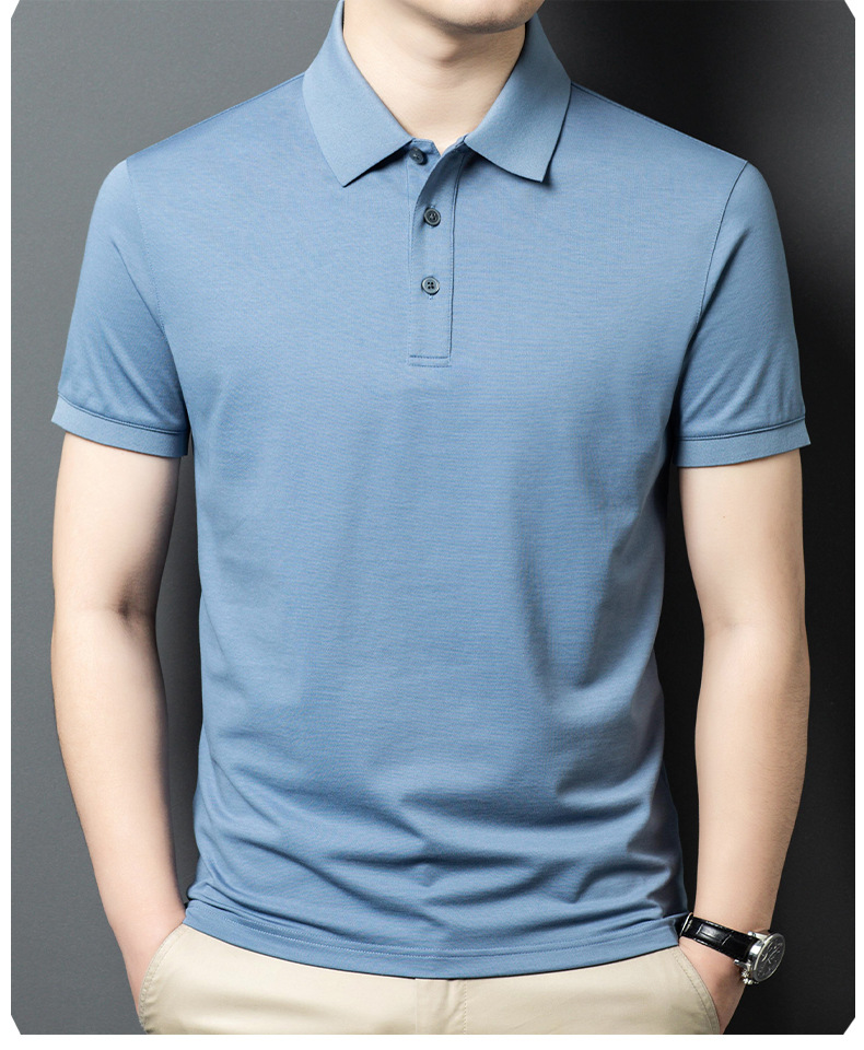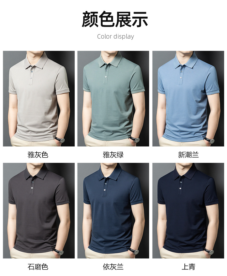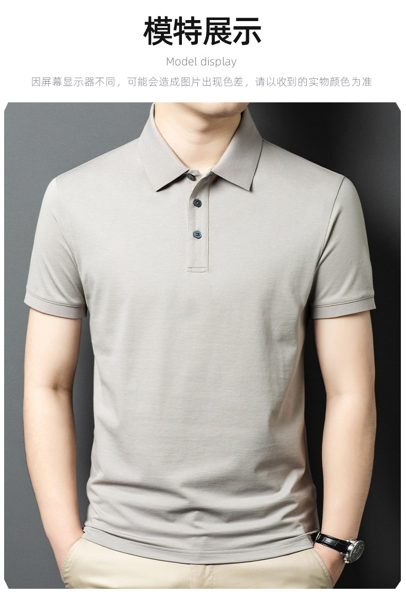 桑蚕丝短袖t恤男翻领纯色夏装上衣中年爸爸装商务休