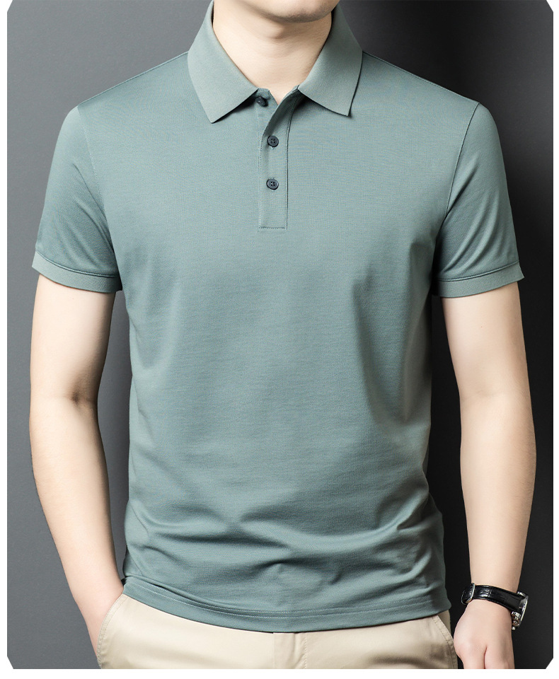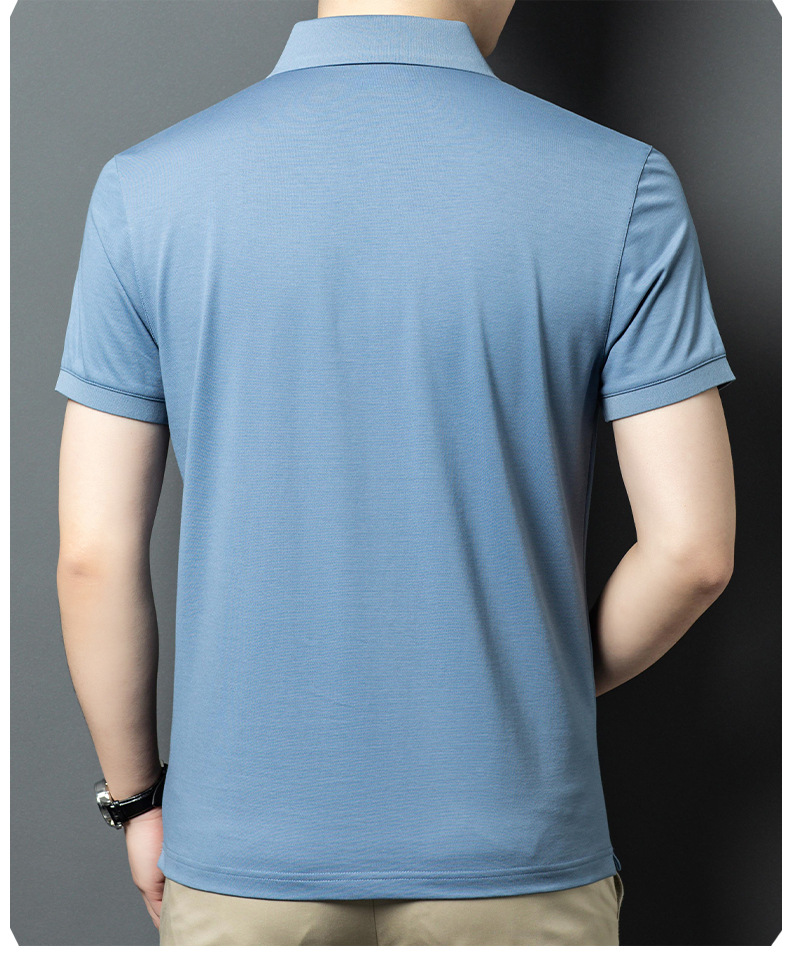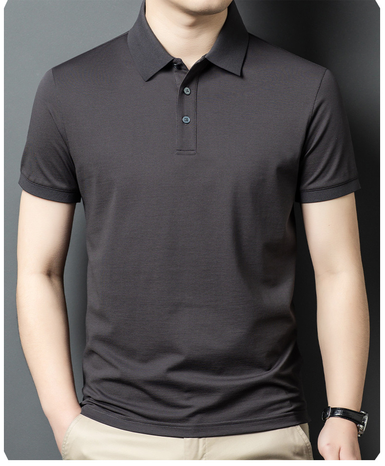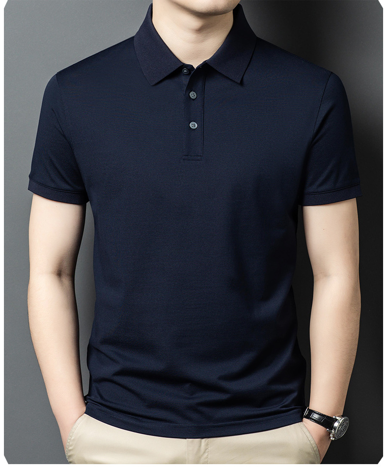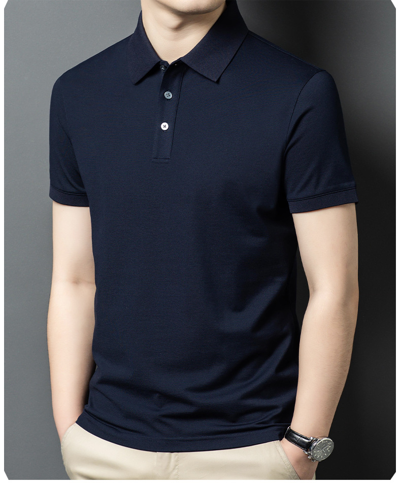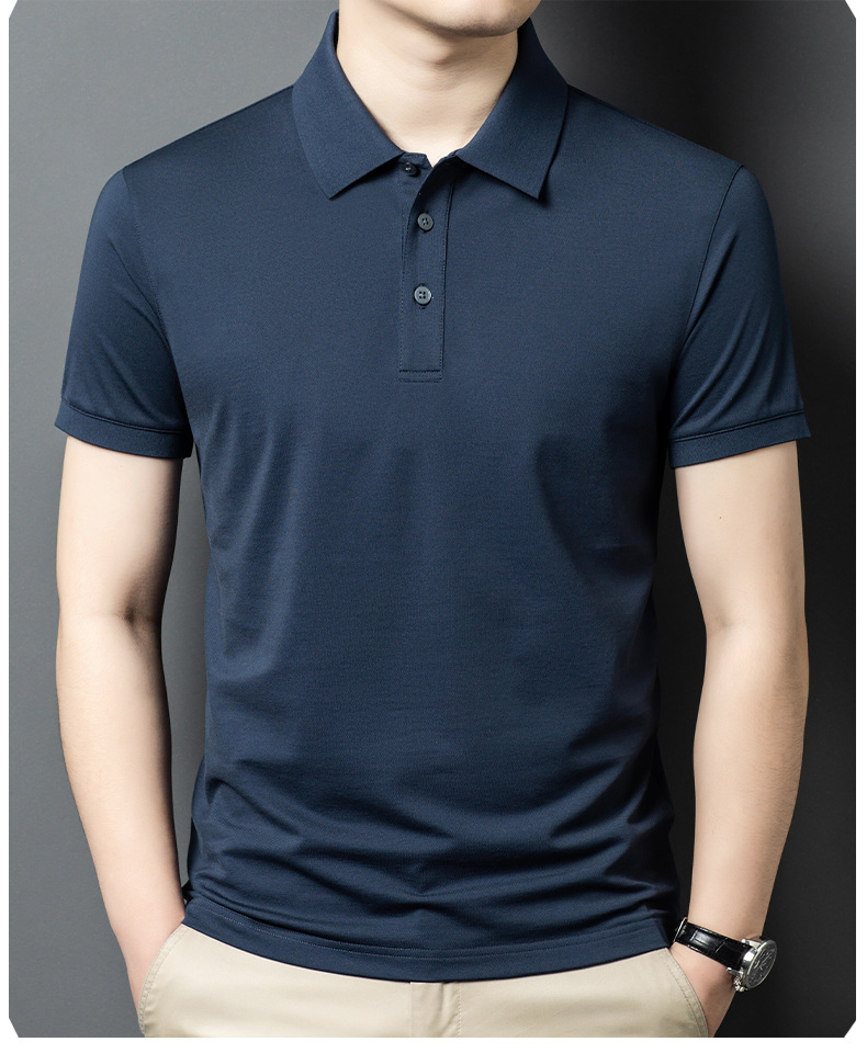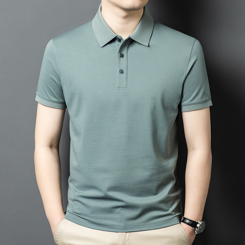 桑蚕丝短袖t恤男翻领纯色夏装上衣中年爸爸装商务休