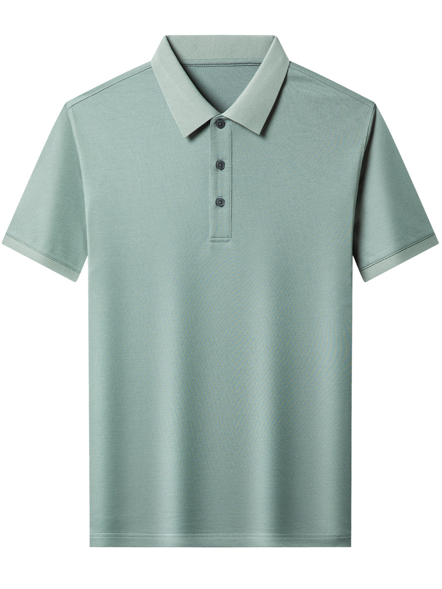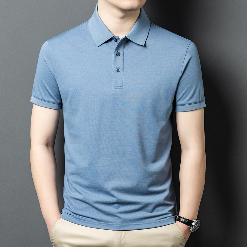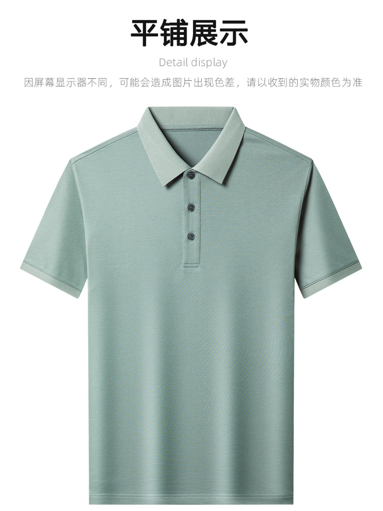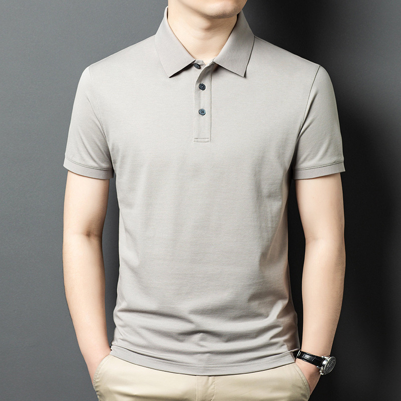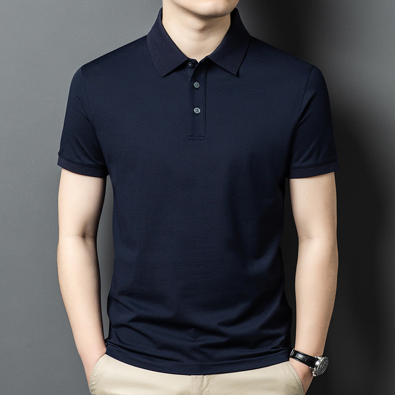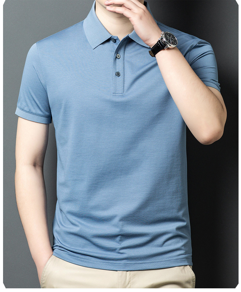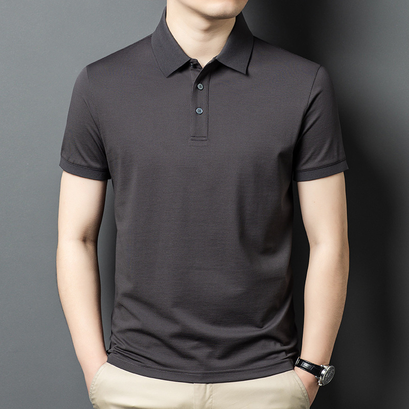桑蚕丝短袖t恤男翻领纯色夏装上衣中年爸爸装商务休