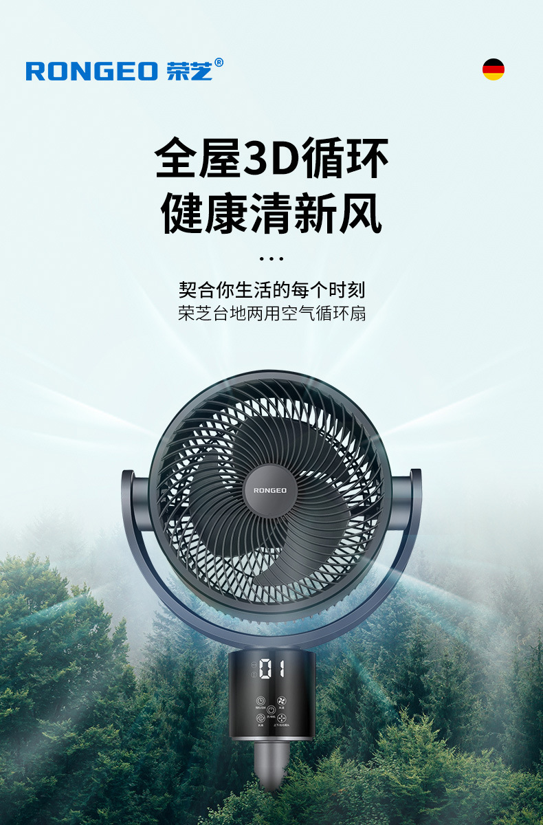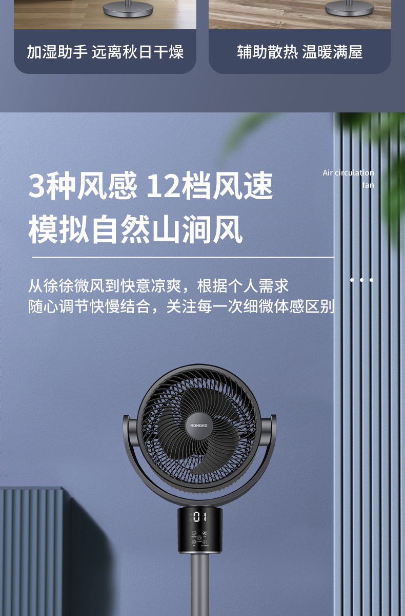 荣芝空气循环扇电风扇家用智能遥控落地扇直流立式塔扇台式涡轮扇