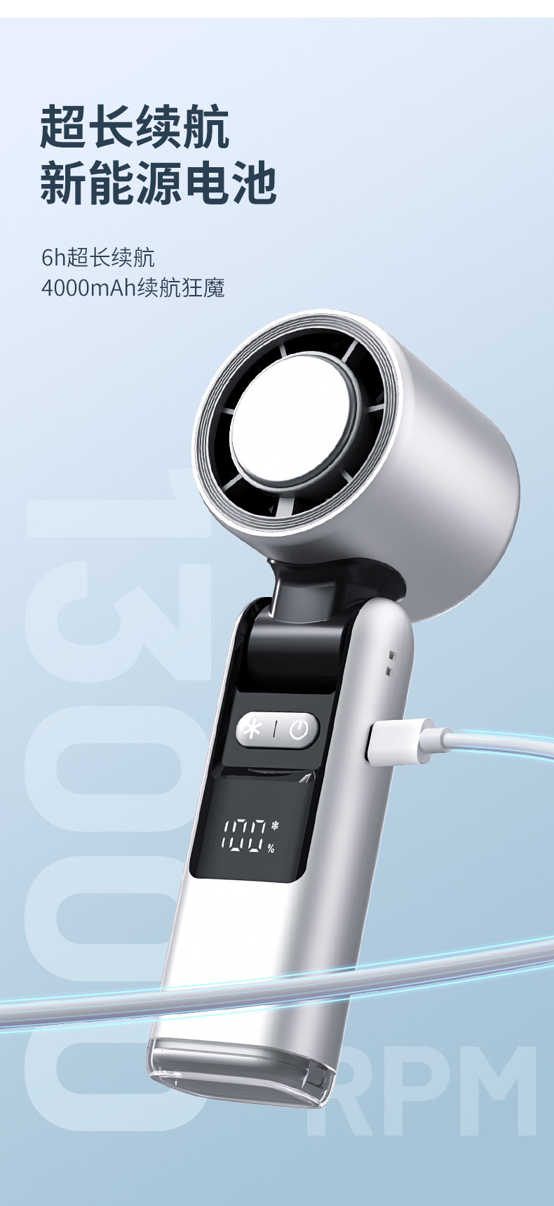 2025新款100档高速手持风扇 迷你usb充电折叠便携涡轮小风扇批发