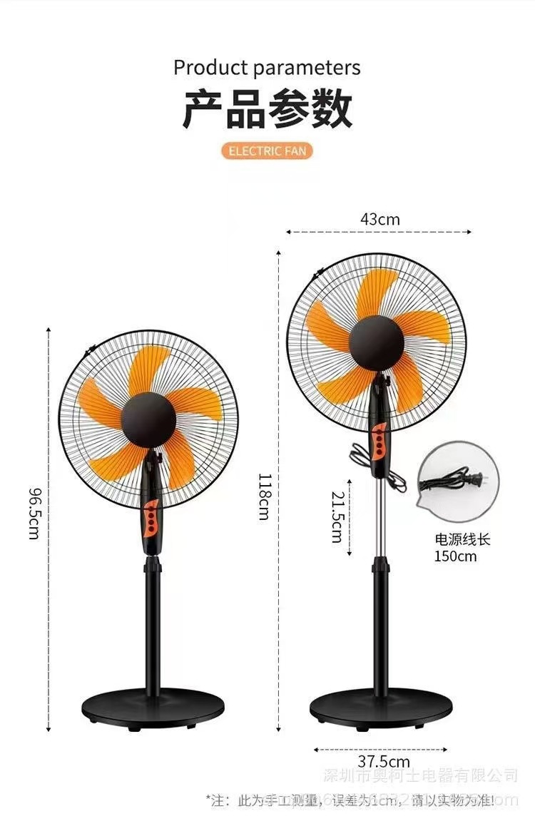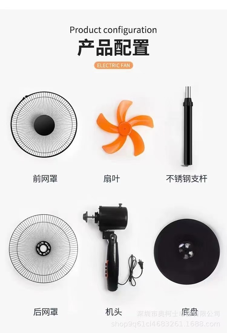 厂家直销16寸落地扇家用多功能电风扇立式可调节摇头低音落地风扇