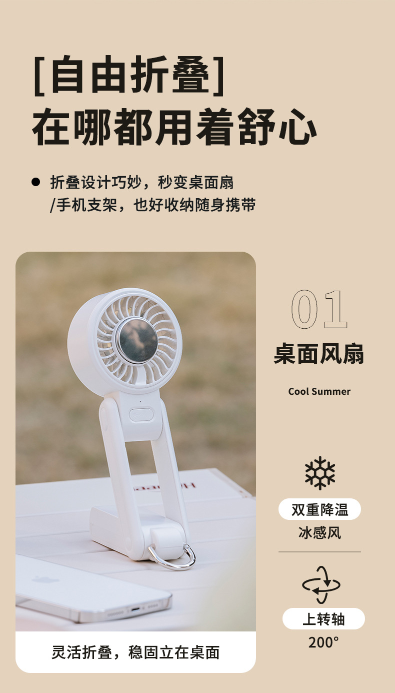 2025户外冰敷手持小风扇半导体制冷高速百变折叠USB小风扇