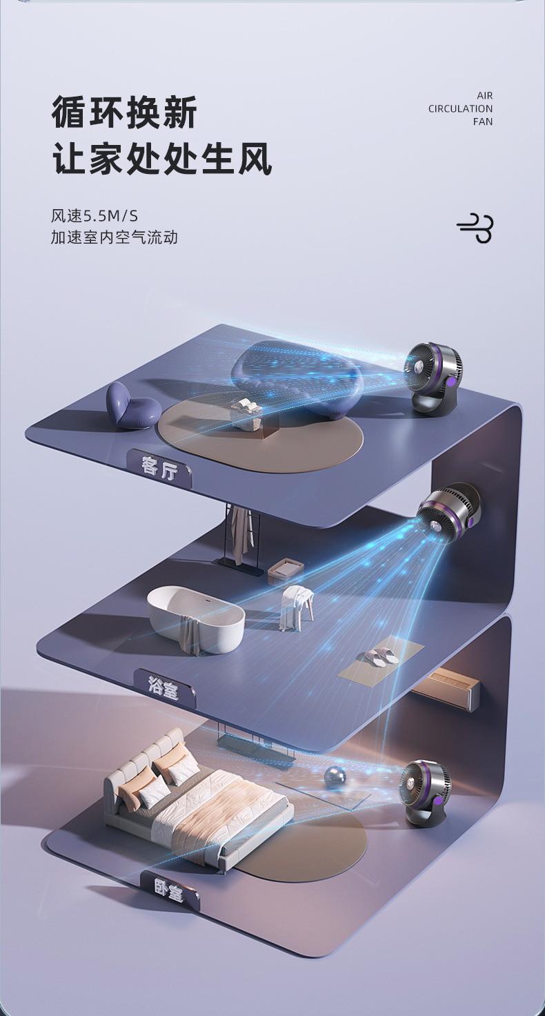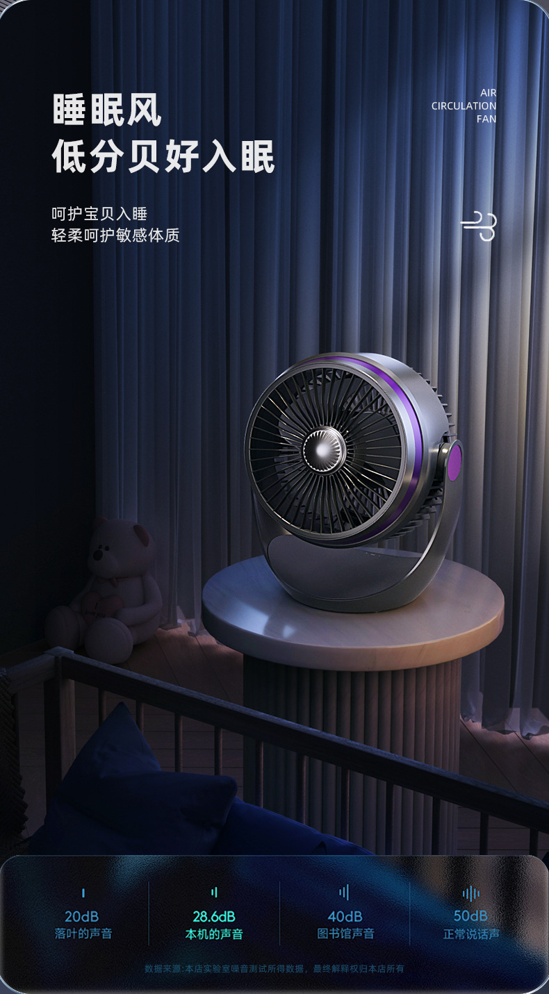 便捷式usb风扇宿舍静音迷你小风扇充电款家用空气循环扇桌面风扇