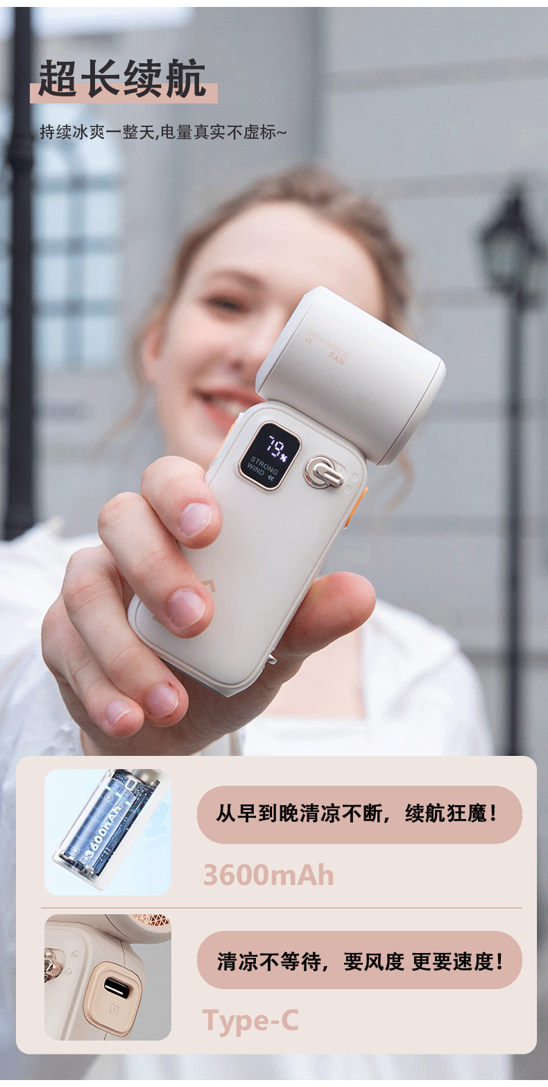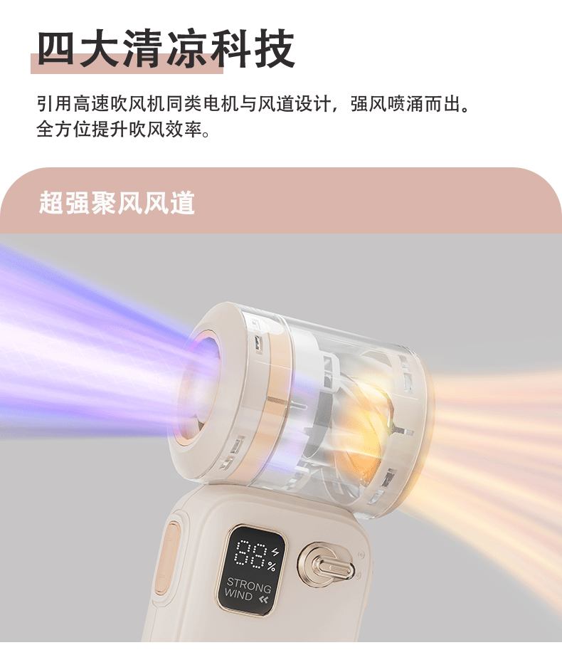 新款便携手持小风扇 智能数显100档高速风扇随身迷你暴力涡轮风扇