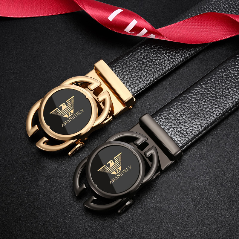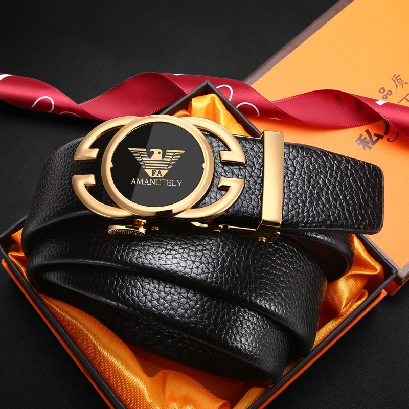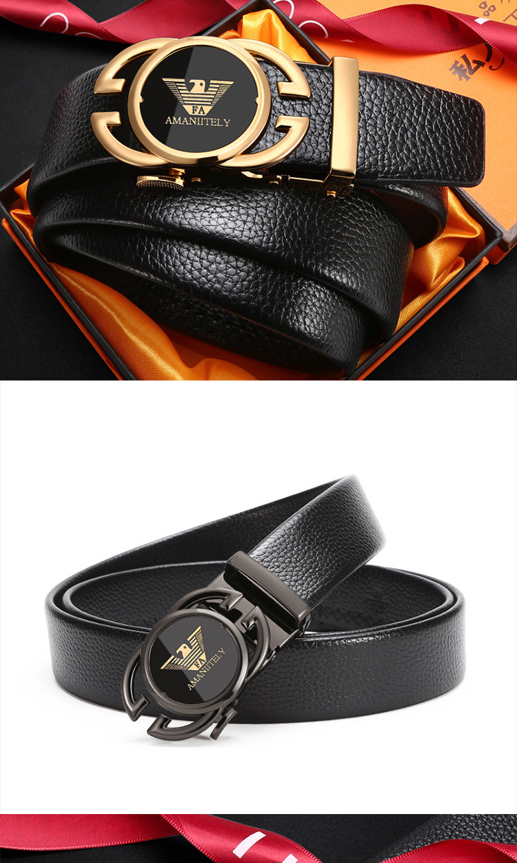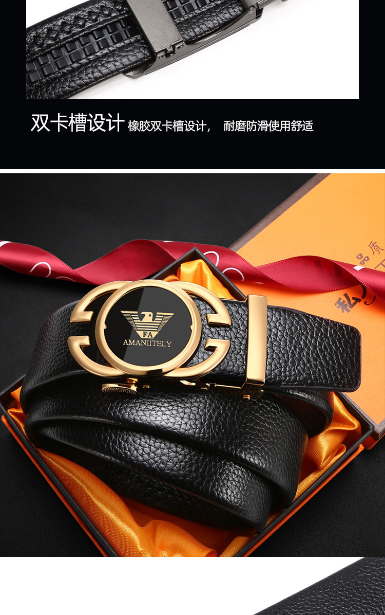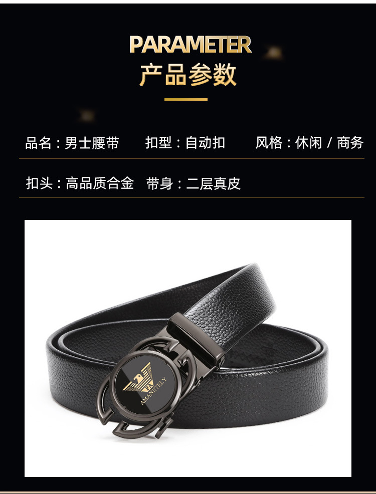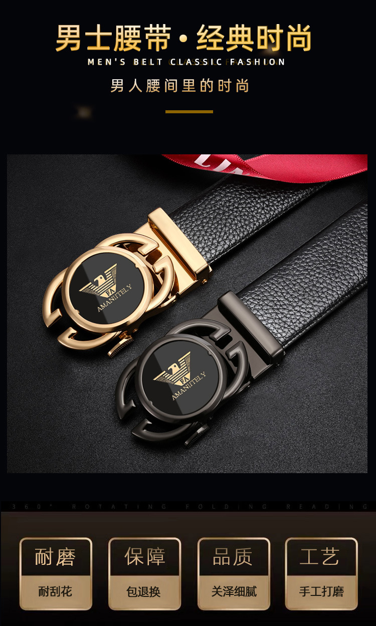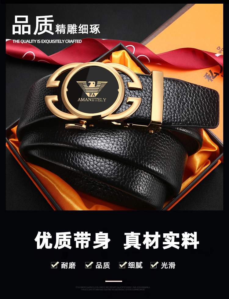 新款皮带男士合金自动扣腰带青年商务百搭二层牛皮裤腰带现货批发