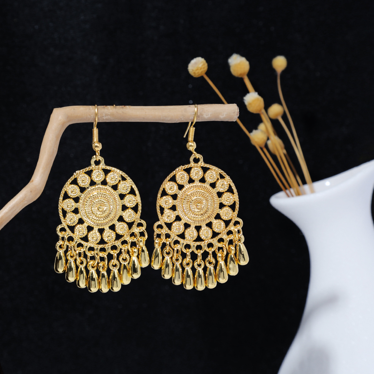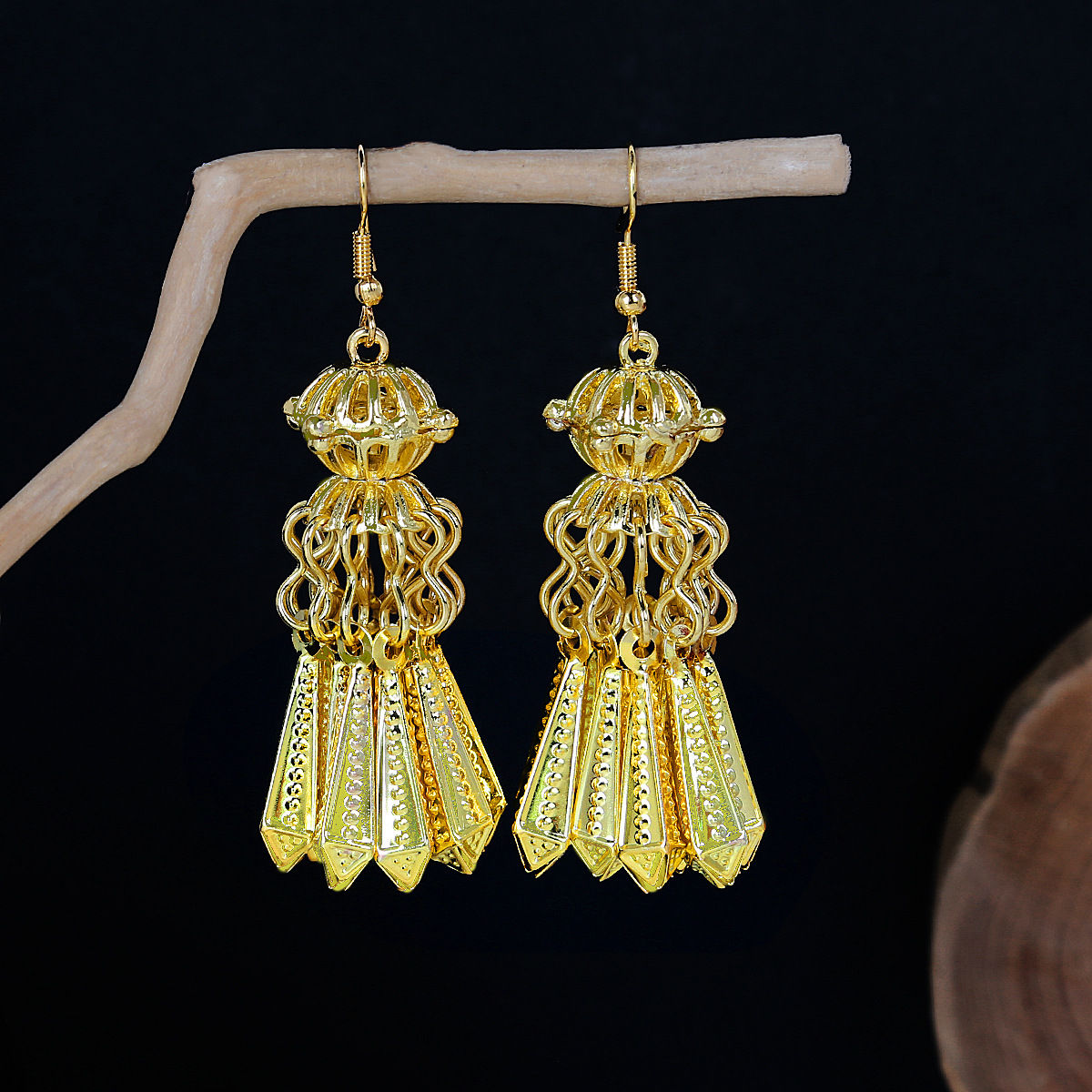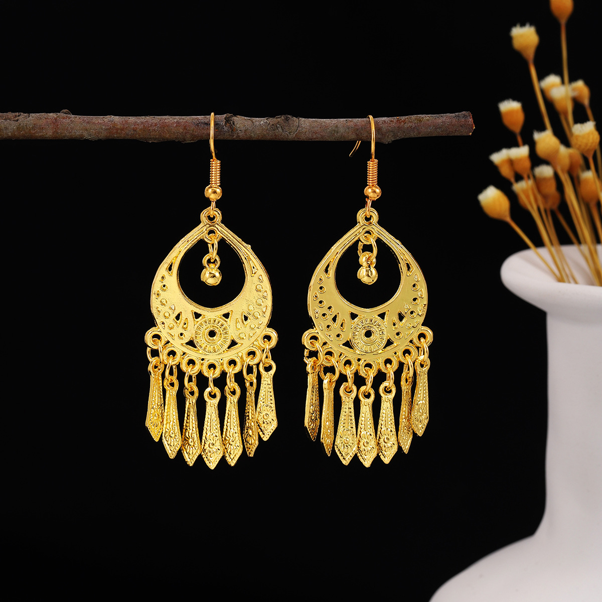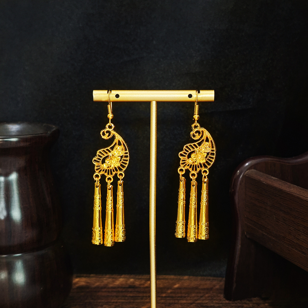 民族风孔雀耳环 金色铃铛流苏耳坠波西米亚树叶吊坠景区耳饰批发