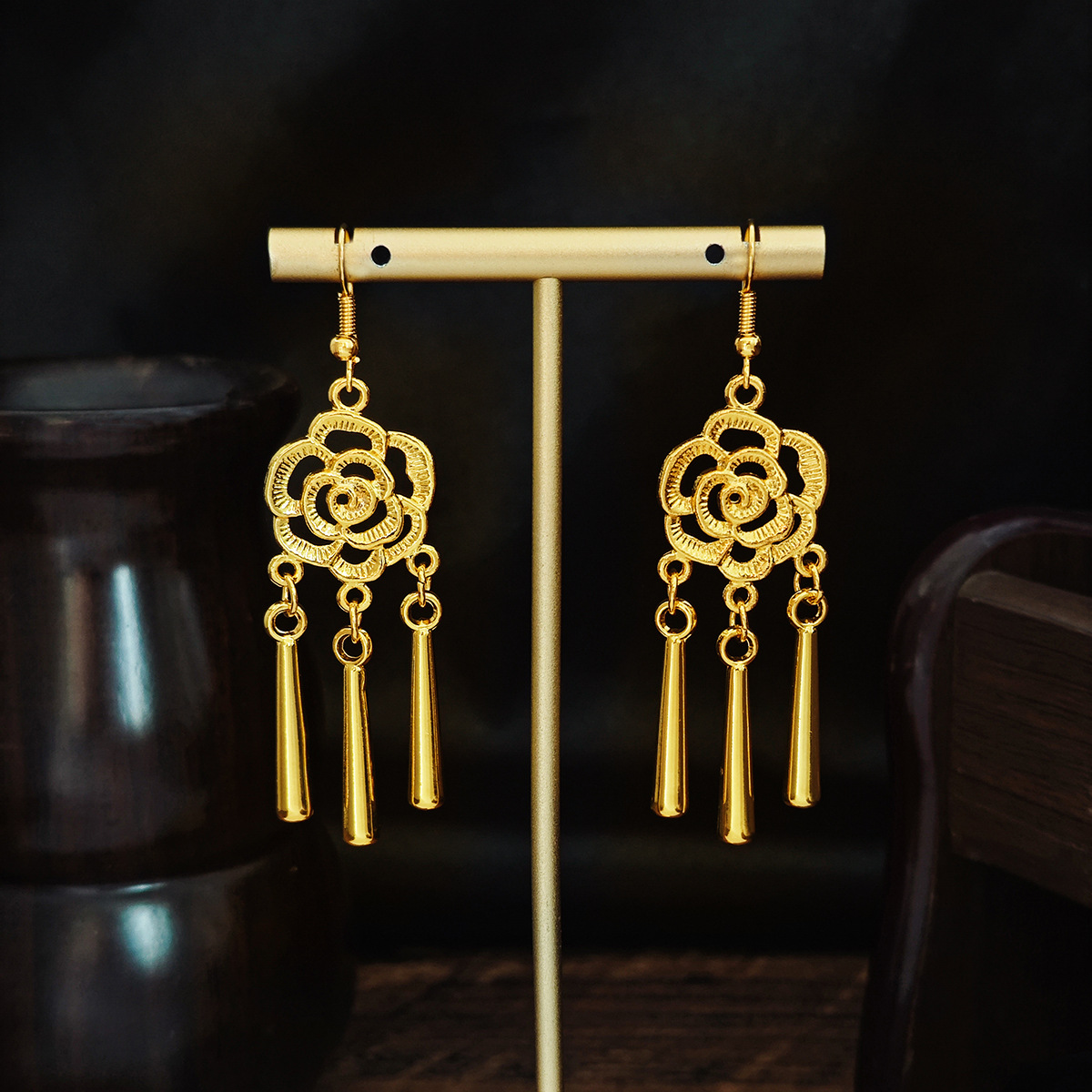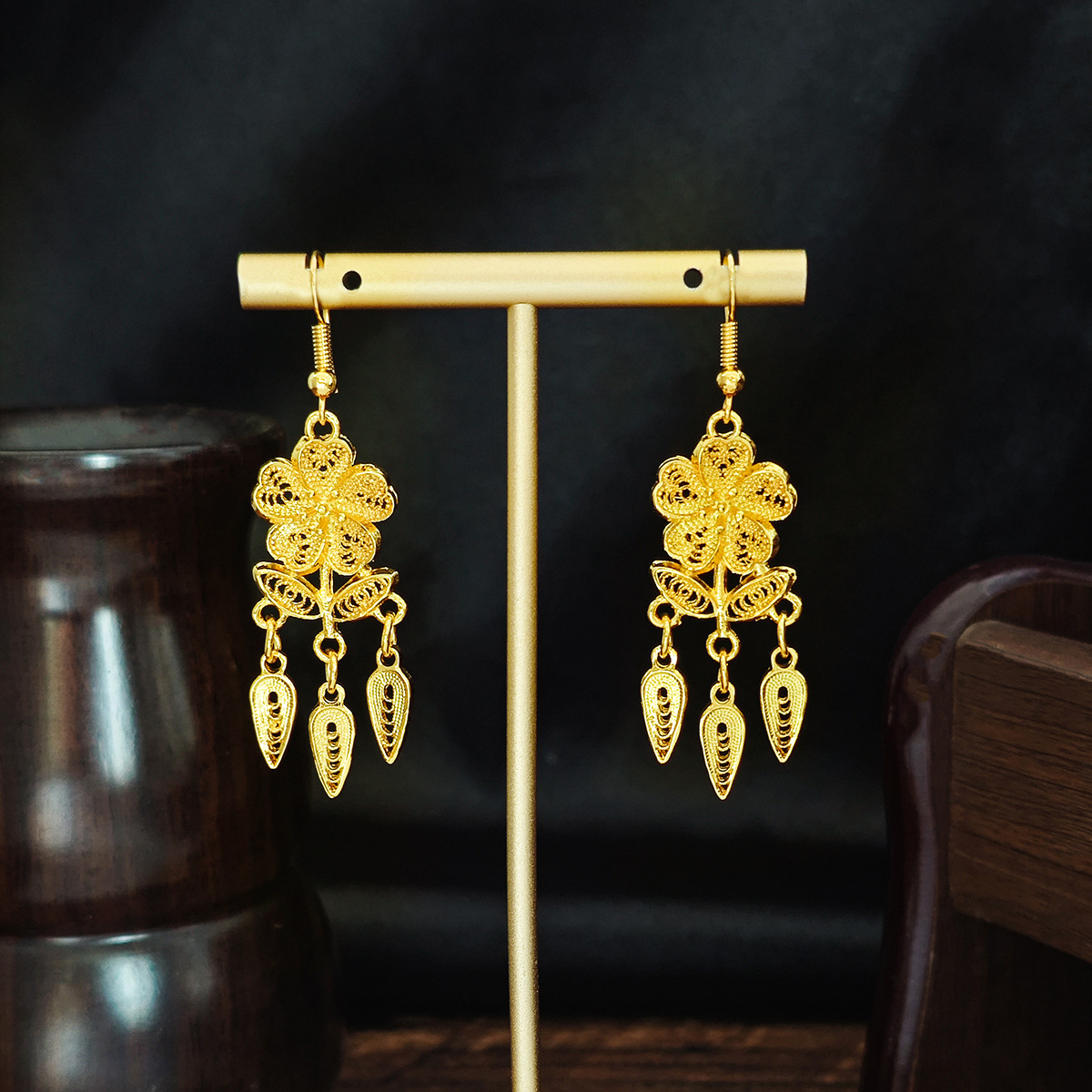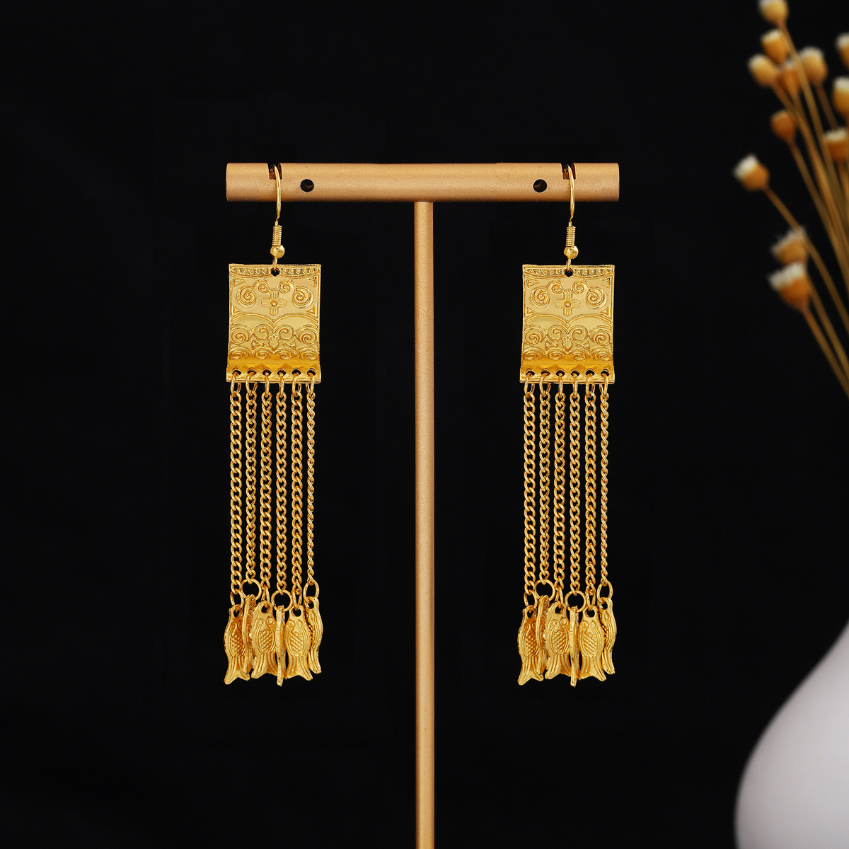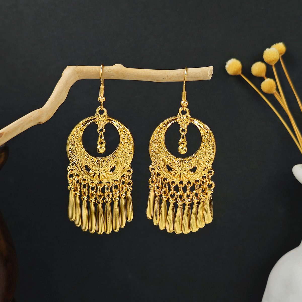 民族风孔雀耳环 金色铃铛流苏耳坠波西米亚树叶吊坠景区耳饰批发