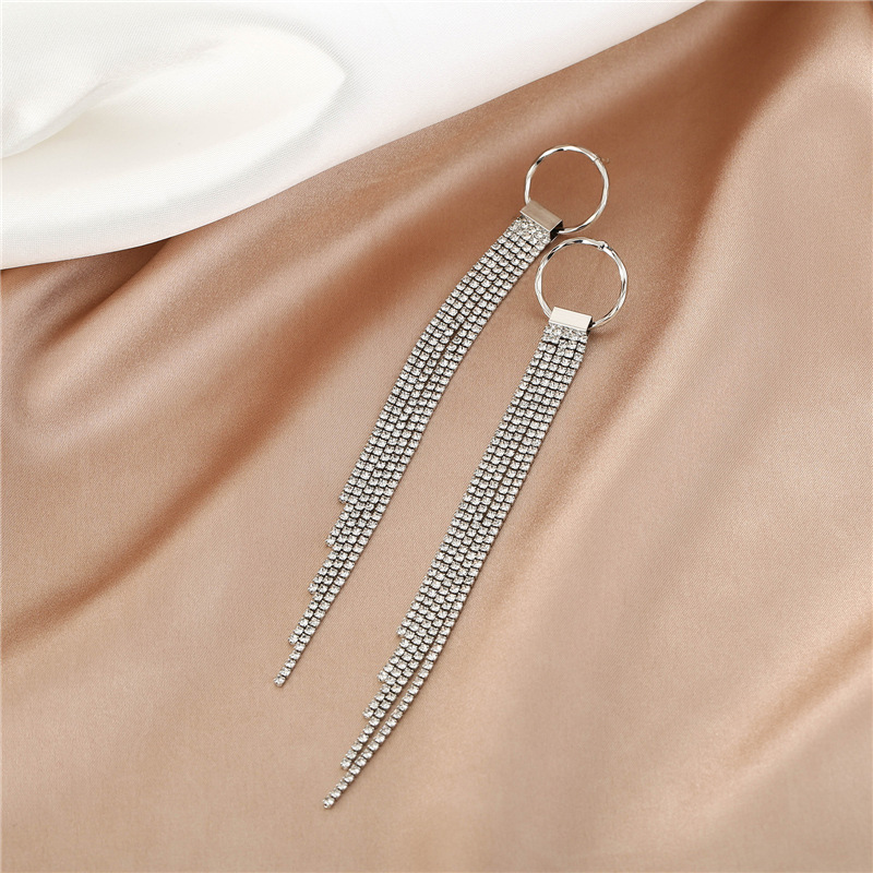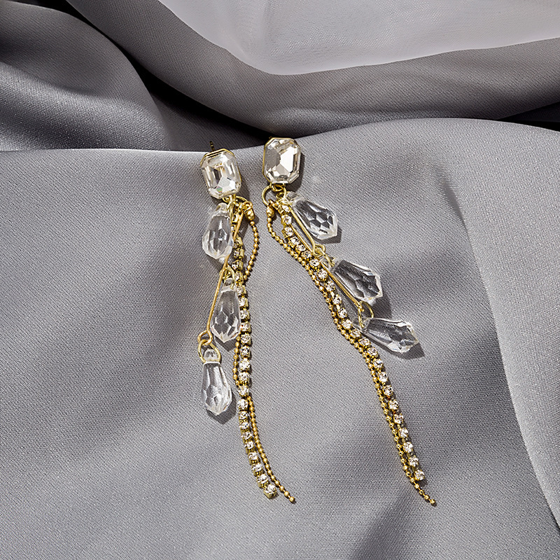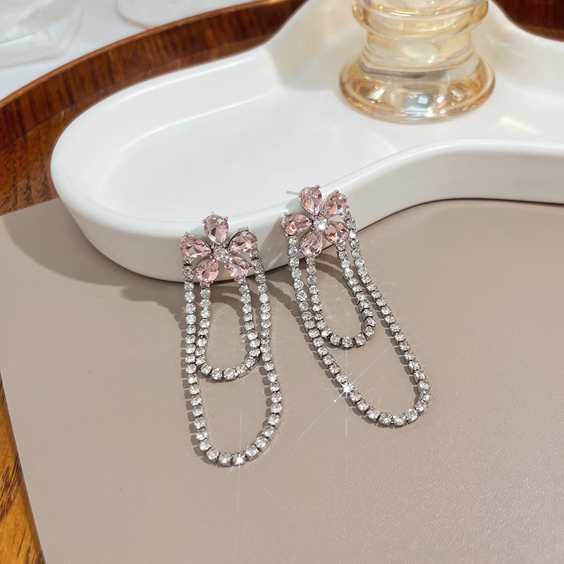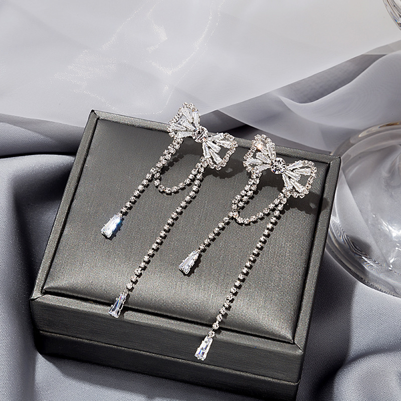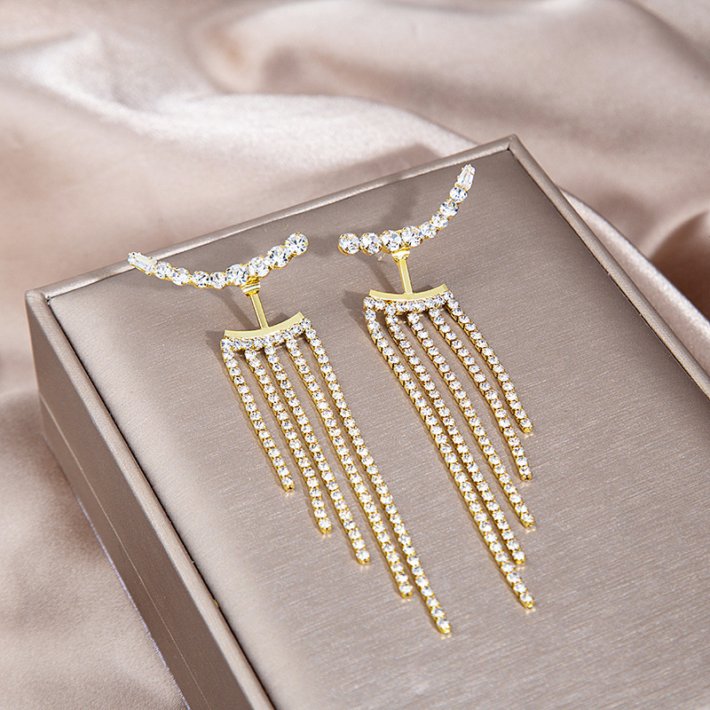 银针超闪镶钻流苏耳环 网红轻奢满钻字母猫眼狐狸长耳坠两戴耳环