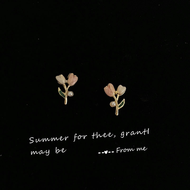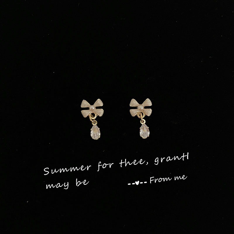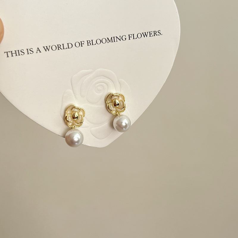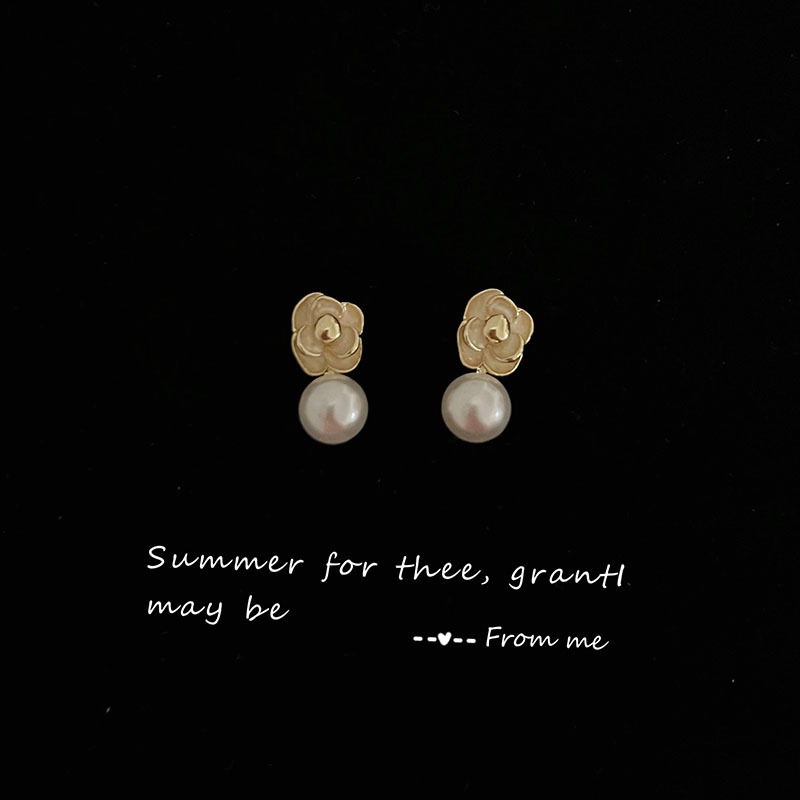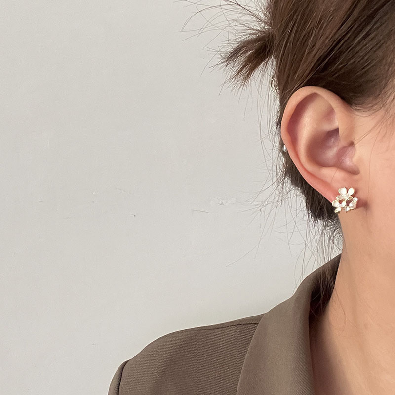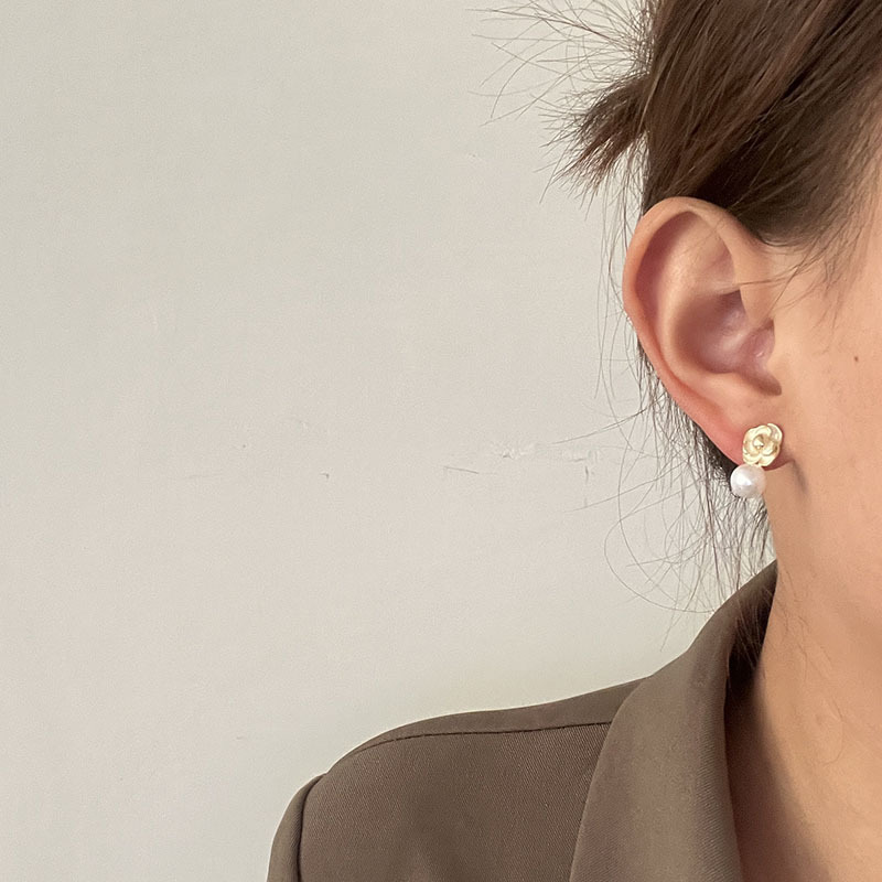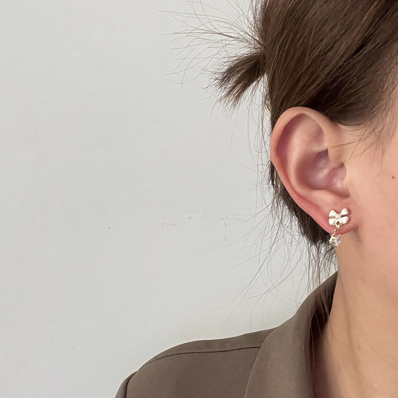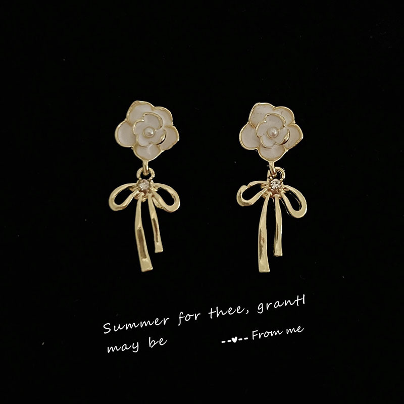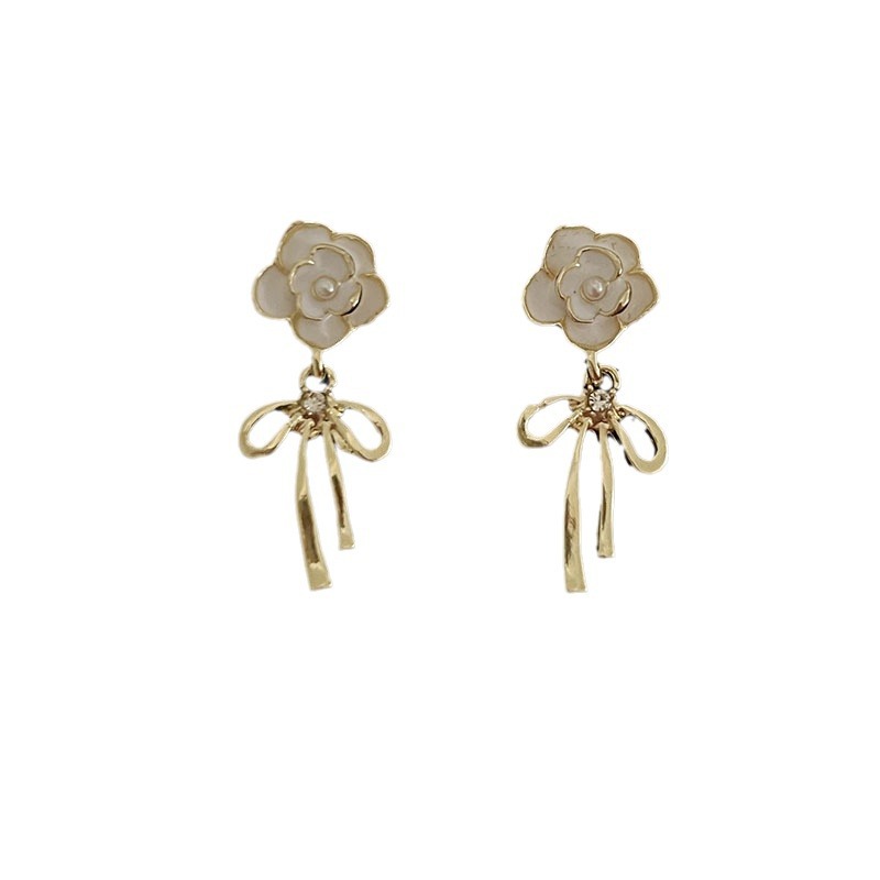 山茶花蝴蝶结耳环女小众设计感轻奢气质高级名媛耳钉法式复古耳饰