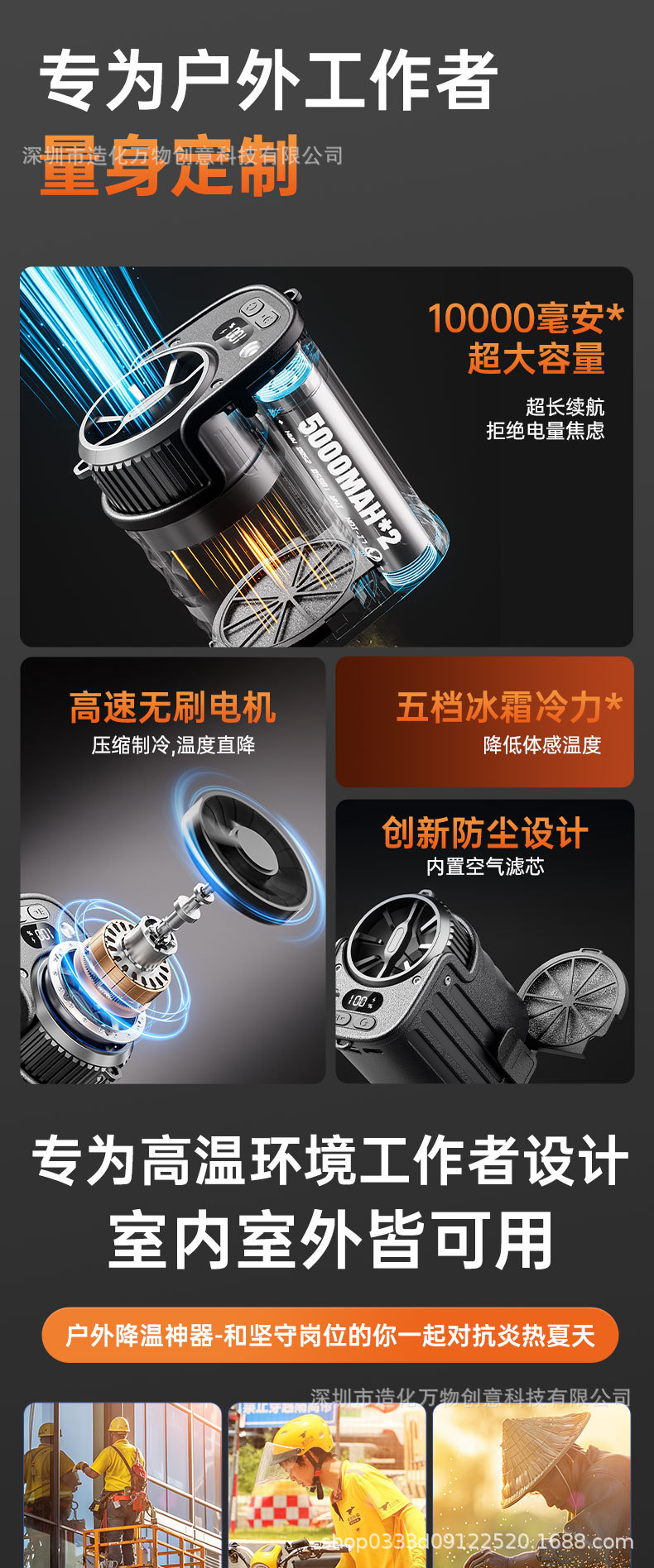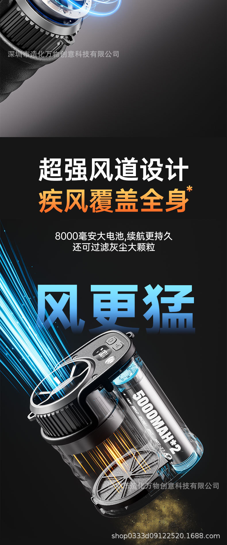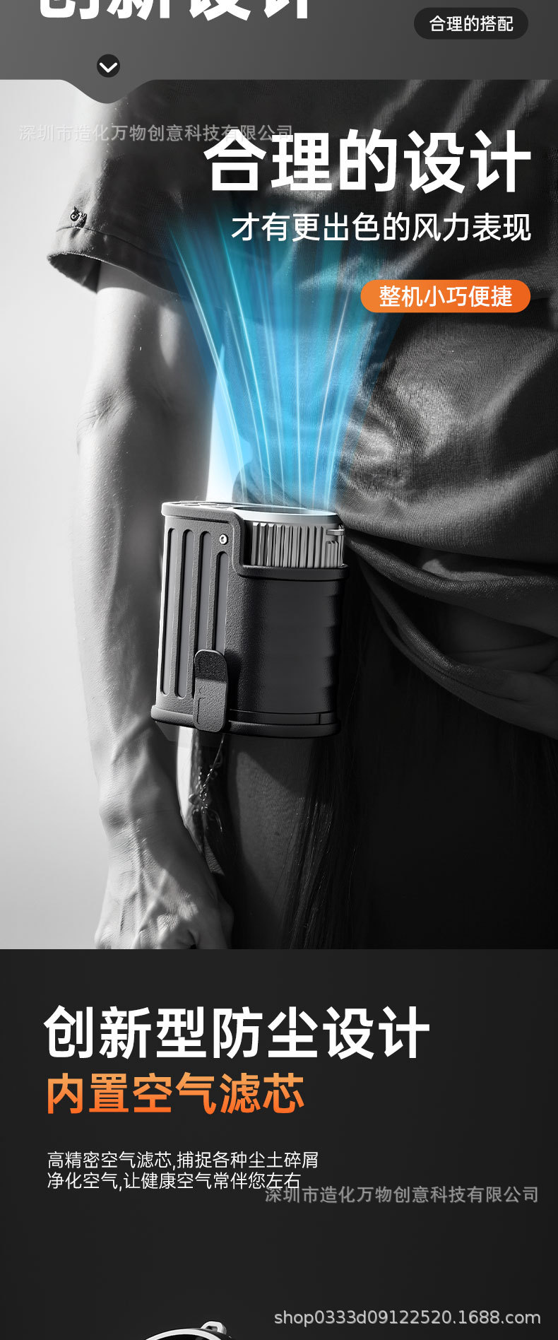 (2025新品)户外挂腰风扇工地便携式大风力跨境亚马逊暴力飓风风扇