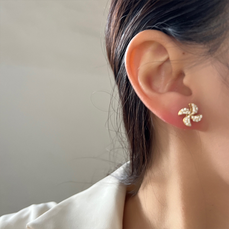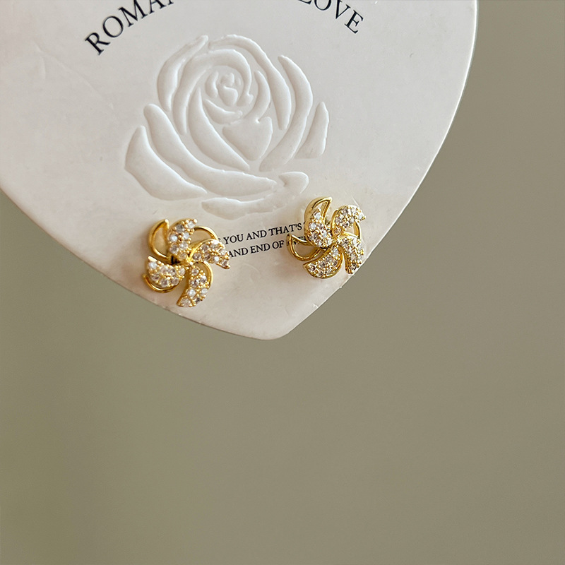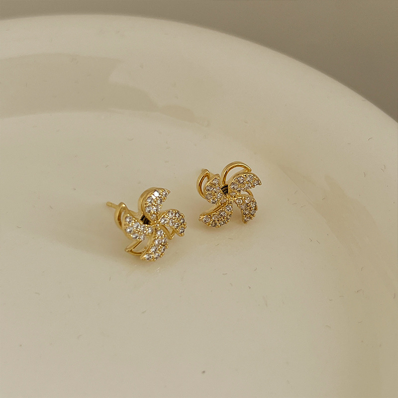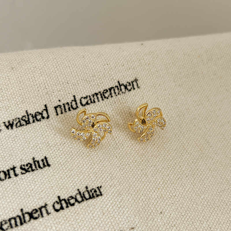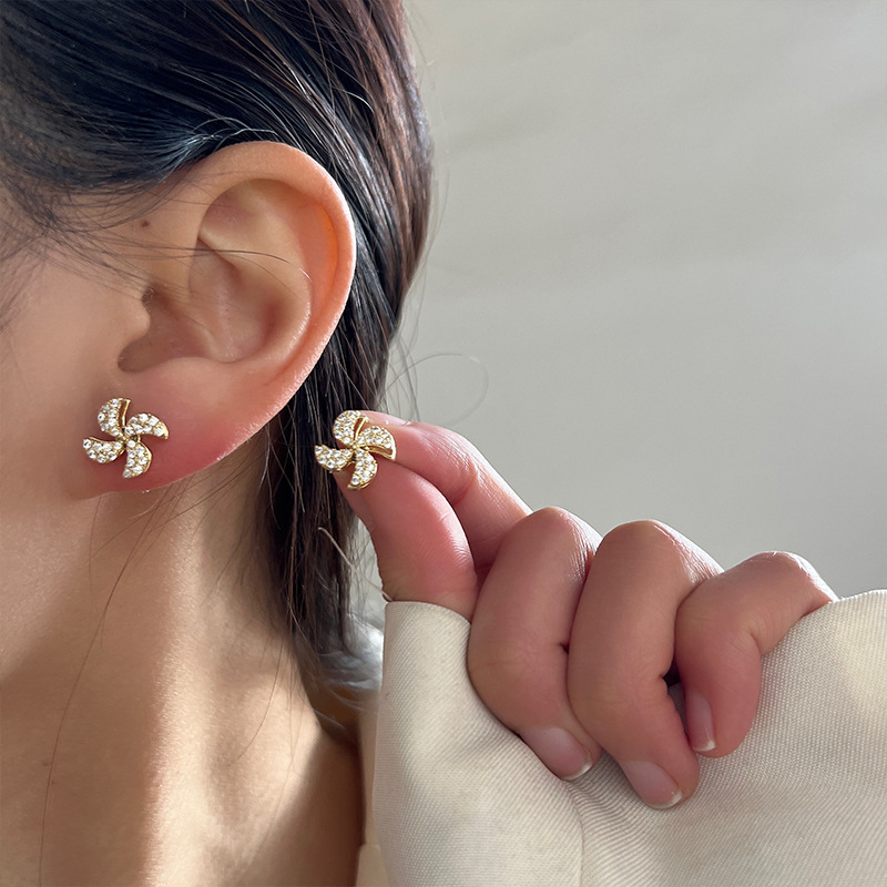 精美风车耳钉可转动纯银会可旋转小风车耳环女2024年新款秋季耳饰