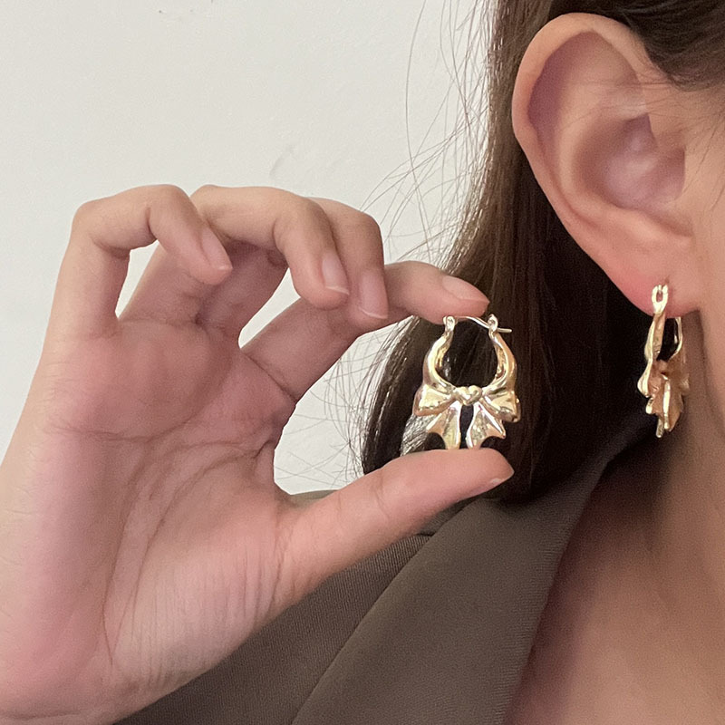 韩系大蝴蝶结耳圈女轻奢小众高级感气质耳环2024新款爆款独特耳饰