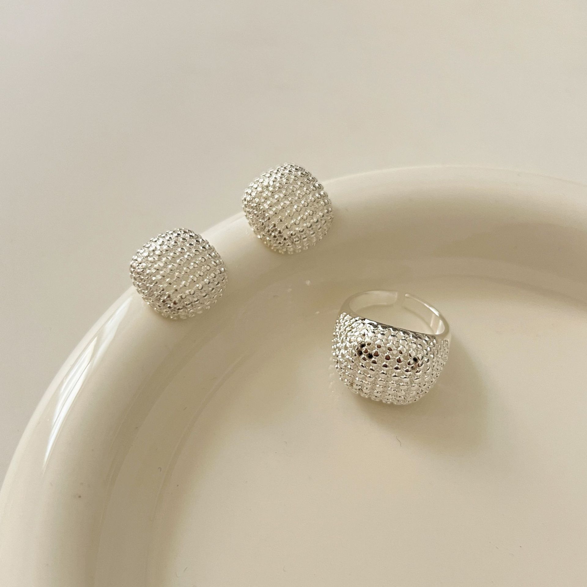 豆豆张悦儿同款金属镂空圆球耳环女2024年新款爆款高级感耳钉戒指