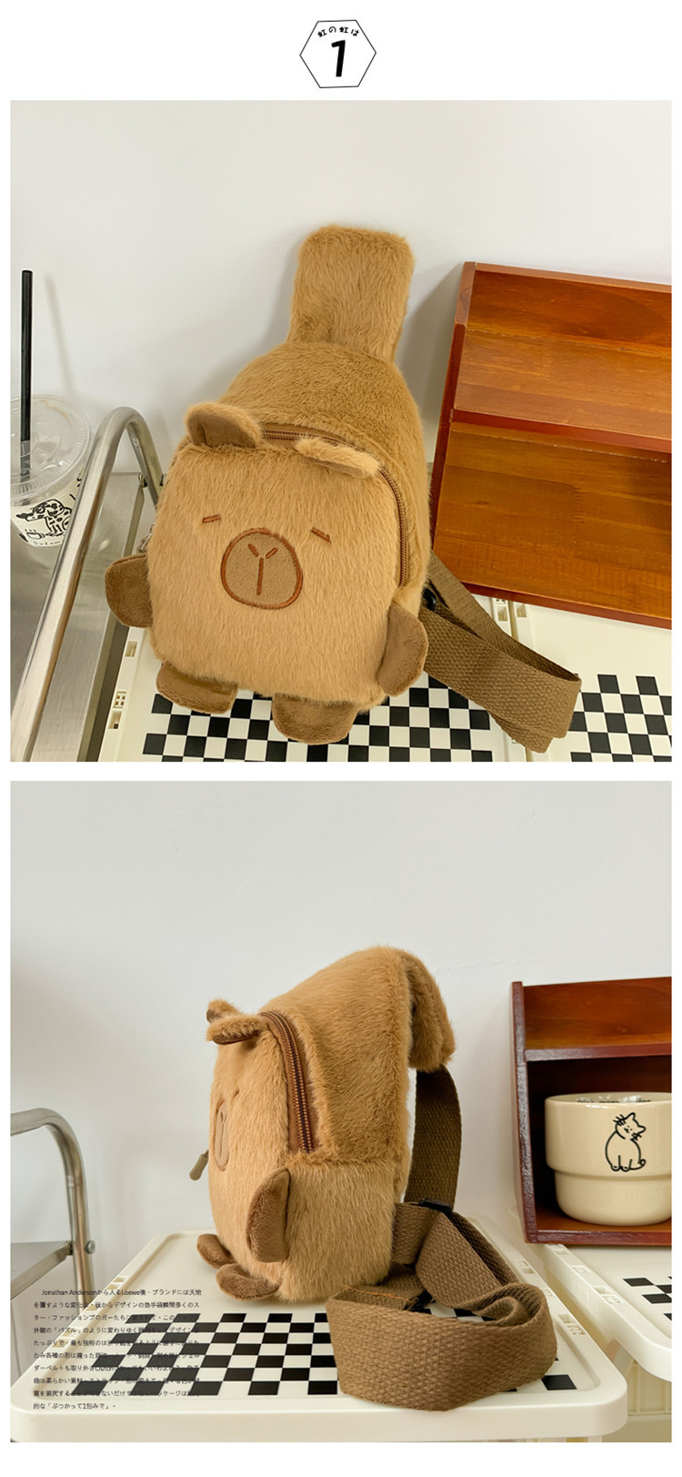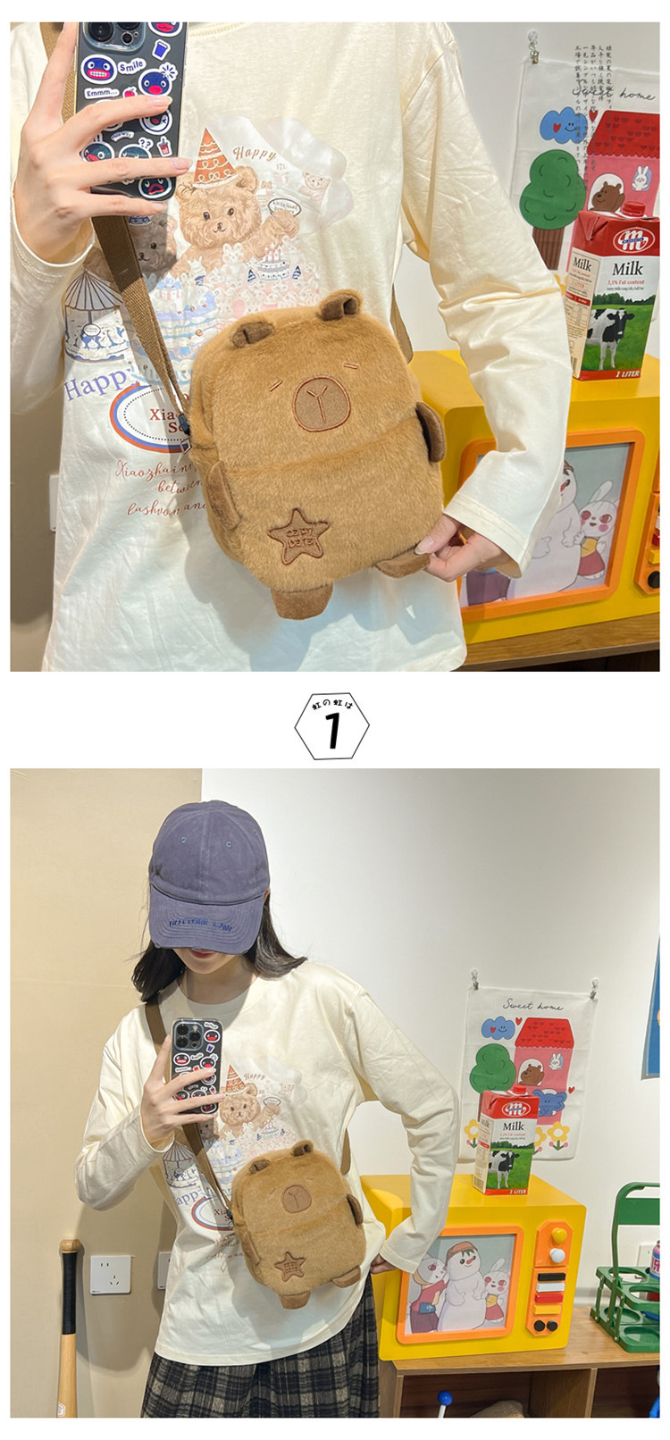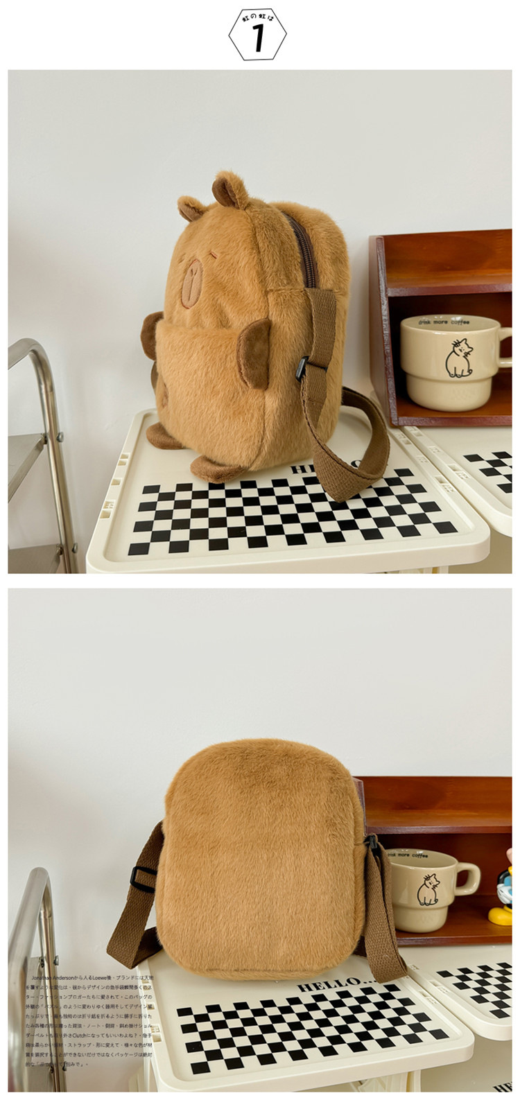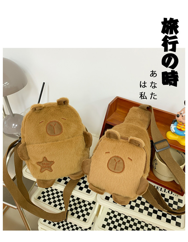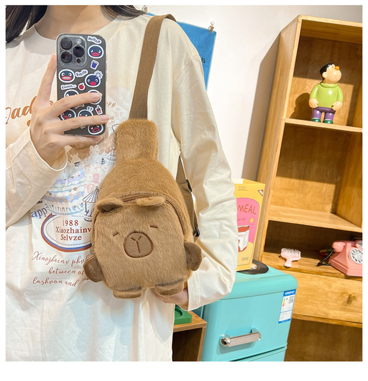 新款卡皮巴拉毛绒手机小包包女秋冬季卡通水豚斜挎包耐用通勤胸包