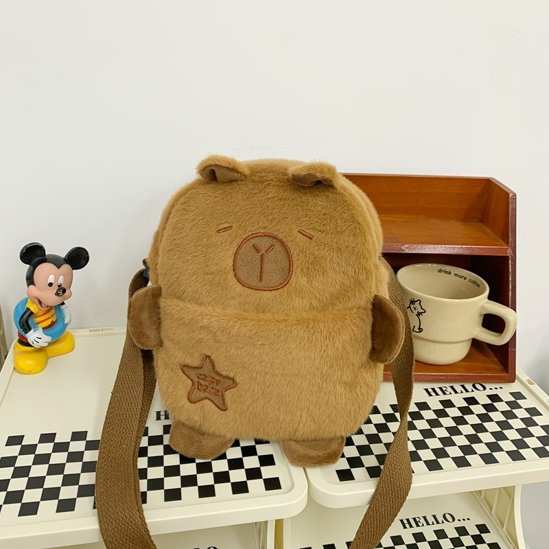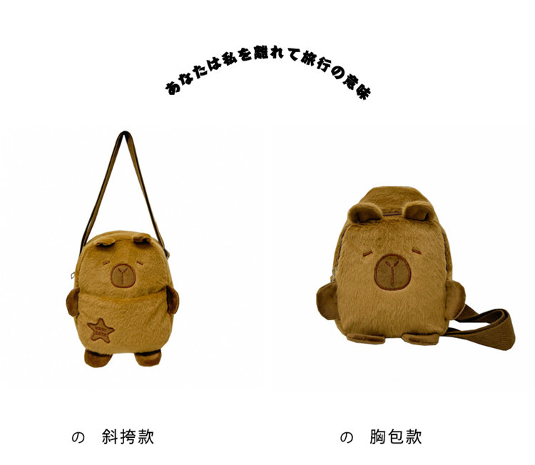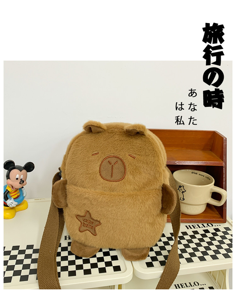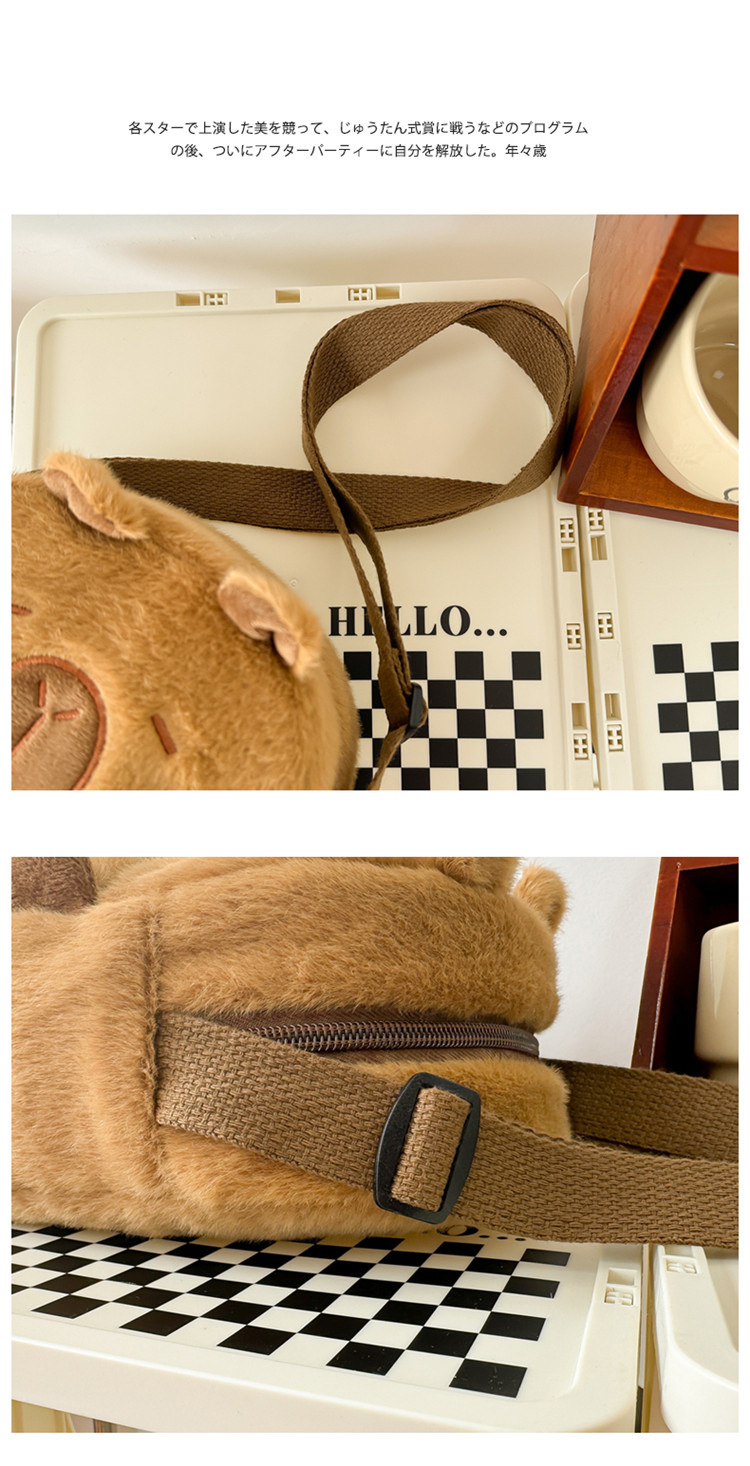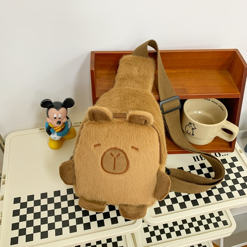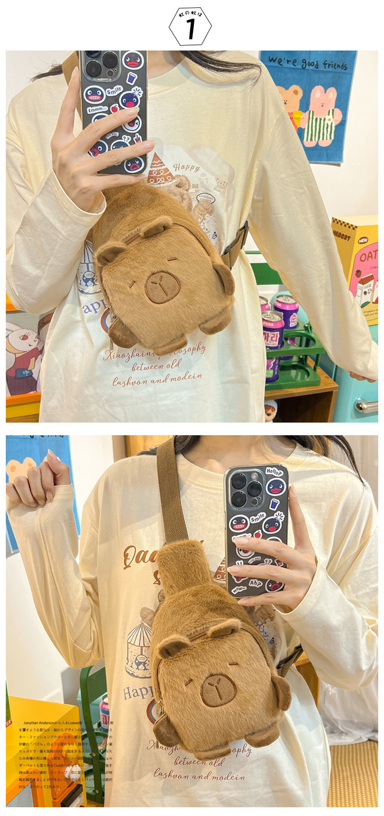 新款卡皮巴拉毛绒手机小包包女秋冬季卡通水豚斜挎包耐用通勤胸包