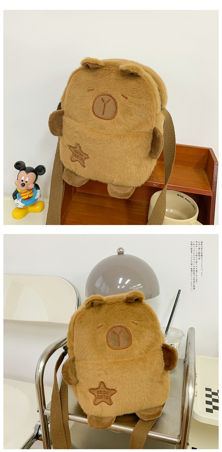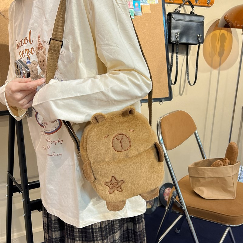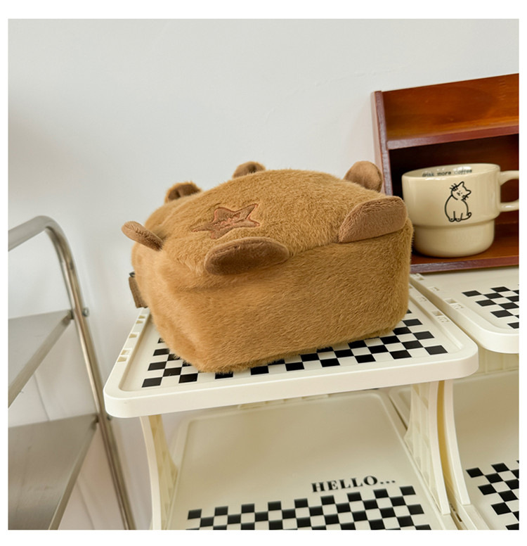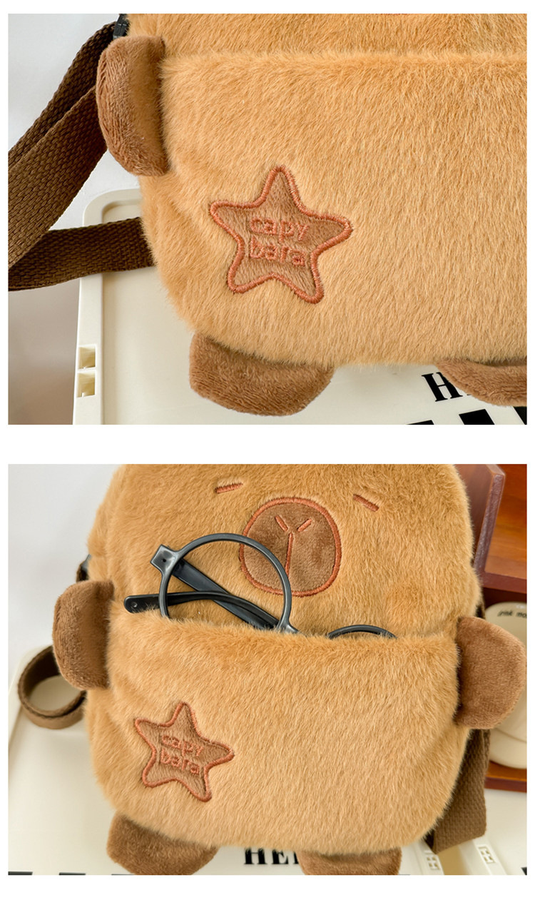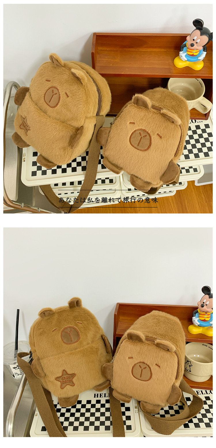 新款卡皮巴拉毛绒手机小包包女秋冬季卡通水豚斜挎包耐用通勤胸包