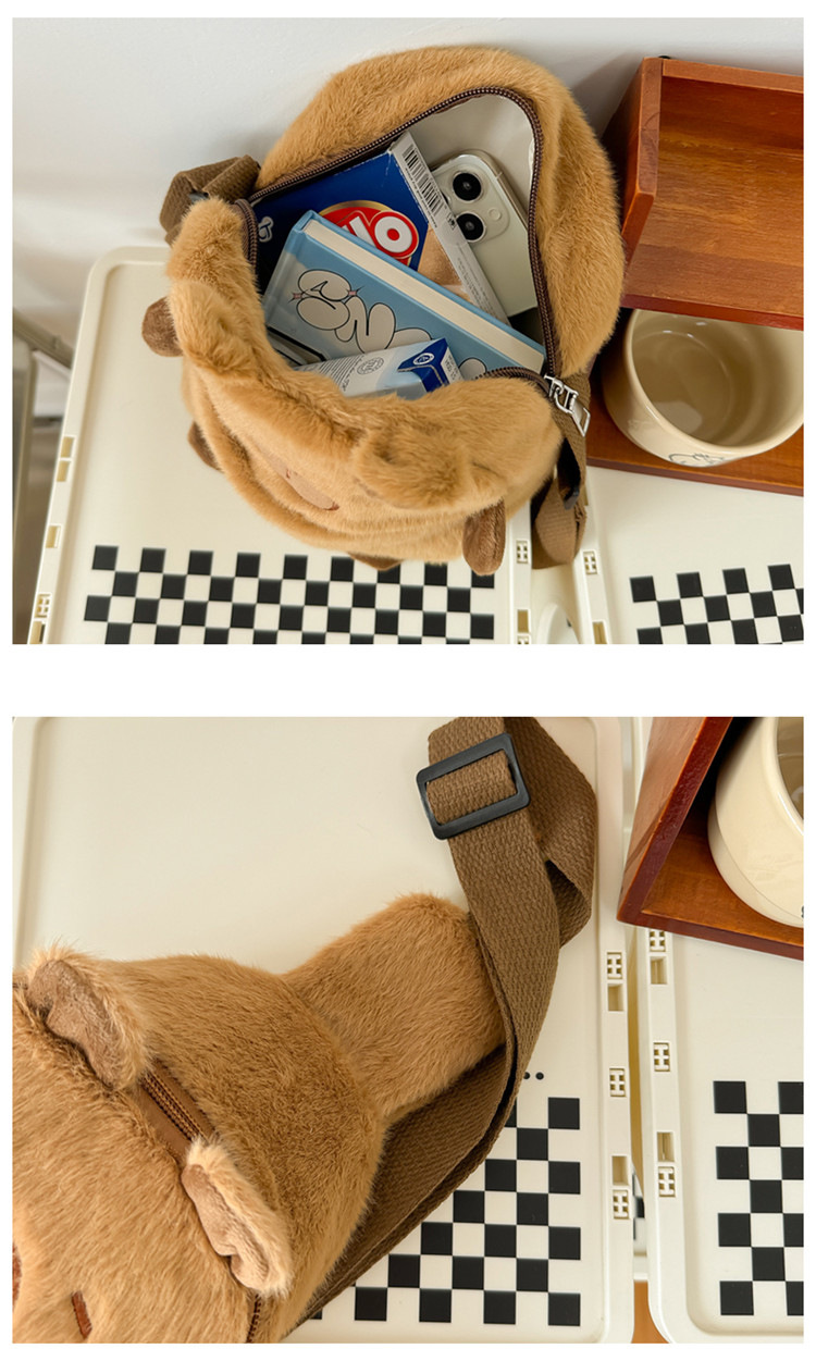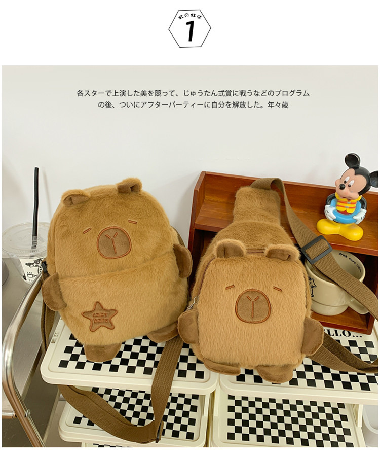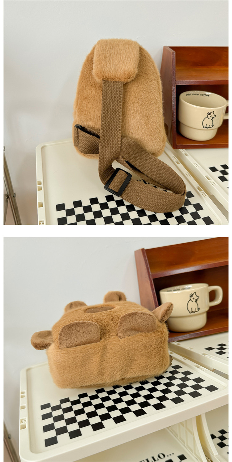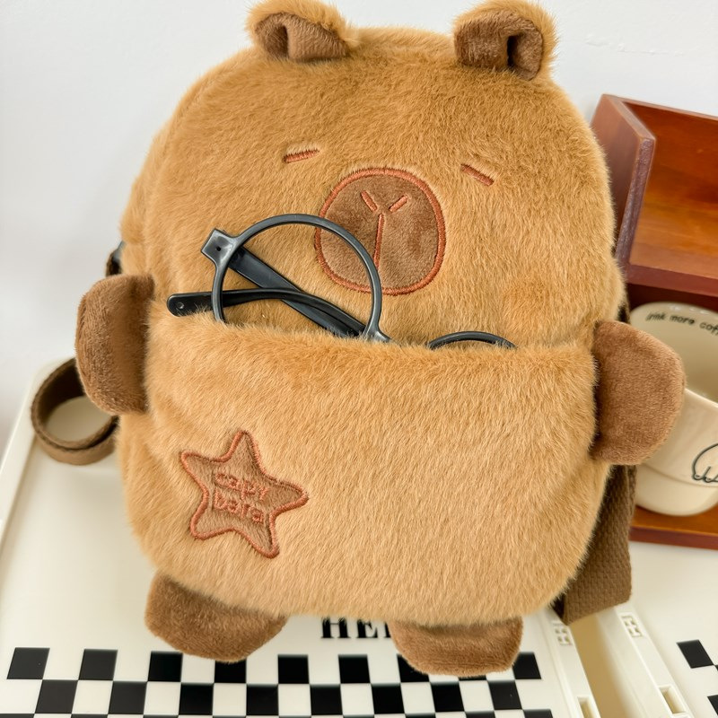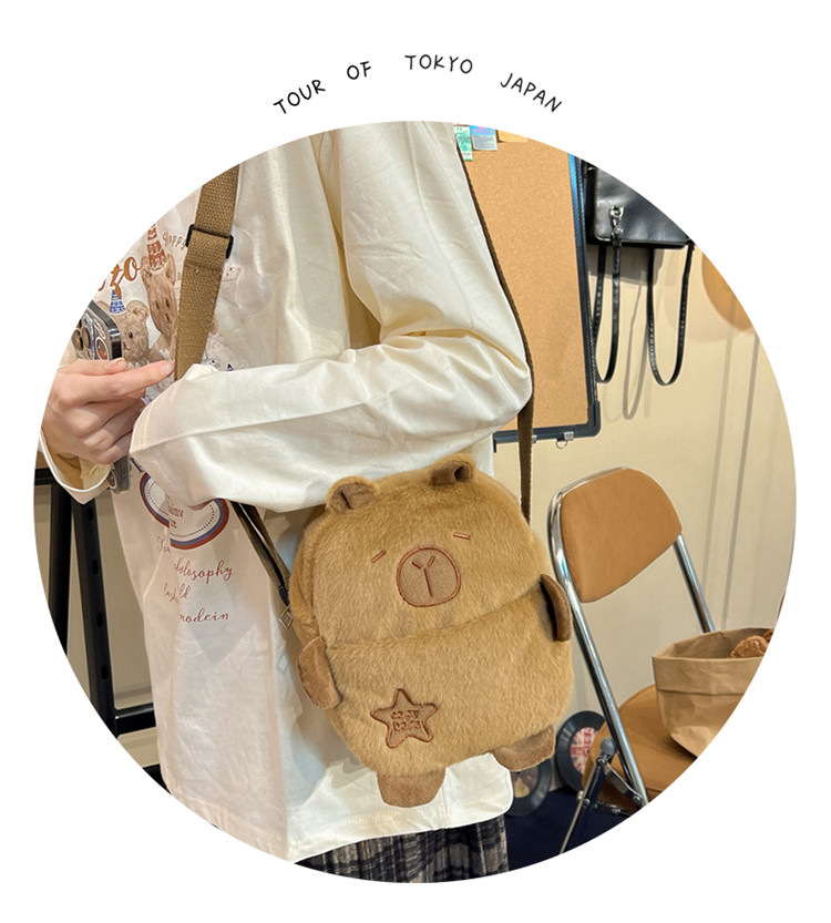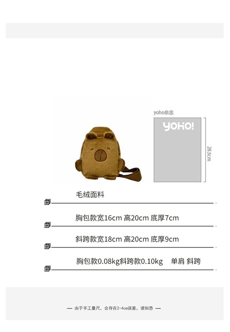 新款卡皮巴拉毛绒手机小包包女秋冬季卡通水豚斜挎包耐用通勤胸包