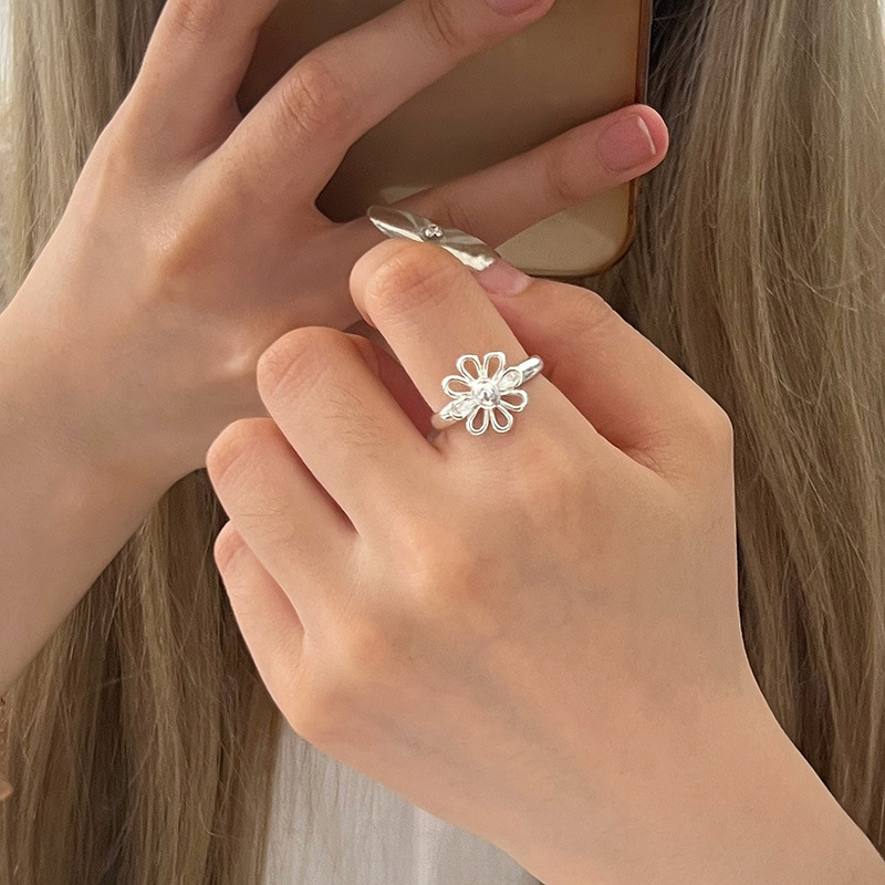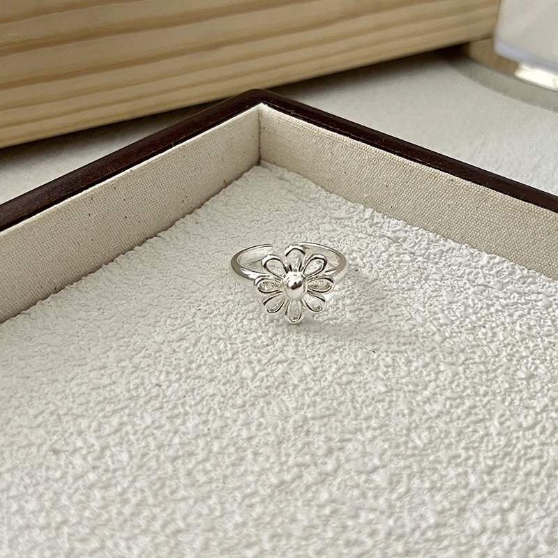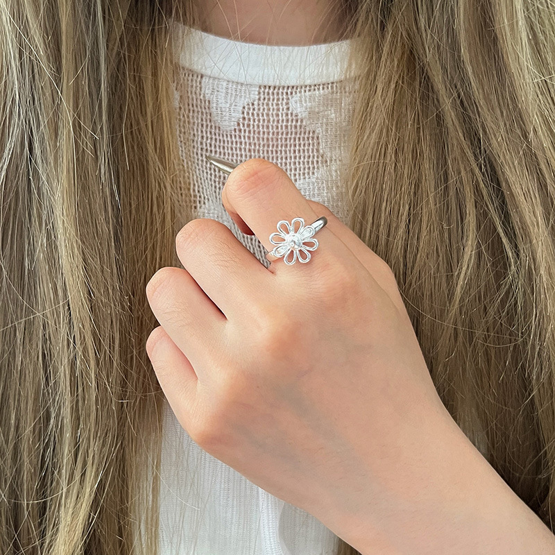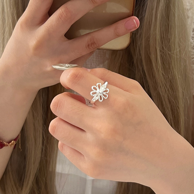 甜美镂空小雏菊戒指女时尚气质个性开口指环ins风小众优雅食指戒