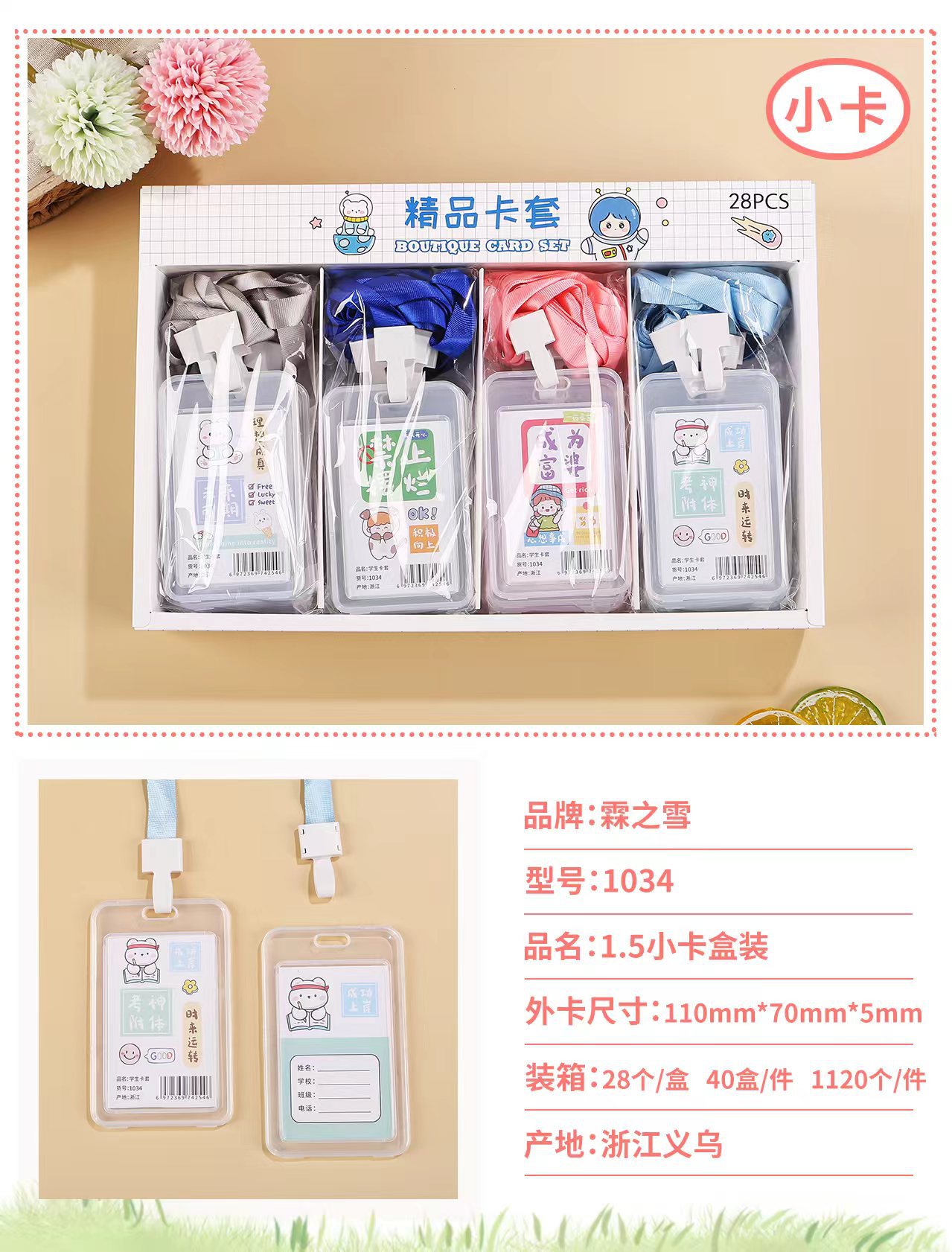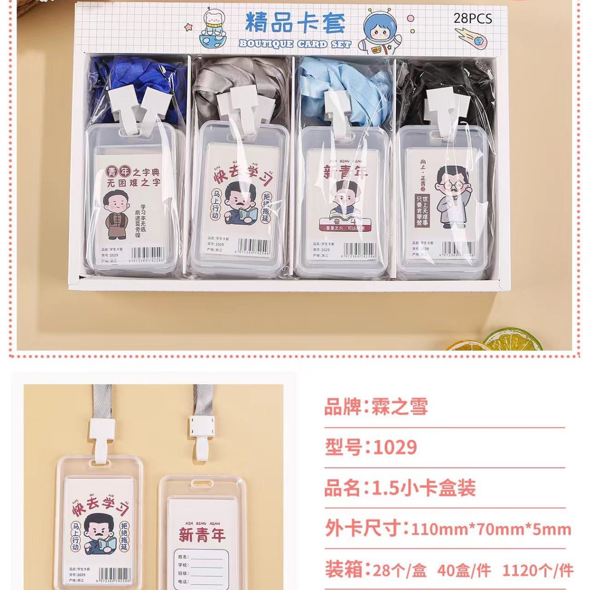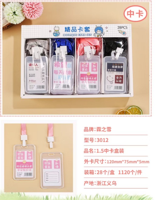 批发创意学生卡通透明证件卡套学生带挂绳防水员工工作牌公交卡套