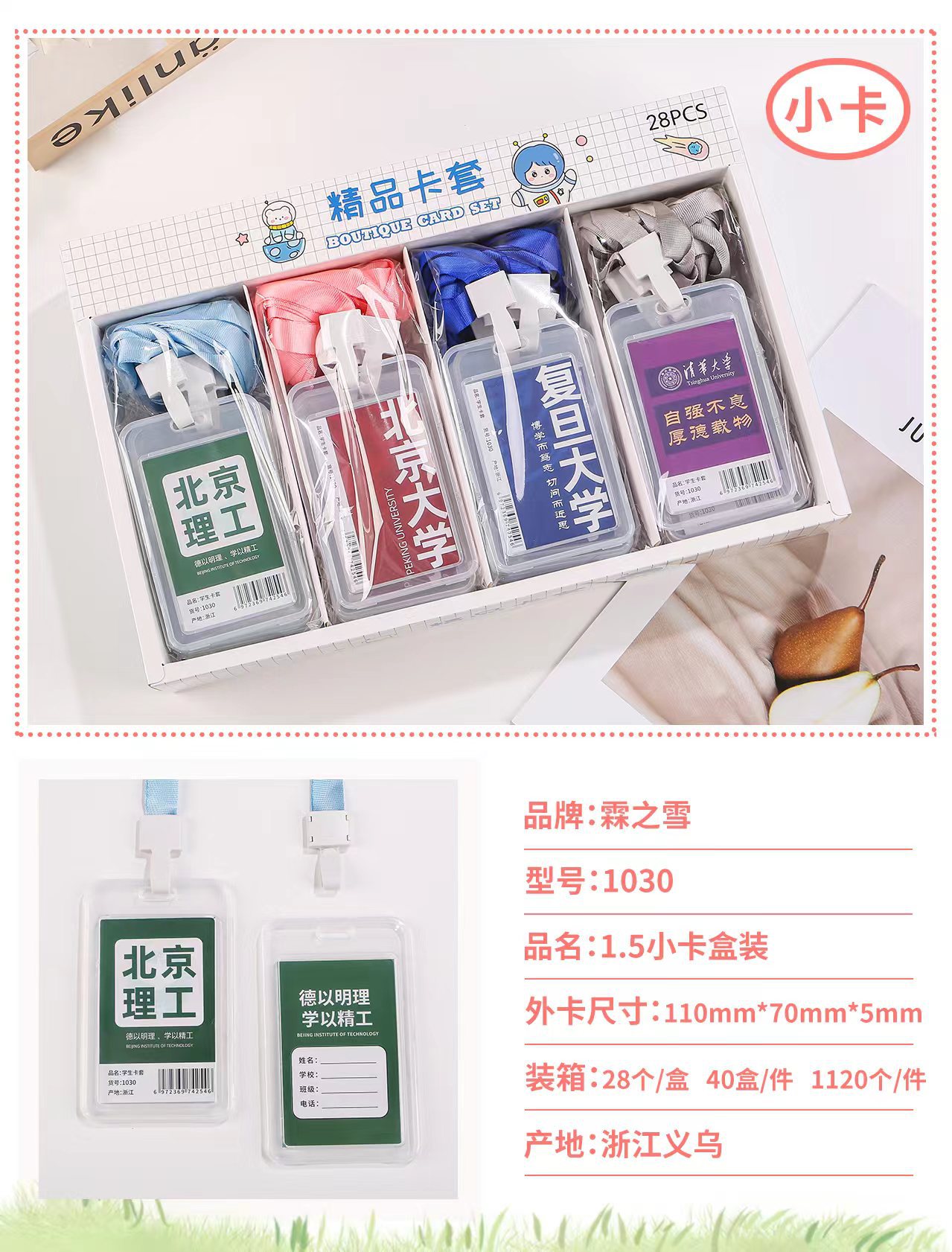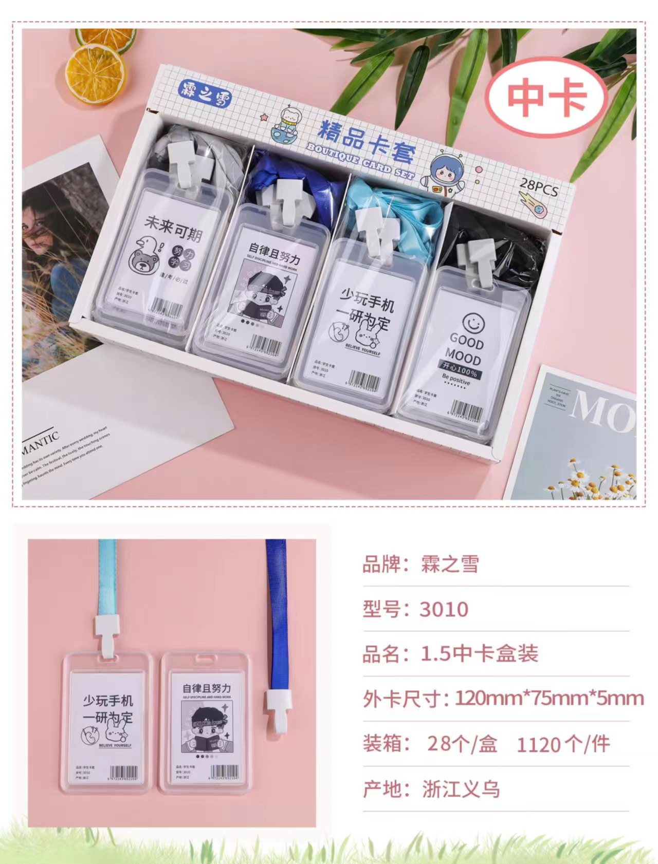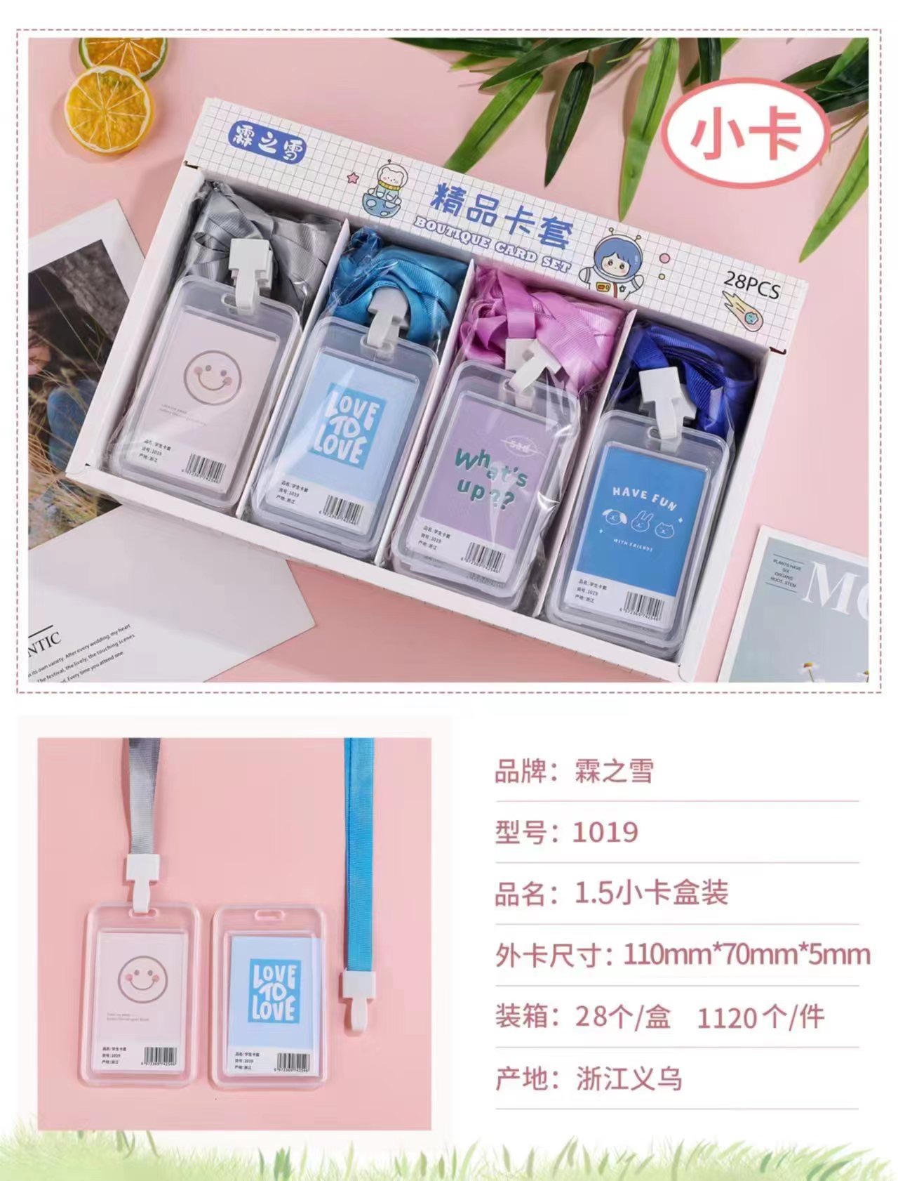 批发创意学生卡通透明证件卡套学生带挂绳防水员工工作牌公交卡套