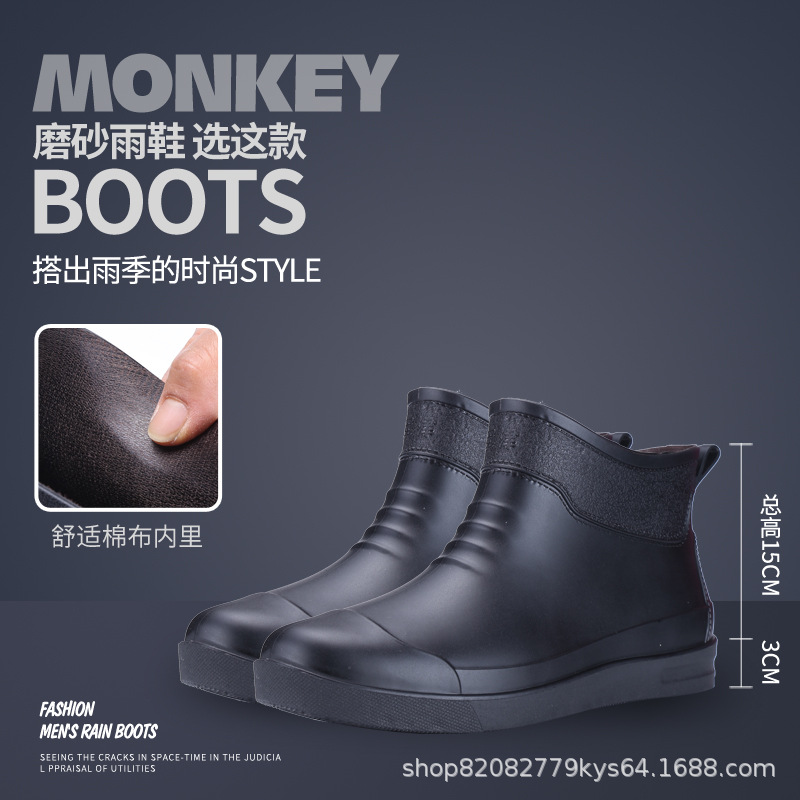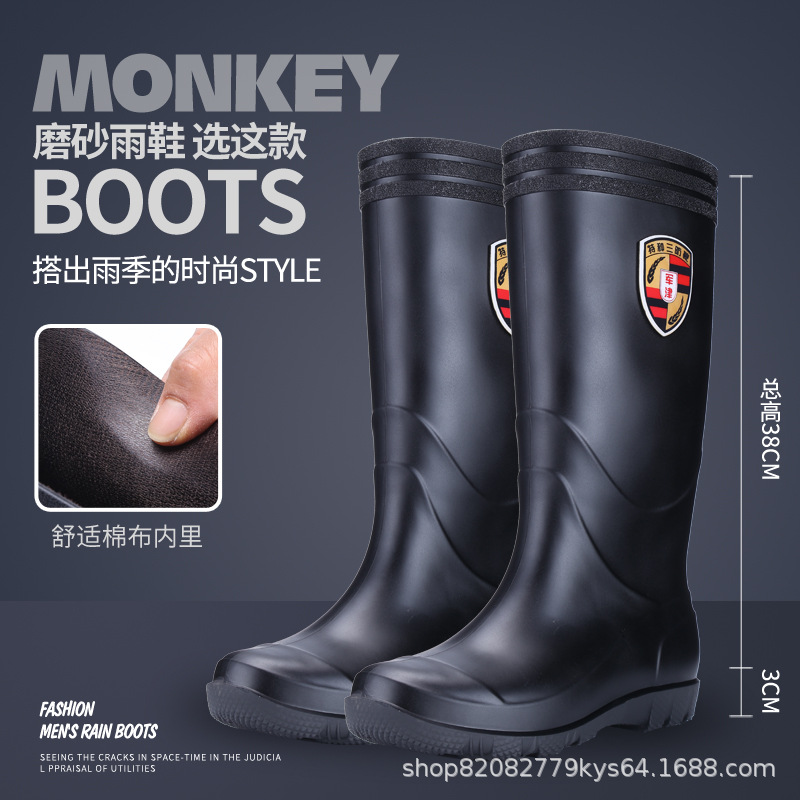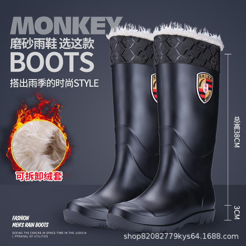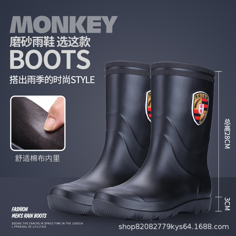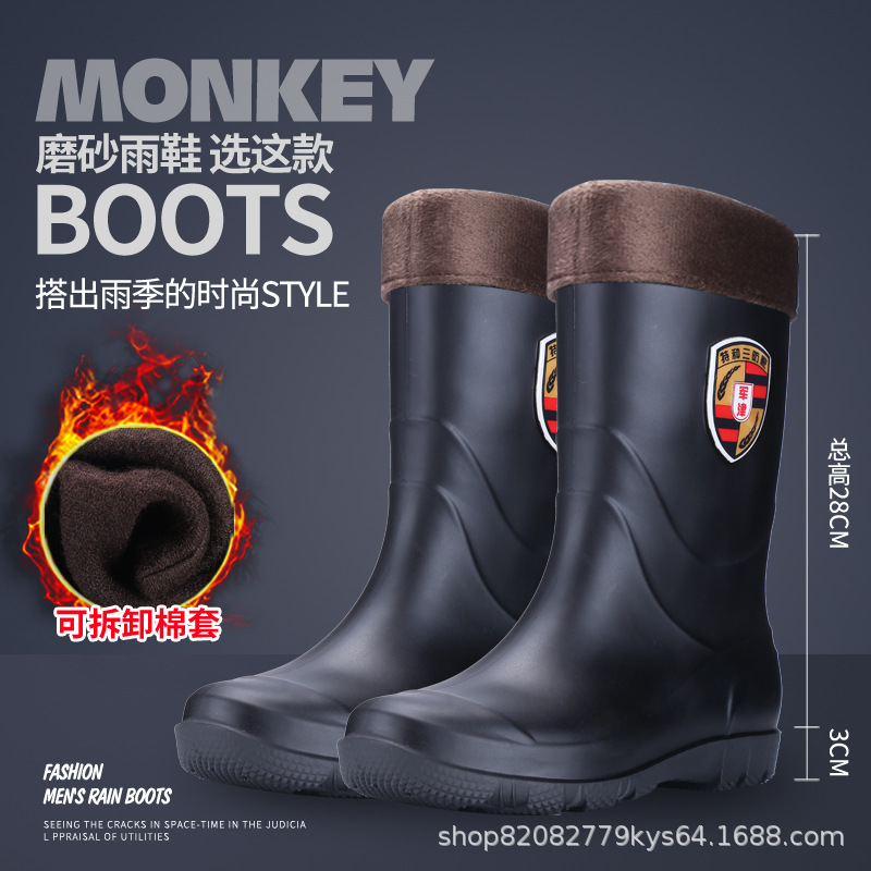 磨砂黑底雨鞋男士加厚防滑耐磨水鞋加棉厚绒水靴工地防水靴雨靴