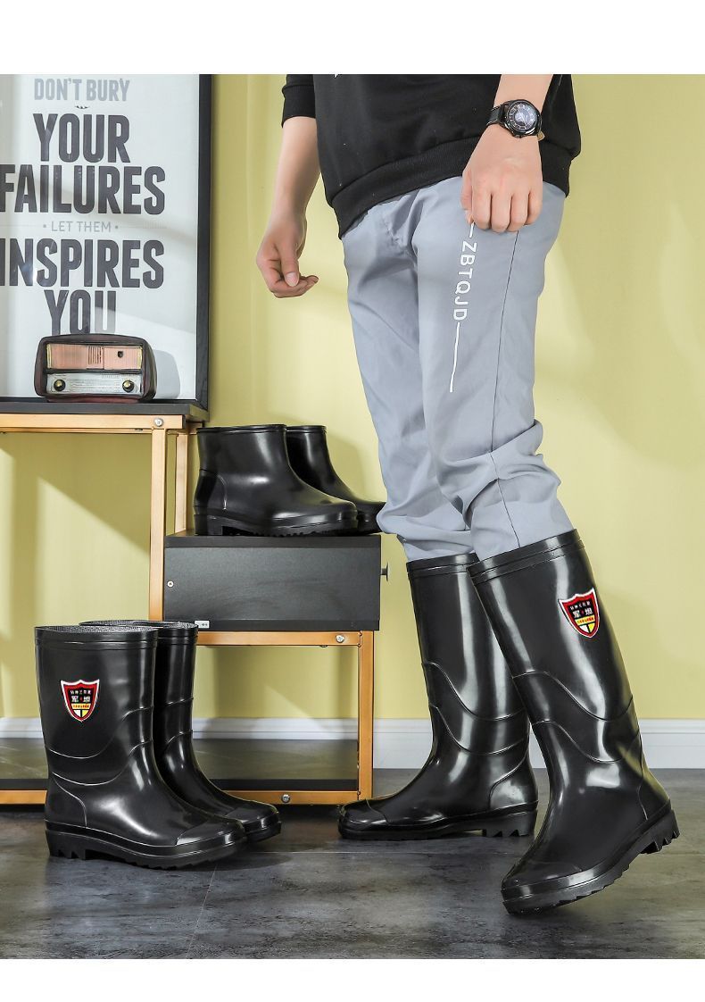 雨鞋劳保工地pvc雨靴男士高筒防滑耐磨胶鞋水鞋加厚牛筋底批发