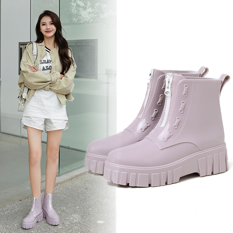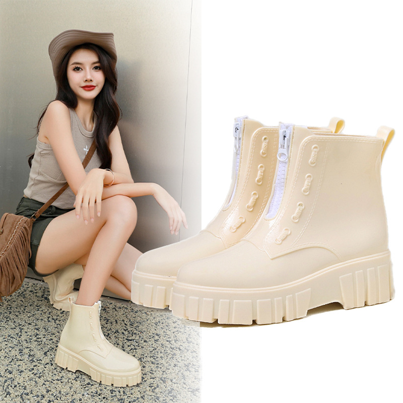 2025新款时尚潮流厚底雨鞋女款防水中筒防滑果冻软底雨靴女夏外穿