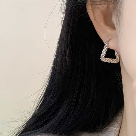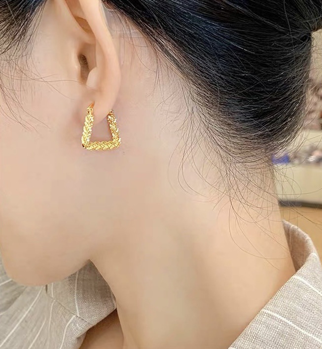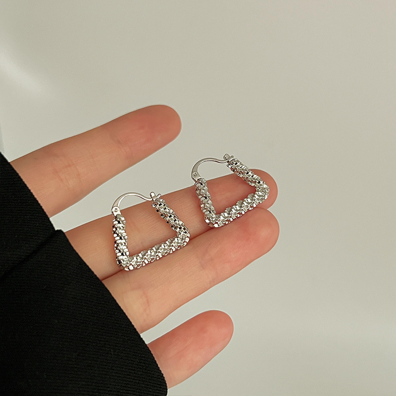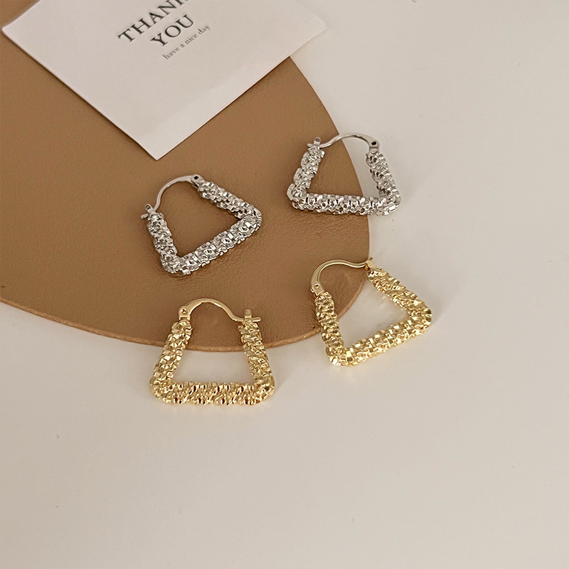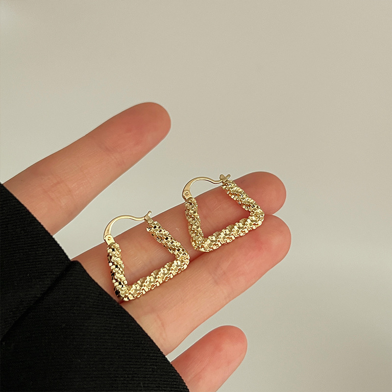 立体感三角形耳钉女小众设计金属耳环轻奢复古气质几何耳饰配饰