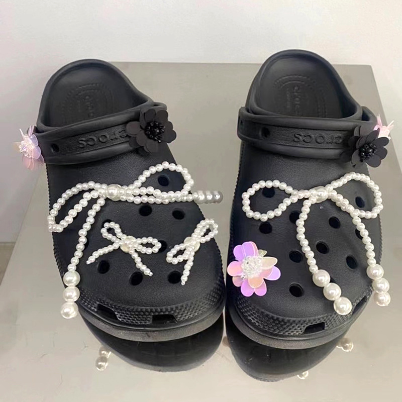 ins韩国个性百搭仿珍珠蝴蝶结diy手工串珠包包洞洞鞋挂饰材料批发