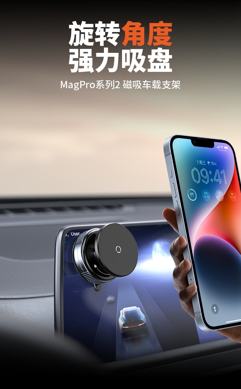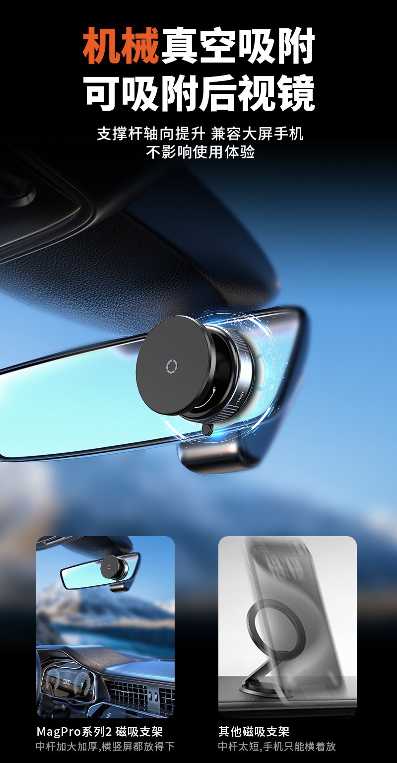 车载手机支架强磁吸真空吸附多角度旋转防抖汽车导航支架免充电
