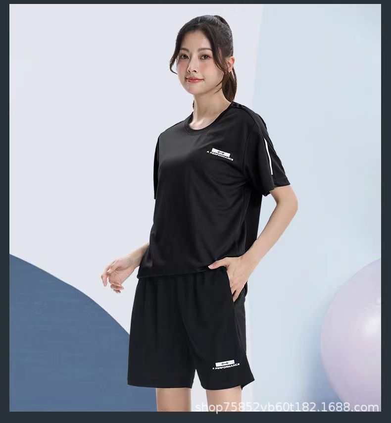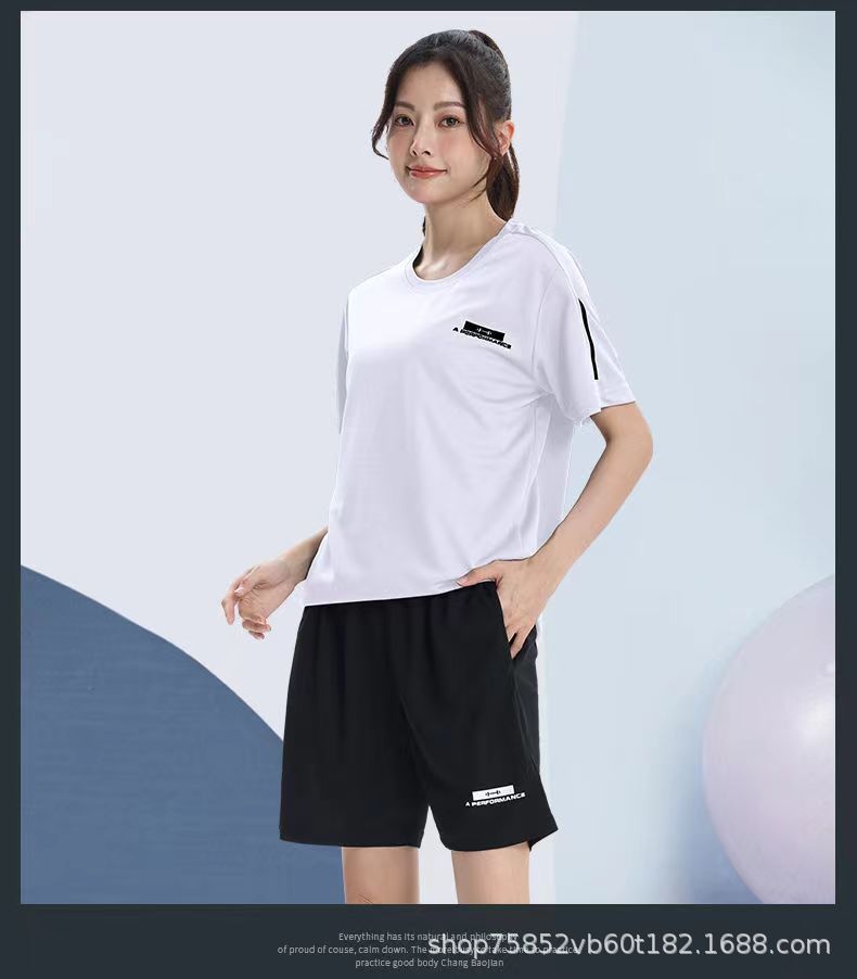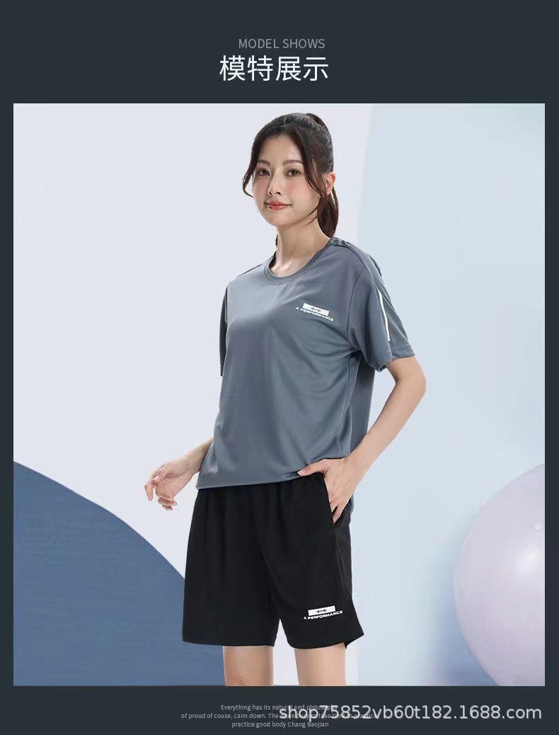 马拉松跑步运动套装女夏季新款瑜伽冰丝速干衣短袖训练大码健身服