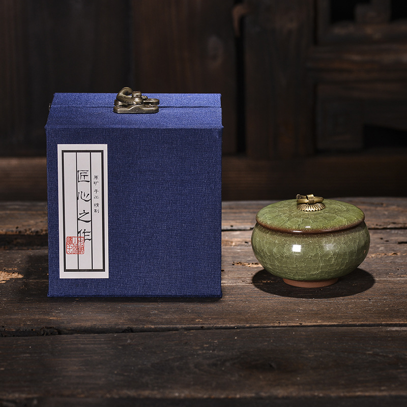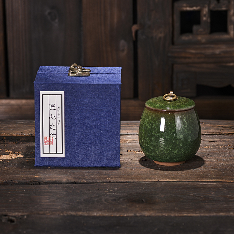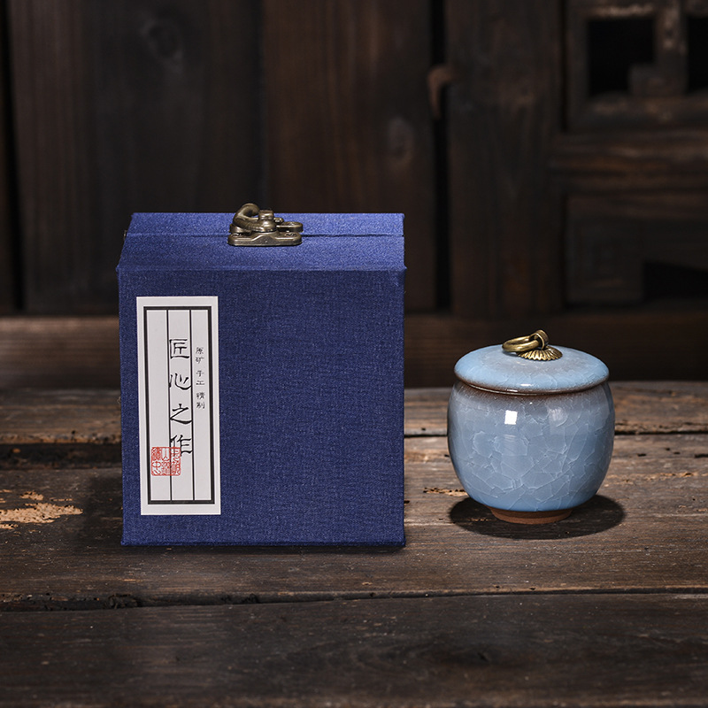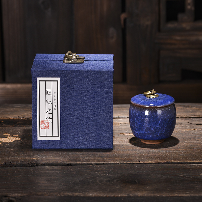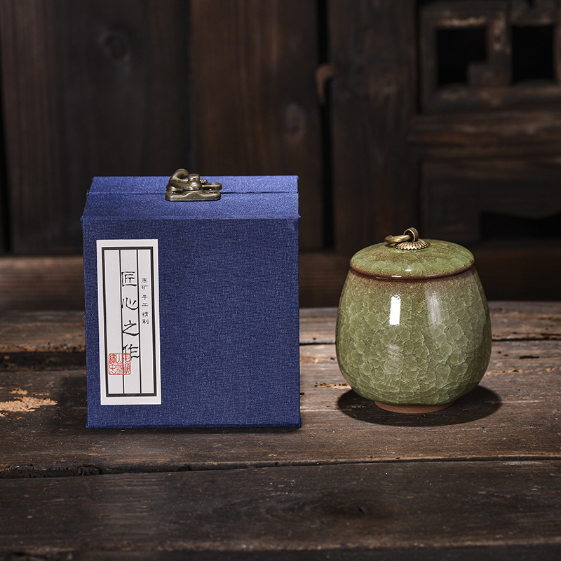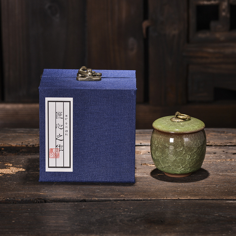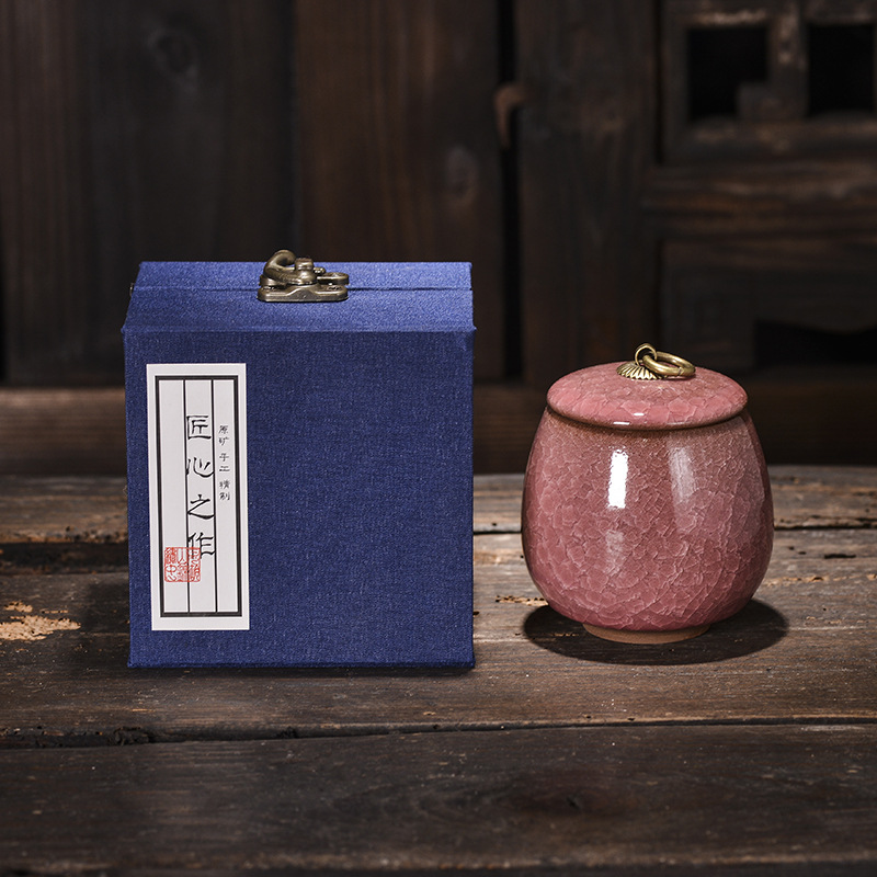 便携冰裂釉陶瓷 紫砂小号茶罐子 茶叶罐 茶叶盒 普洱密封罐