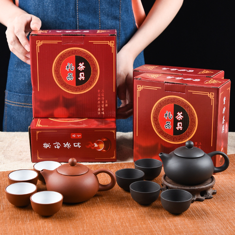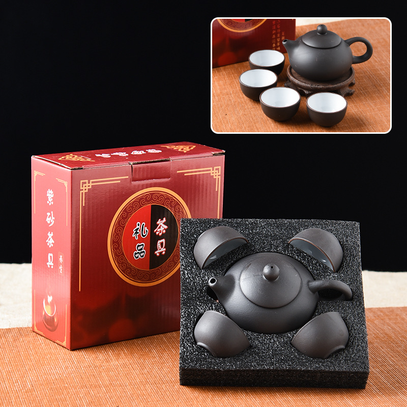 厂家批发紫砂功夫茶具全套一壶四杯加厚陶瓷茶壶可加logo礼品盒