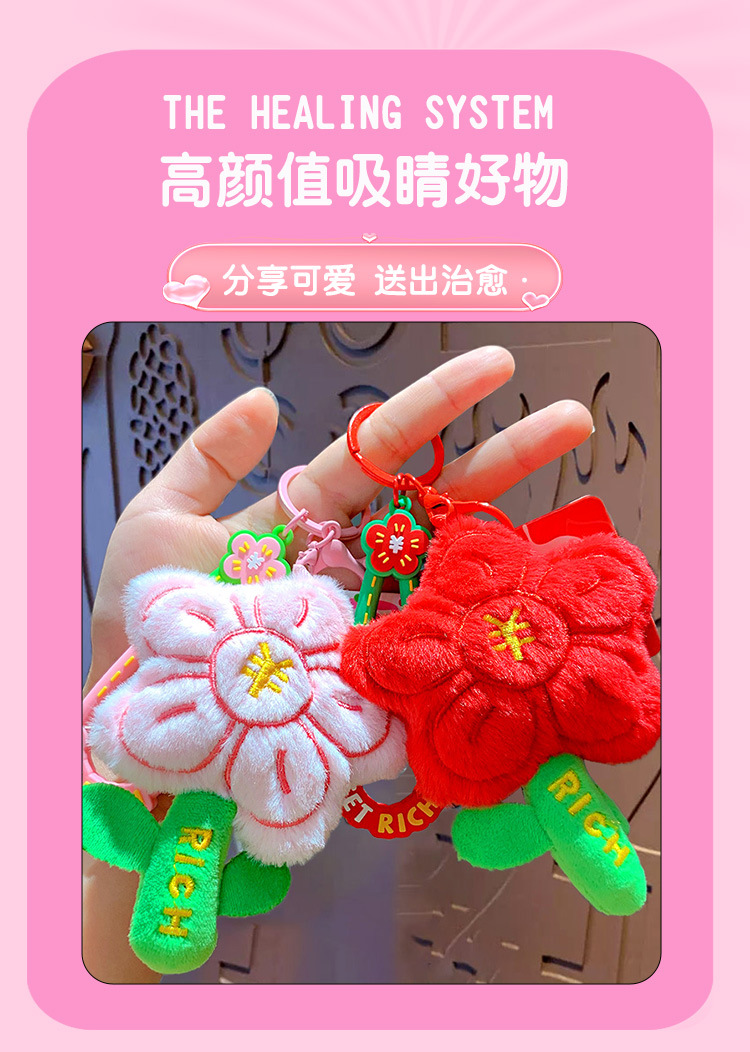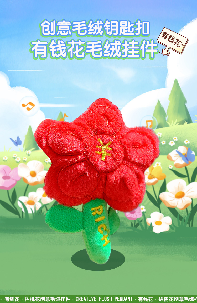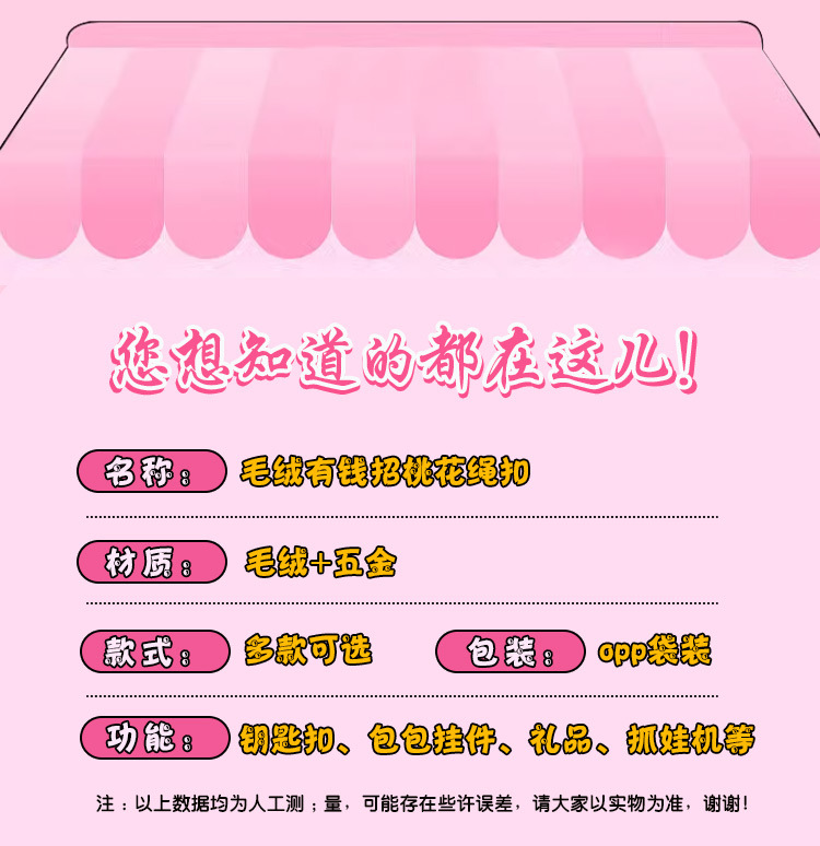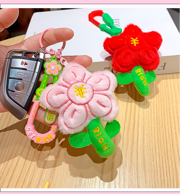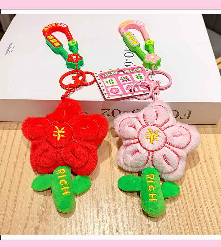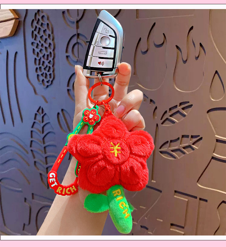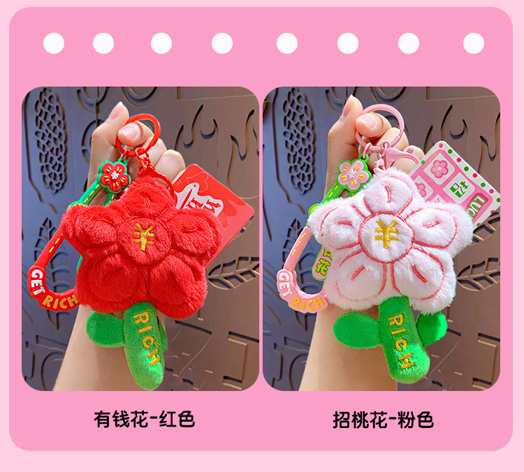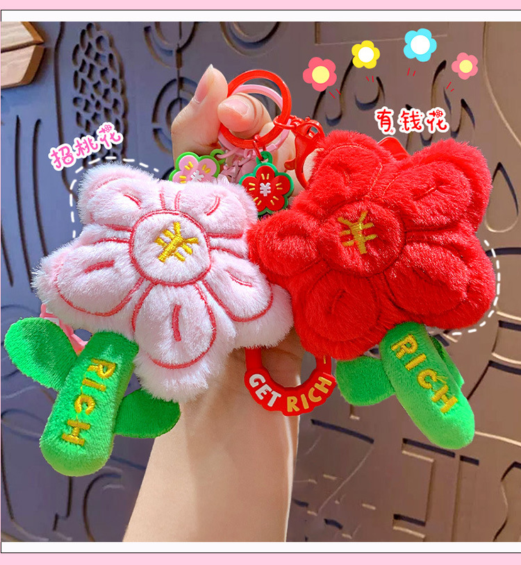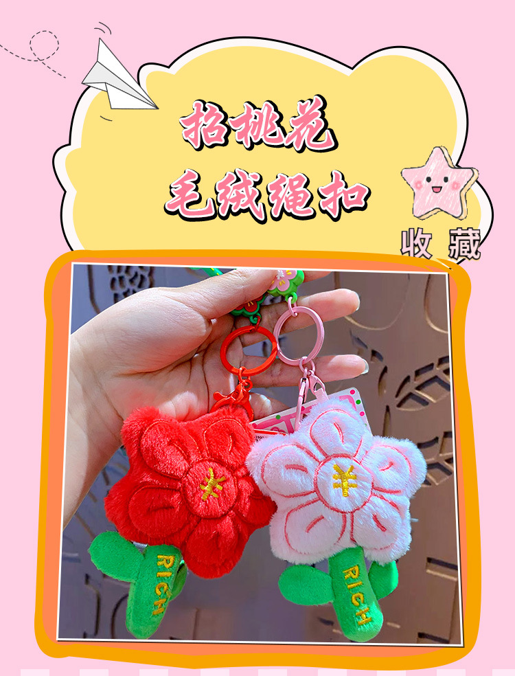 创意毛绒有钱招桃花绳扣可爱招桃花钥匙扣女包包汽车钥匙链小礼品
