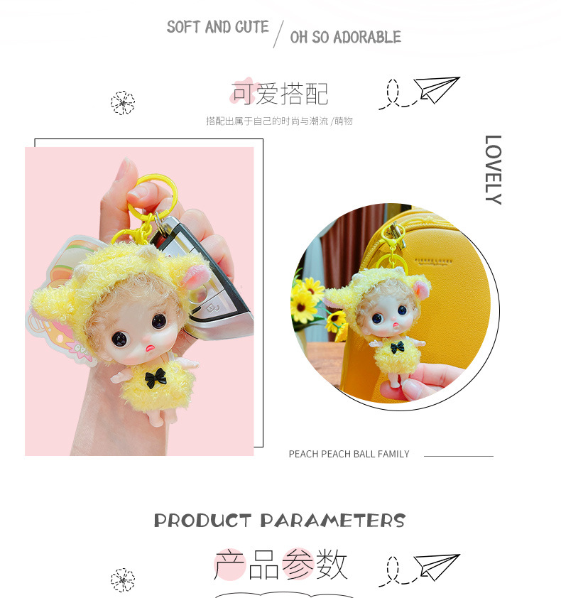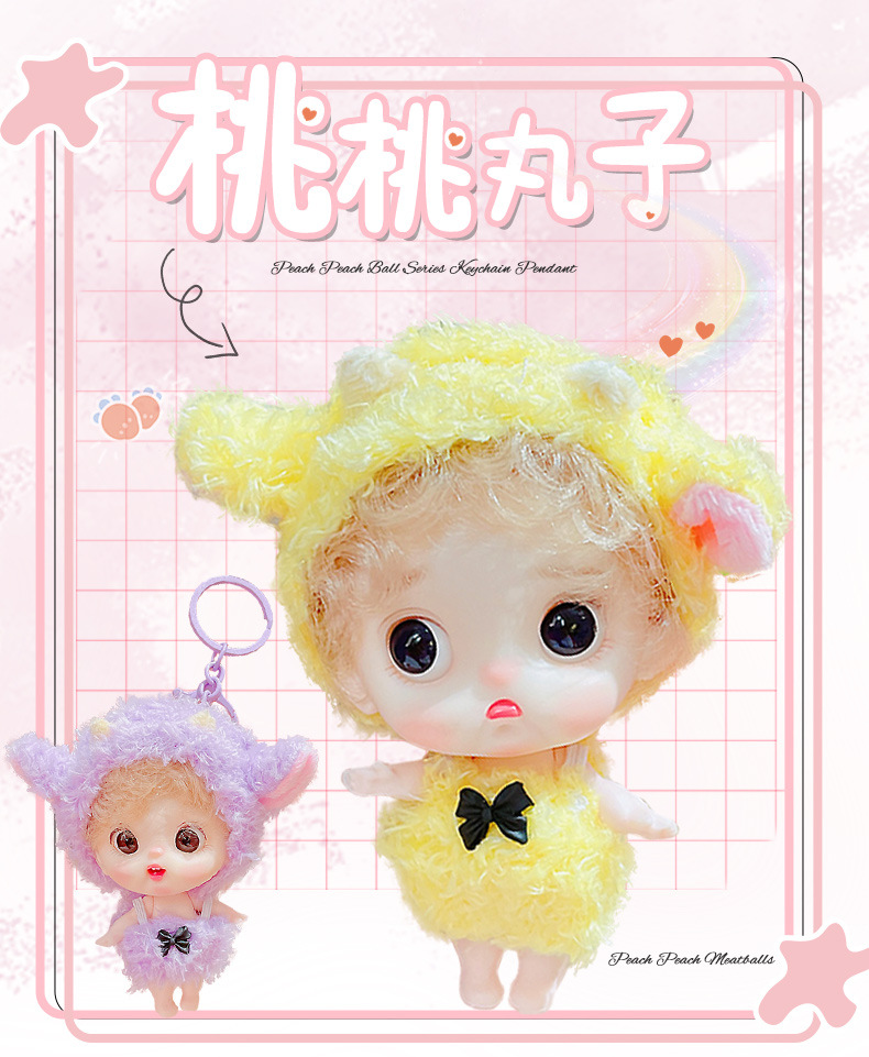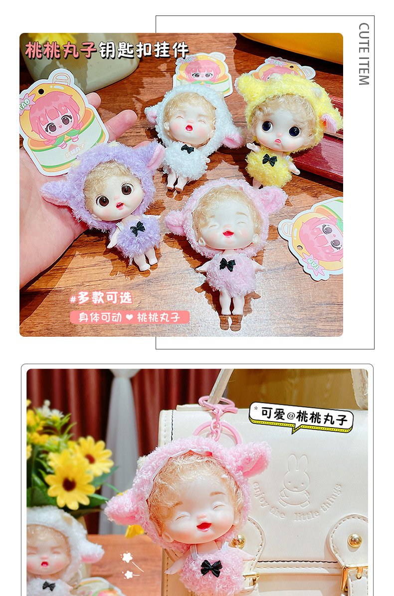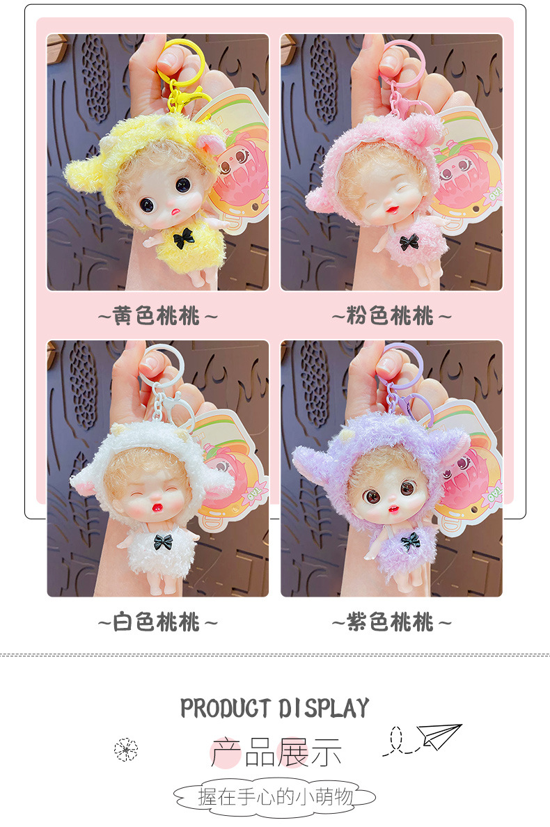 可爱桃桃丸子娃娃手办钥匙扣情侣卡通包包挂件钥匙链挂饰礼品批发