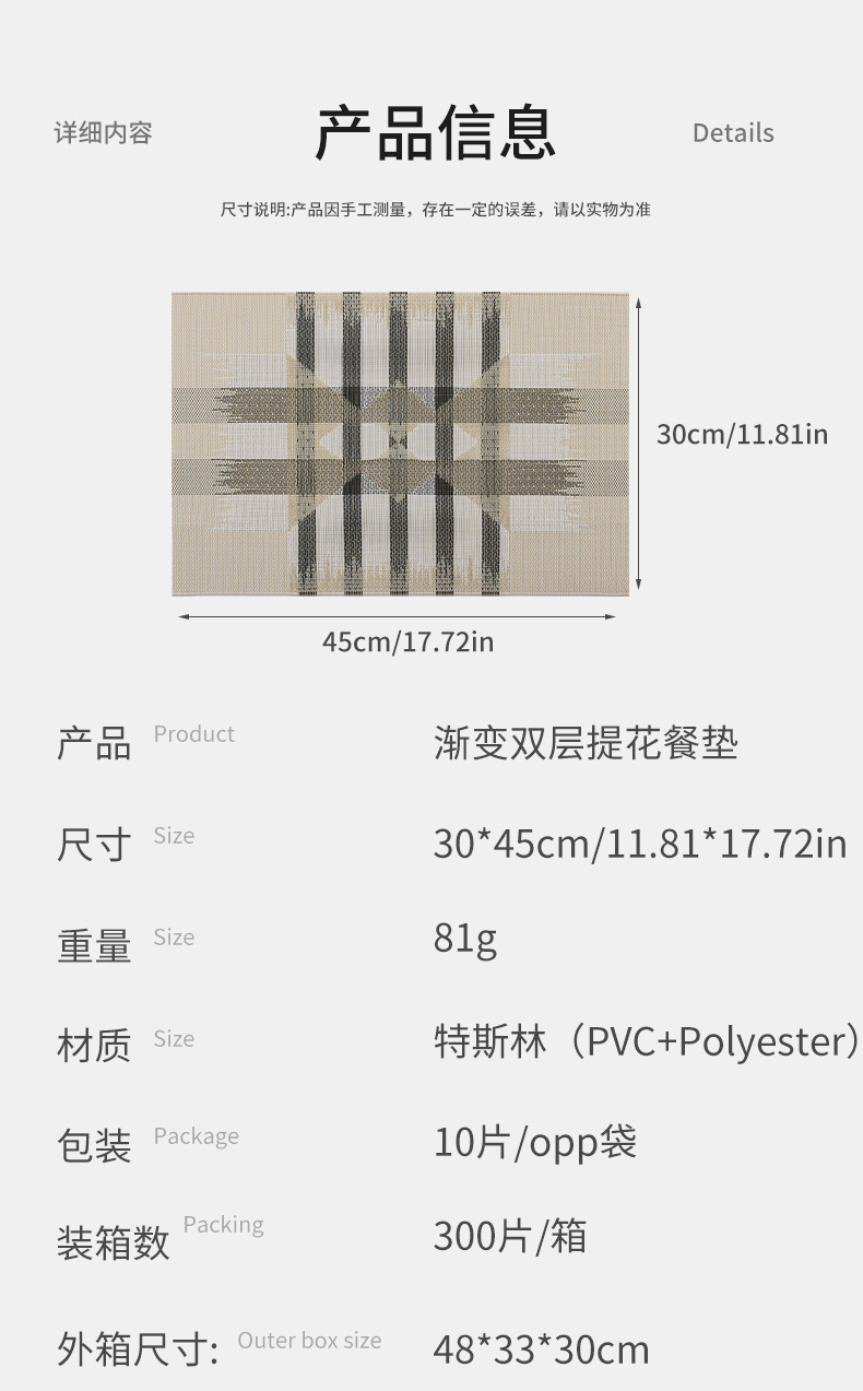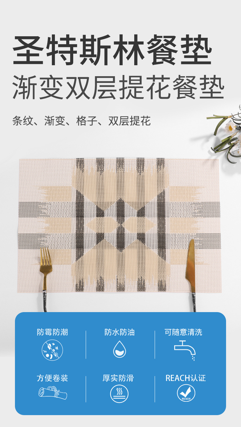 双层提花箭头家用加厚pvc餐垫圣特斯林隔热水洗防滑餐桌垫酒店西