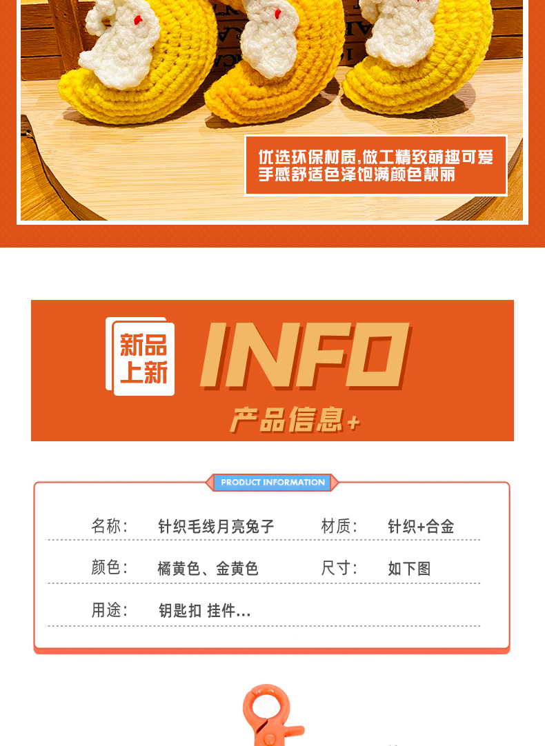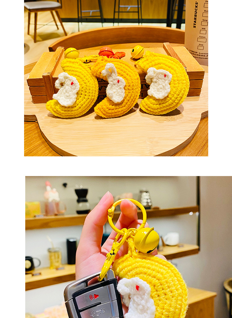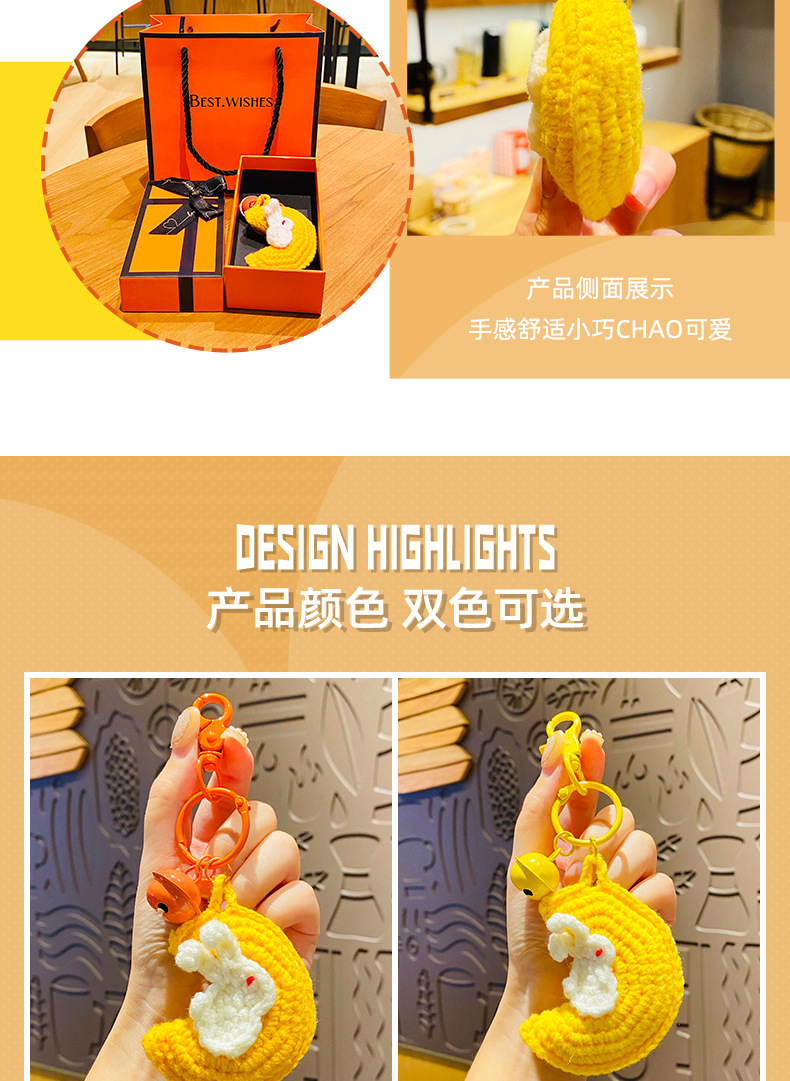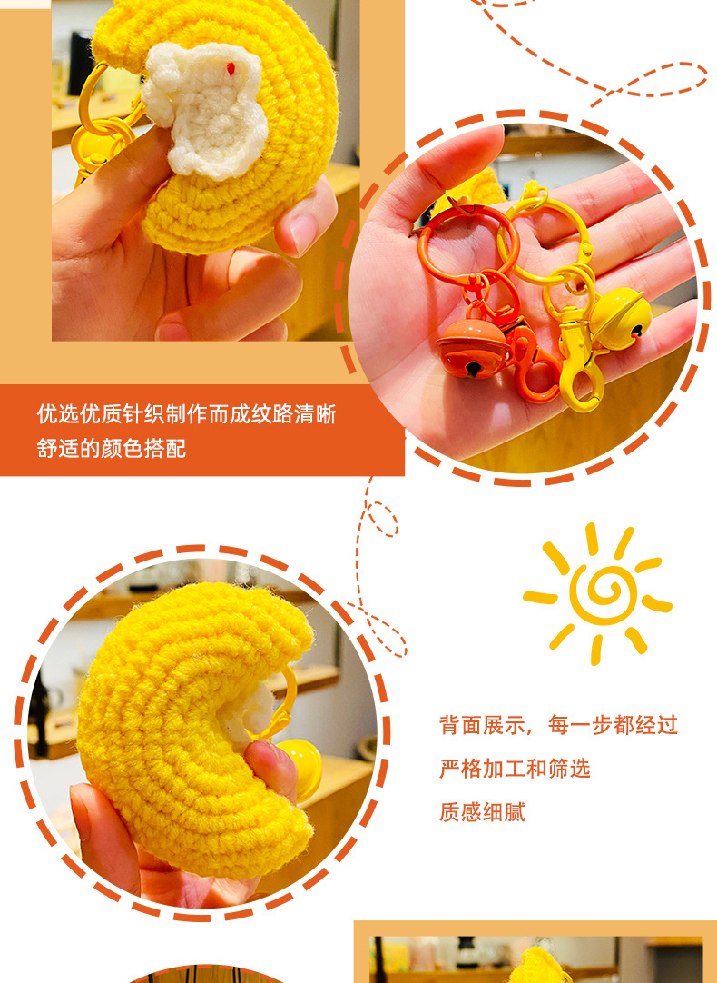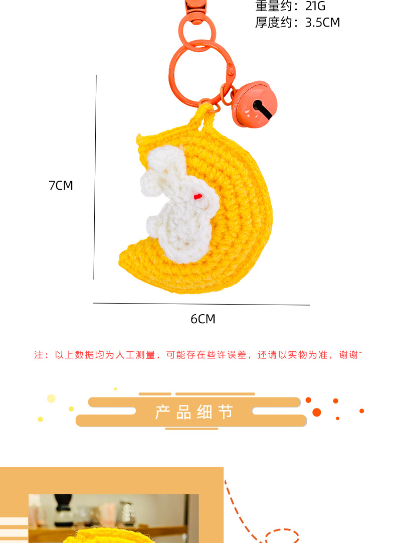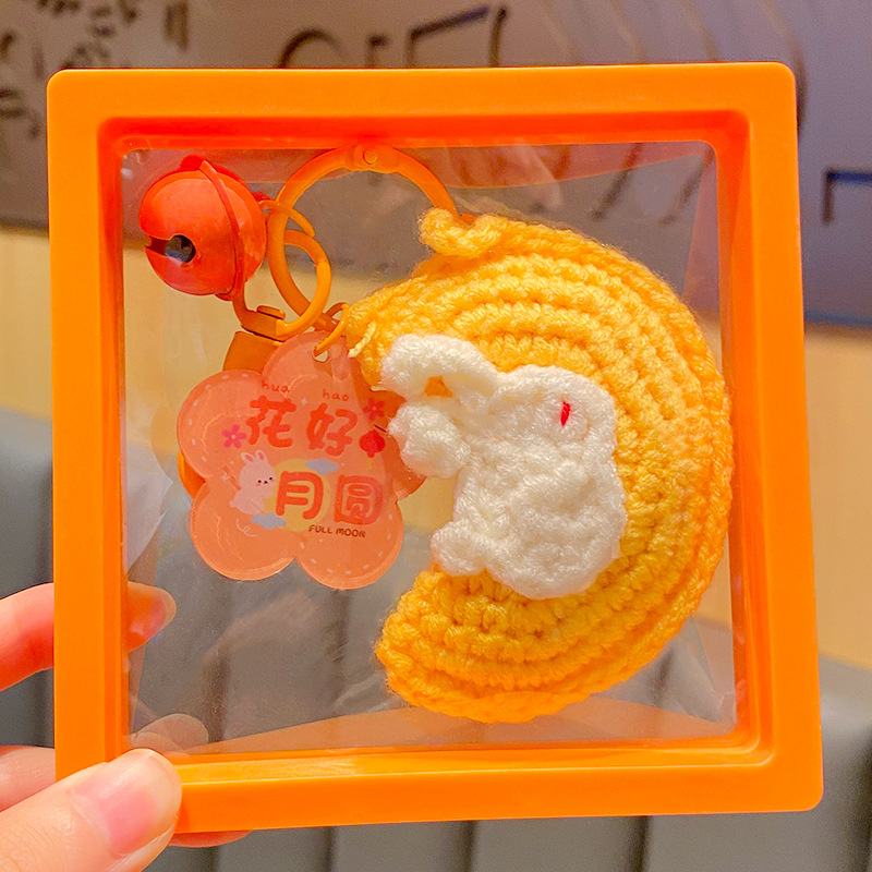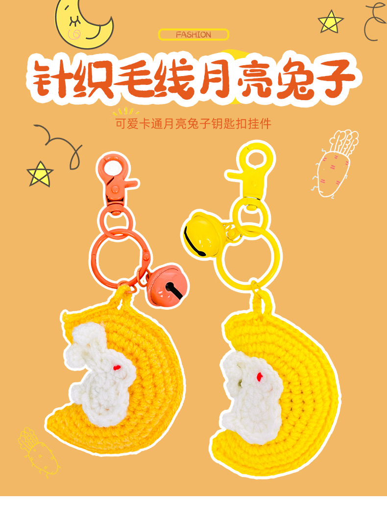 中秋手工针织毛线月亮兔子钥匙扣挂件可爱书包挂饰情侣小礼品批发