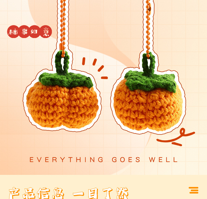 曼妙正版手工编织毛线柿柿如意钥匙扣包包挂件钩织情侣小挂饰批发