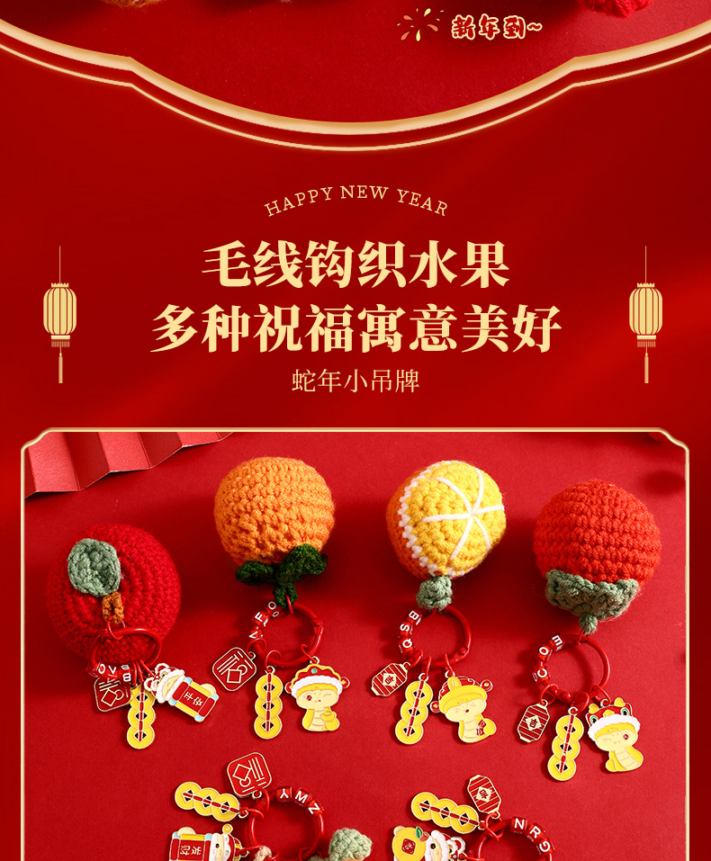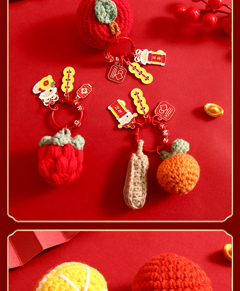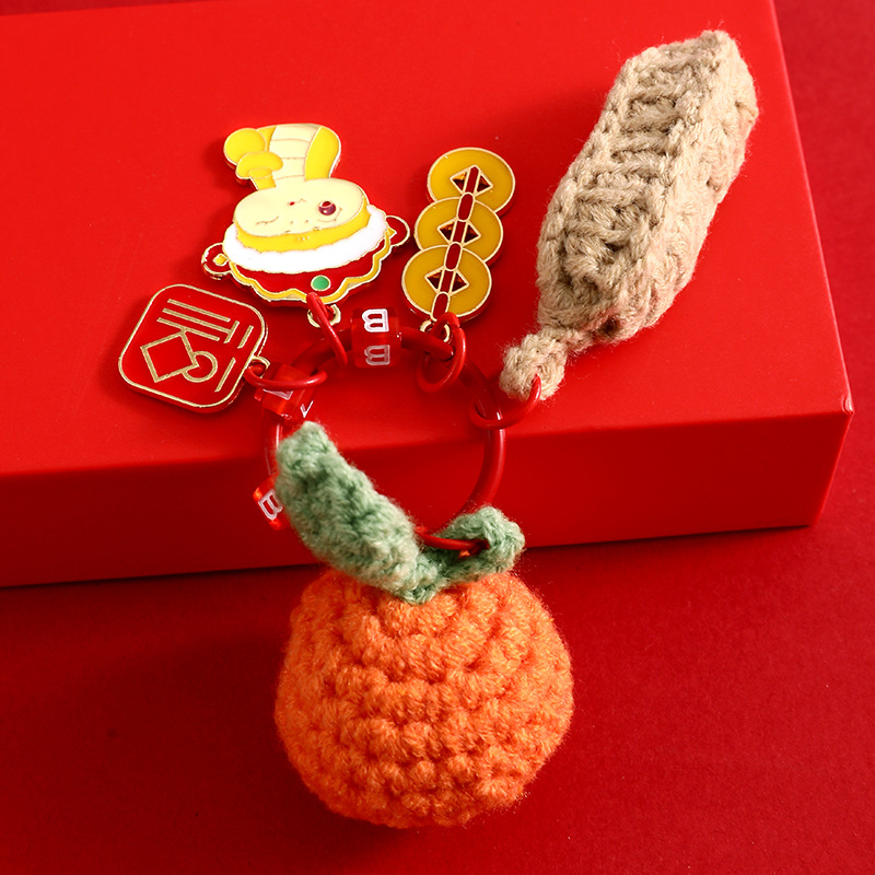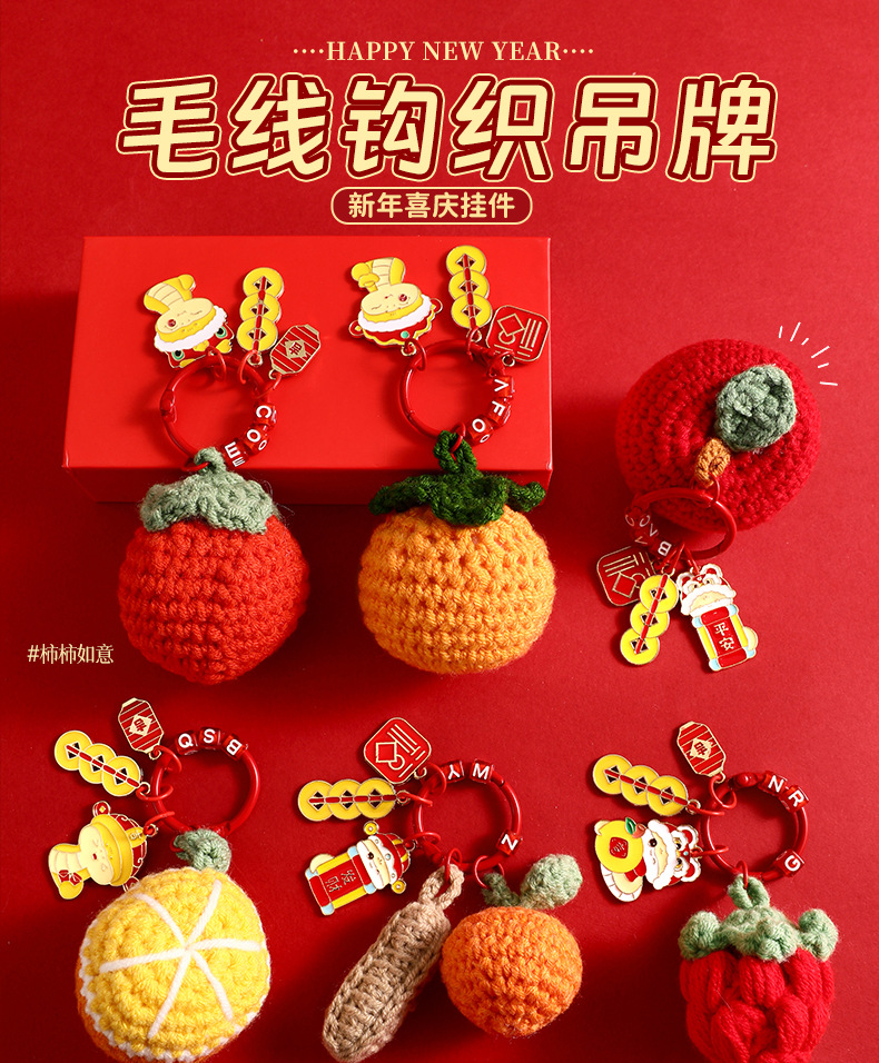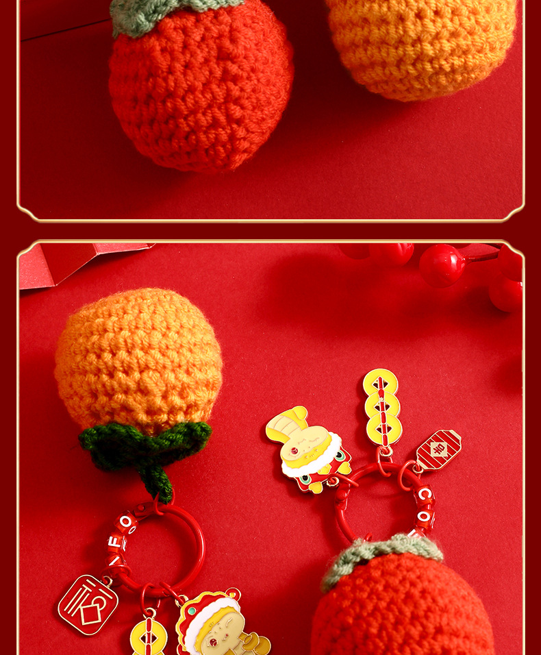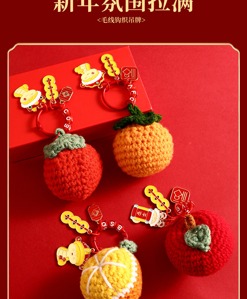毛线钩织吊牌钥匙扣挂件蛇年手工编织柿子新年包包挂饰小礼品批发