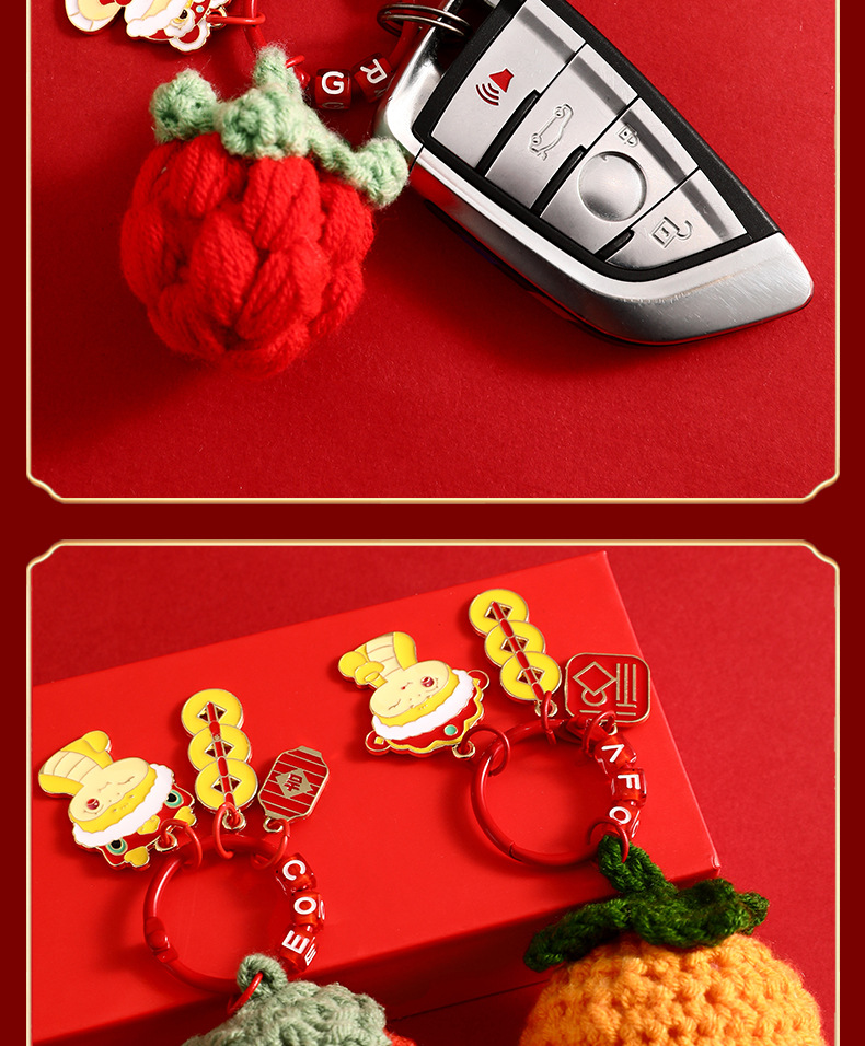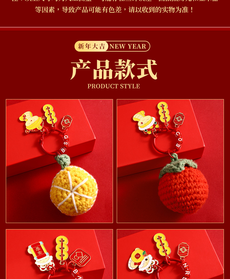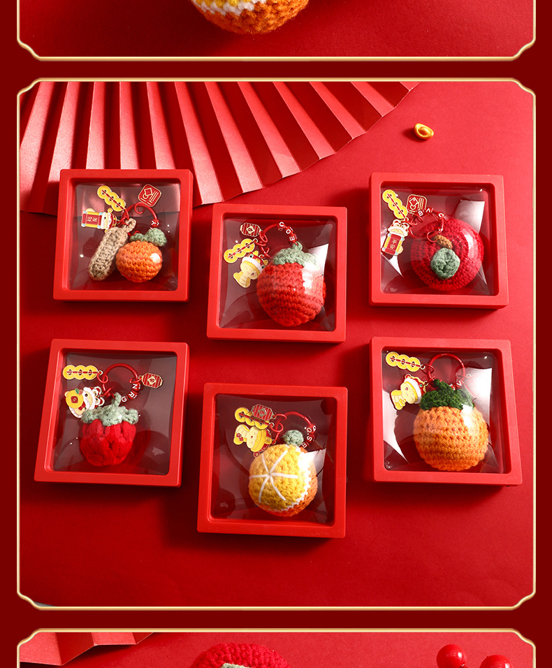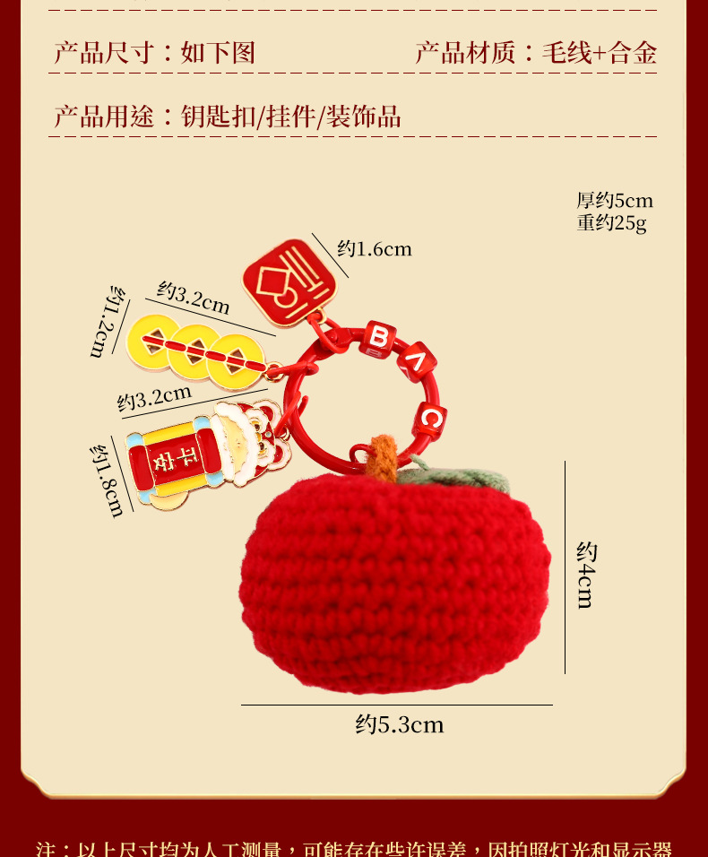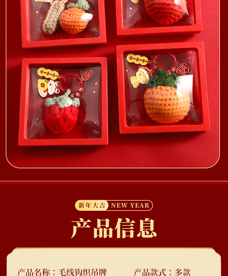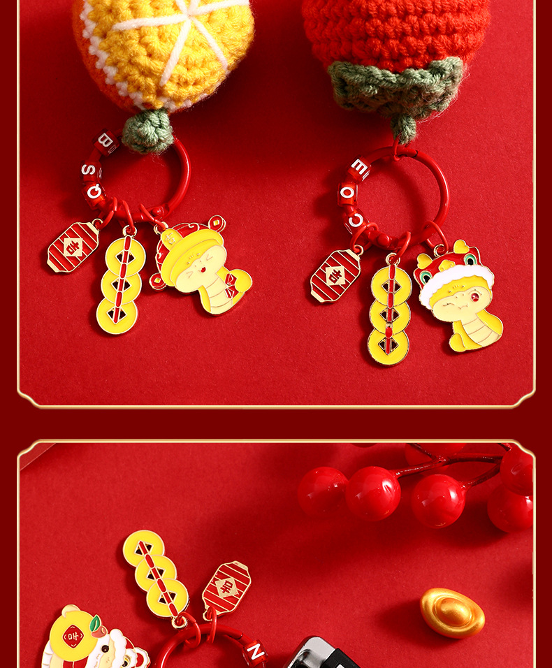 毛线钩织吊牌钥匙扣挂件蛇年手工编织柿子新年包包挂饰小礼品批发