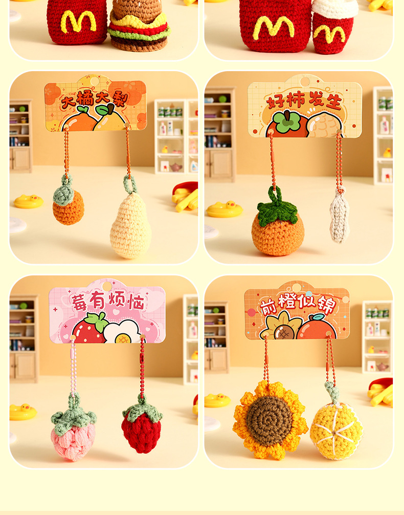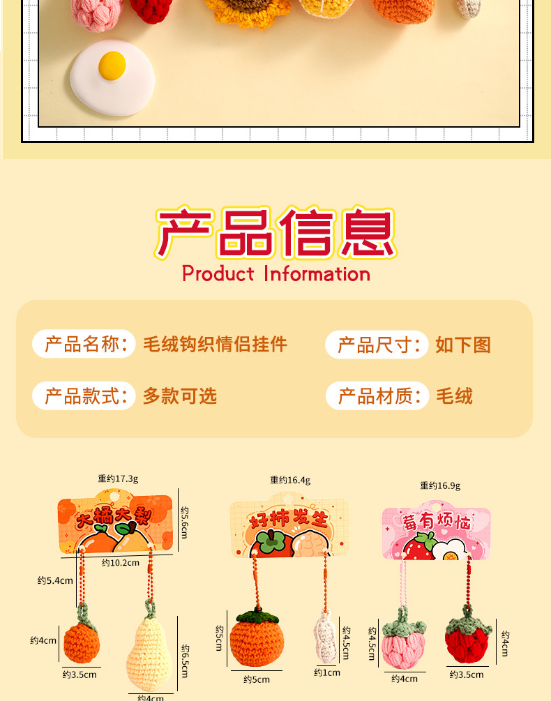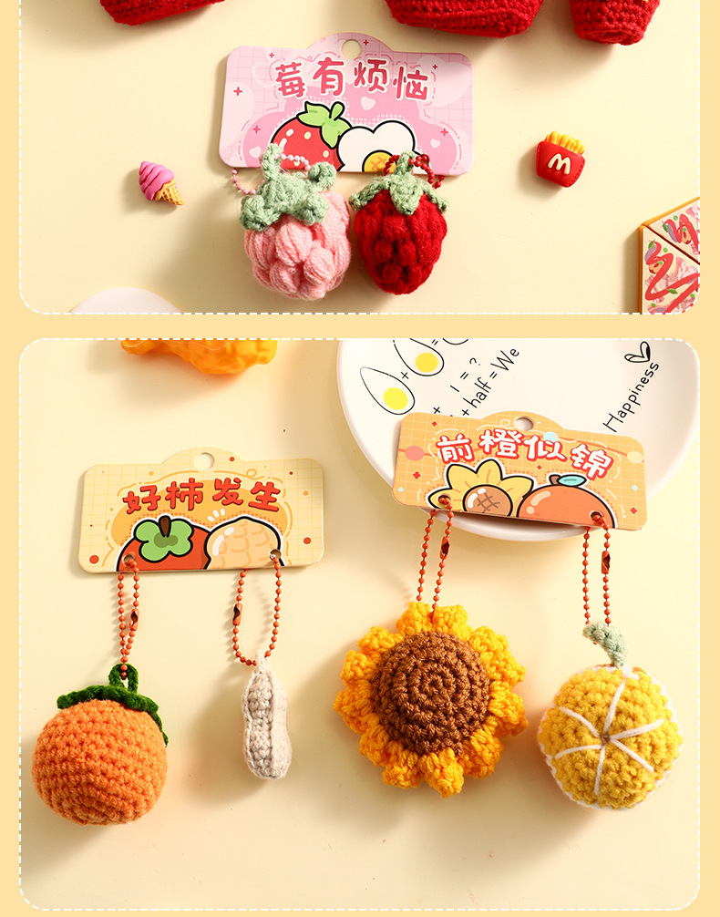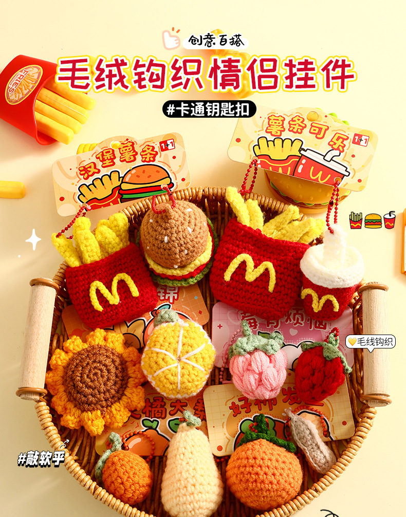 曼妙正版创意卡通毛绒钩织情侣钥匙扣挂件搞怪小蔬菜时尚挂饰批发