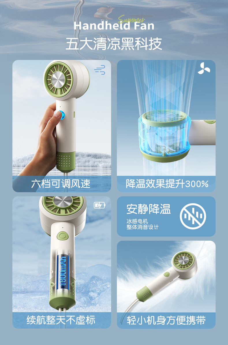 新款简约6档风速手持迷你风扇 usb充电便携电扇跨境外贸礼品logo