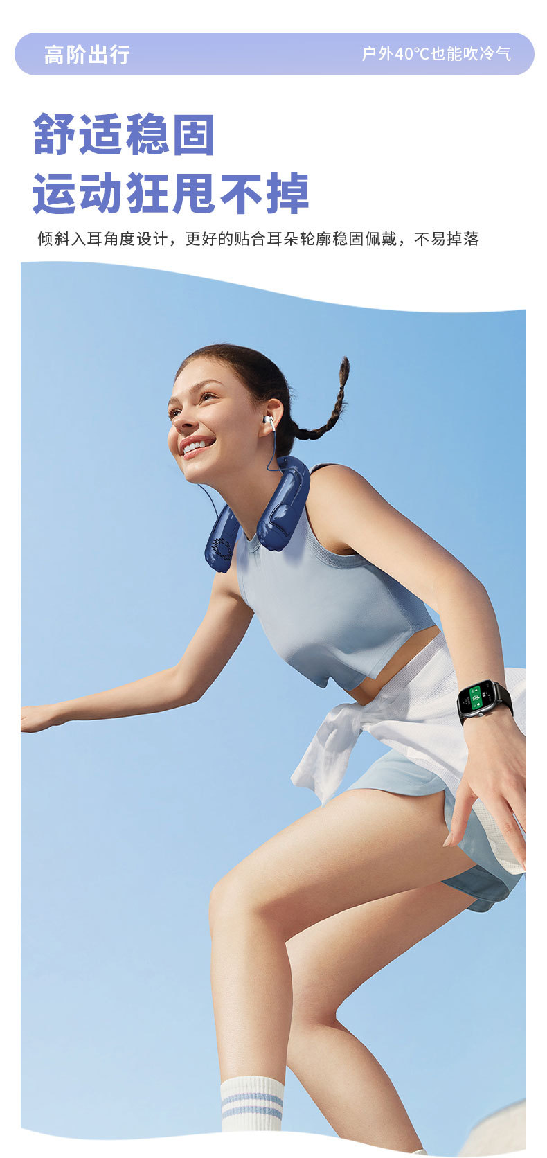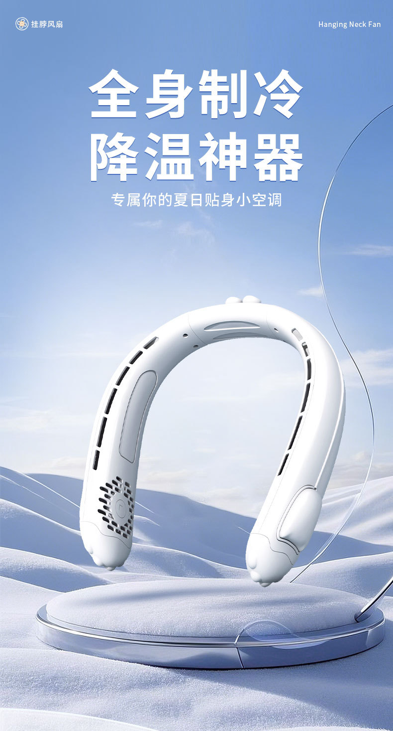 25年新款蓝牙耳机挂脖风扇usb充电小风扇户外便携式风扇耳机二合