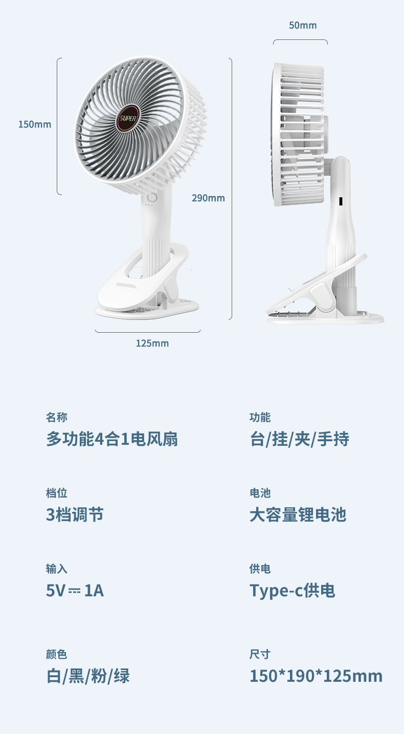 跨境户外usb便携多功能夹扇可充电家用宿舍办公室手持扇桌面风扇