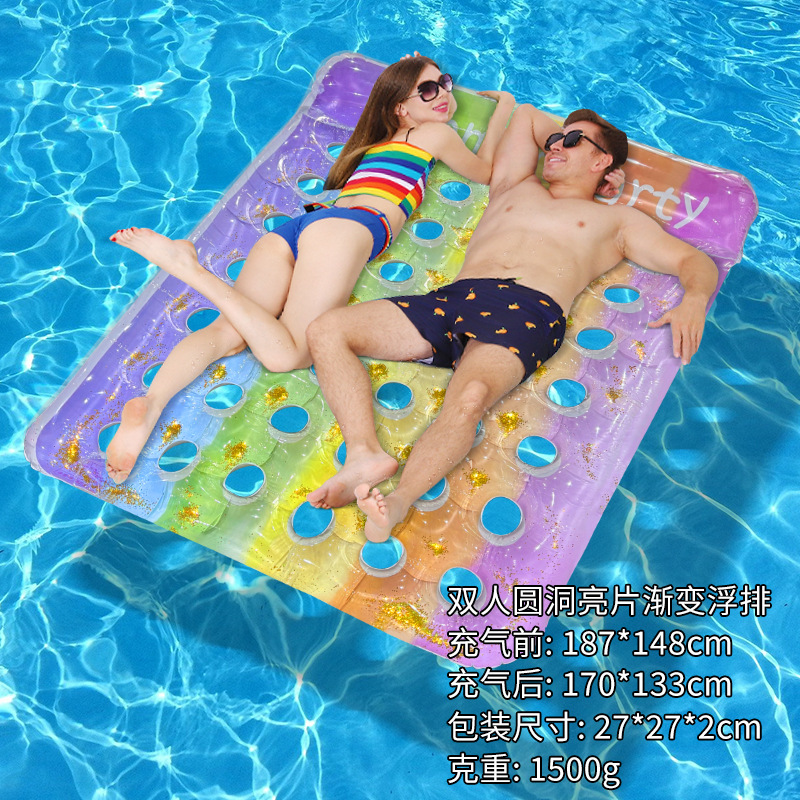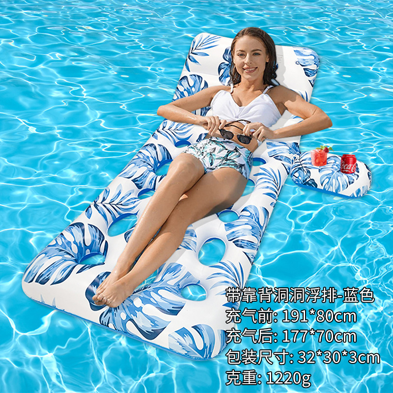 跨境爆款充气浮排加厚男女洞洞浮椅水上派对浮床靠背躺椅浮排批发