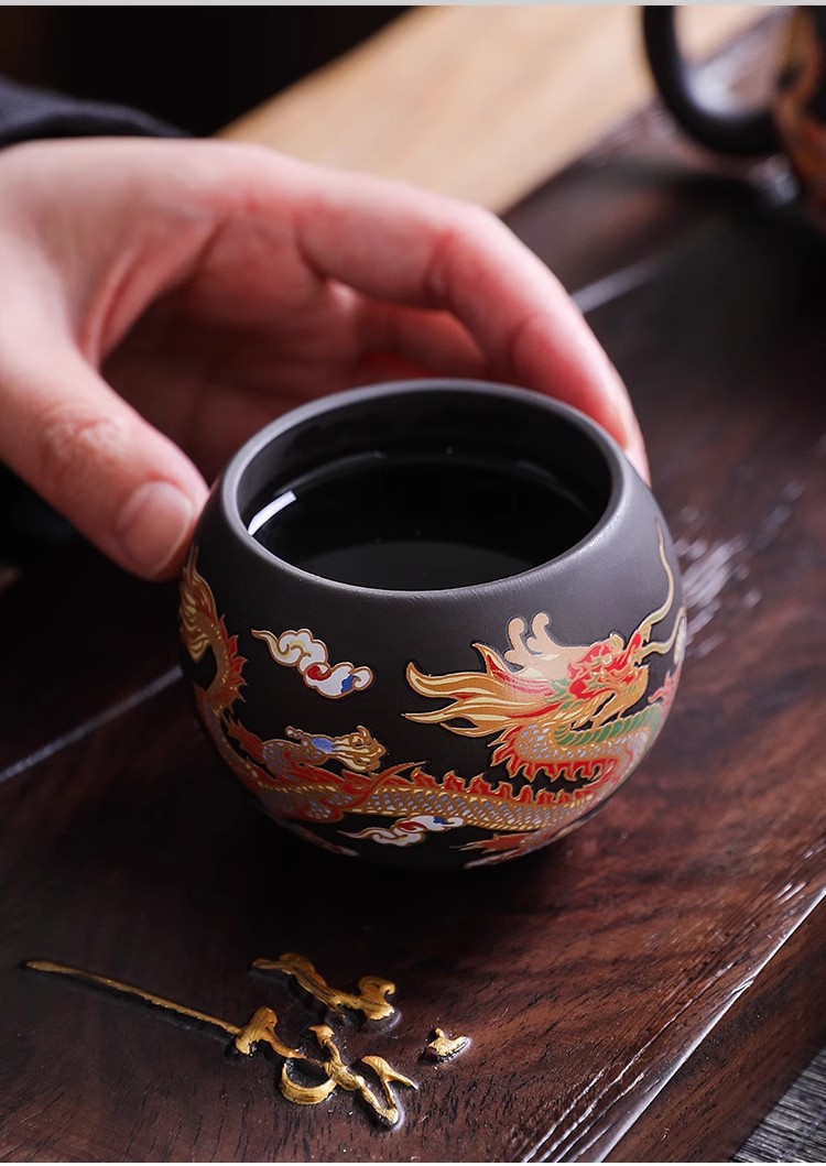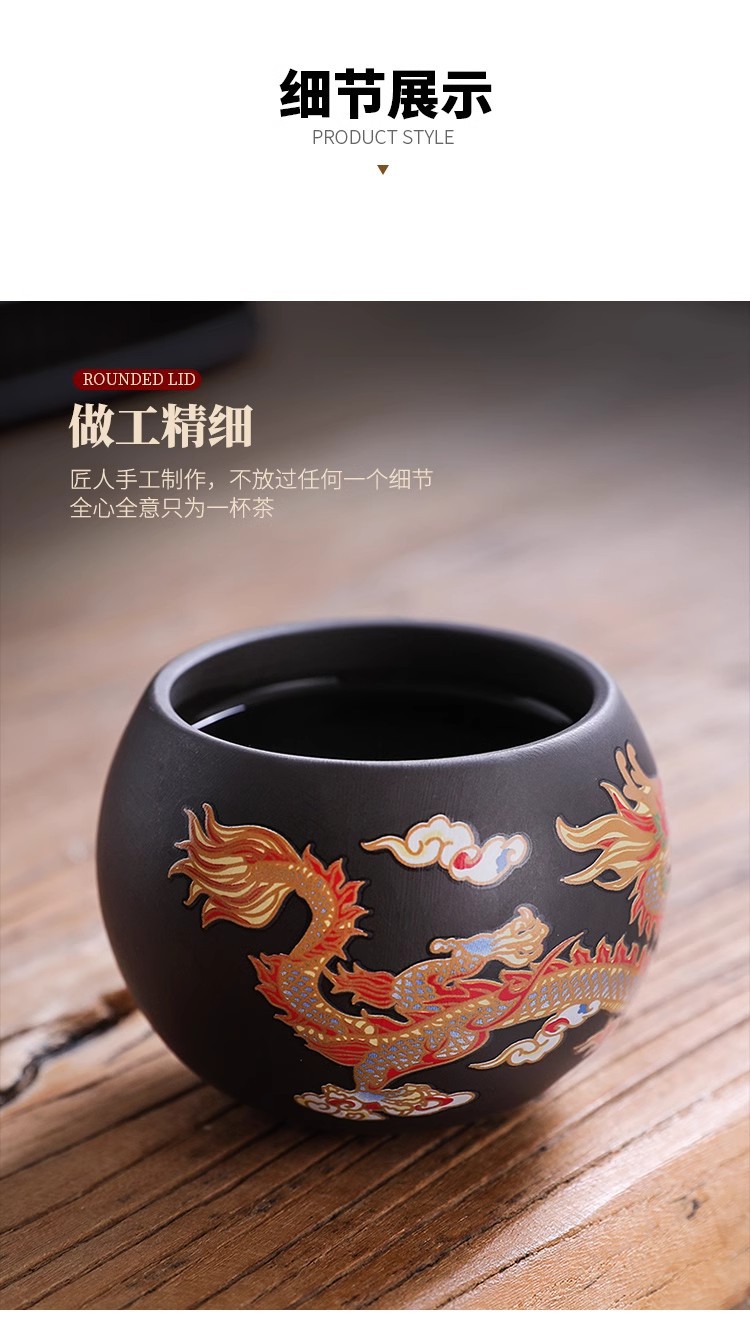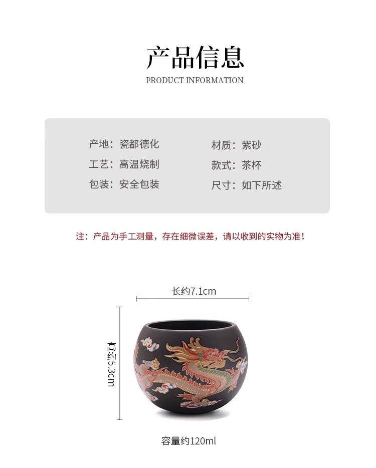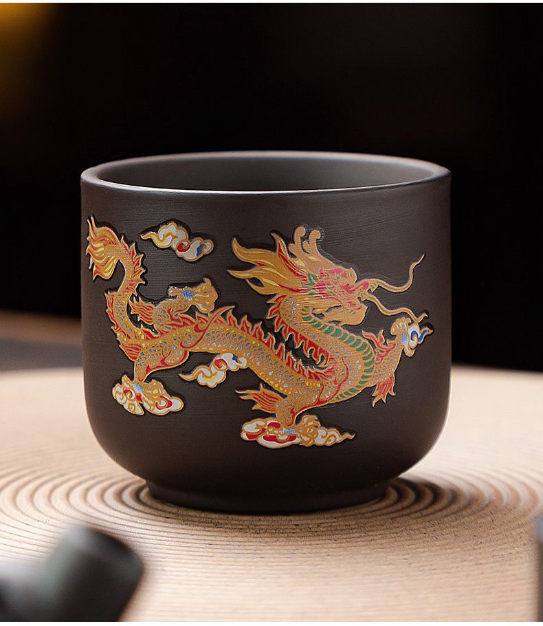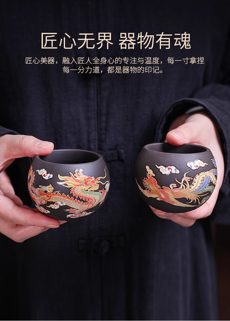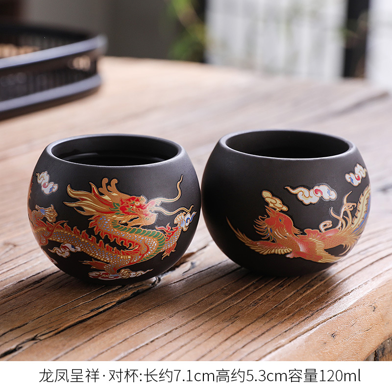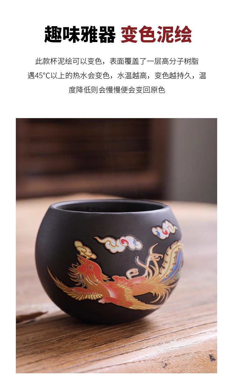 紫砂变色主人杯龙凤呈祥紫泥茶杯品茗杯功夫茶杯茶碗遇热变色茶盏