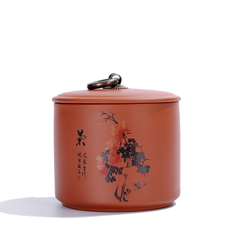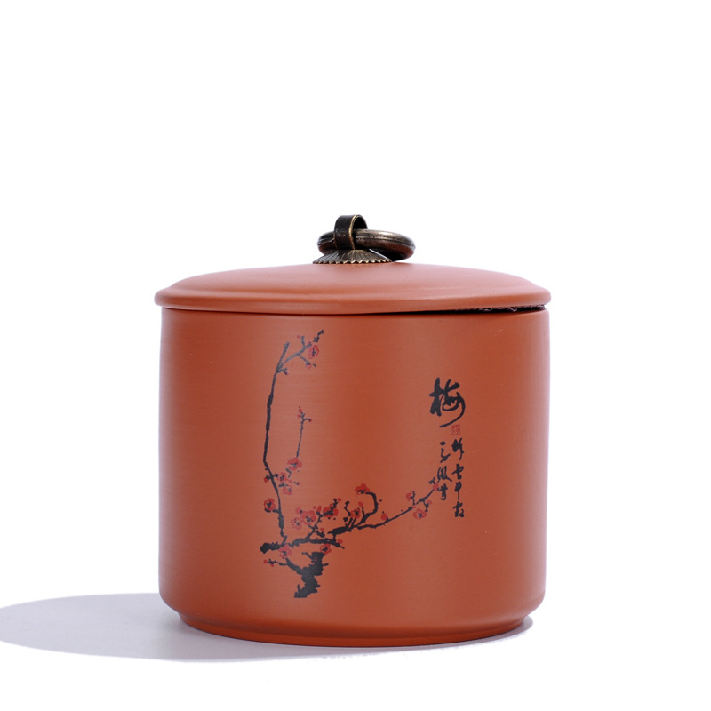 热销梅兰竹菊小号1两 红茶紫砂茶叶罐陶瓷茶叶小罐花茶储存罐茶罐