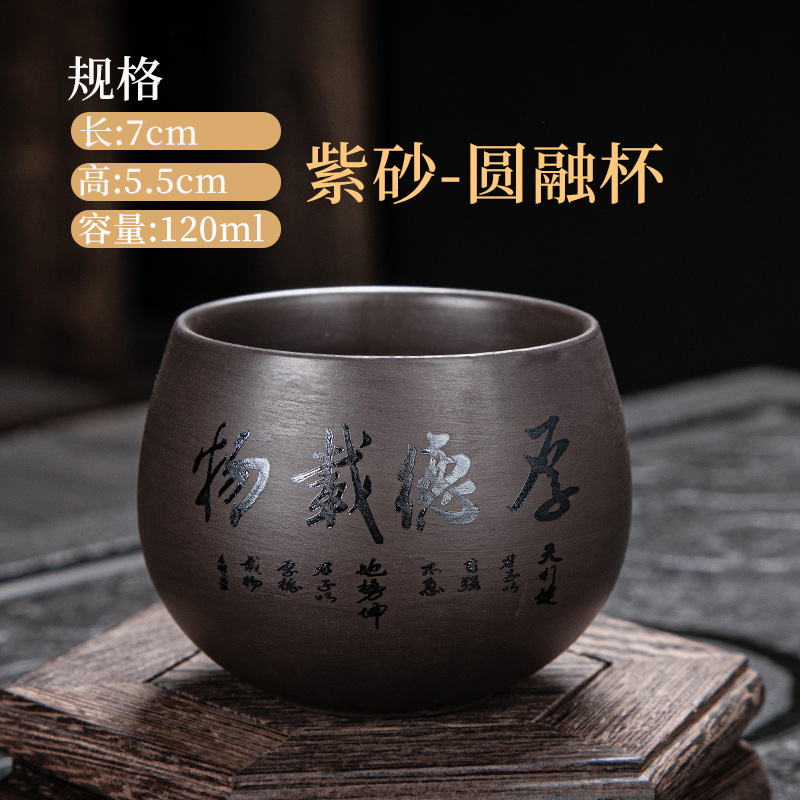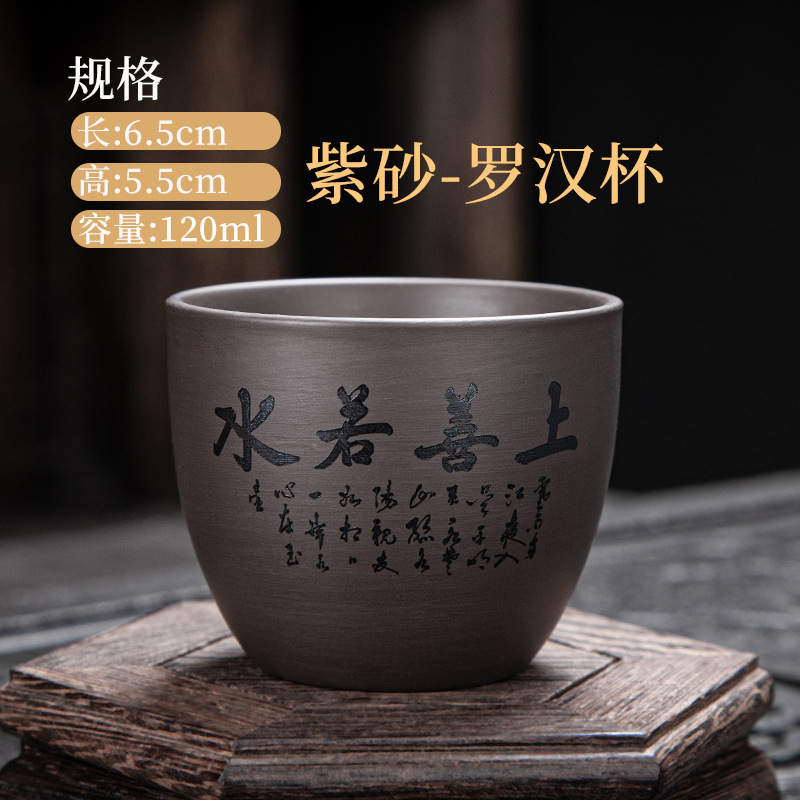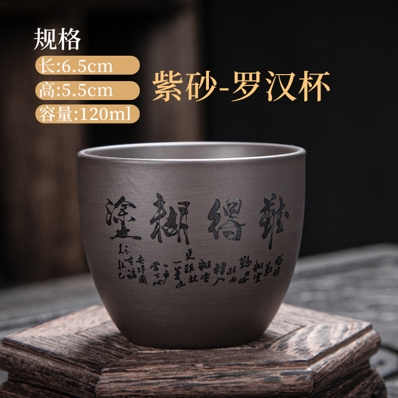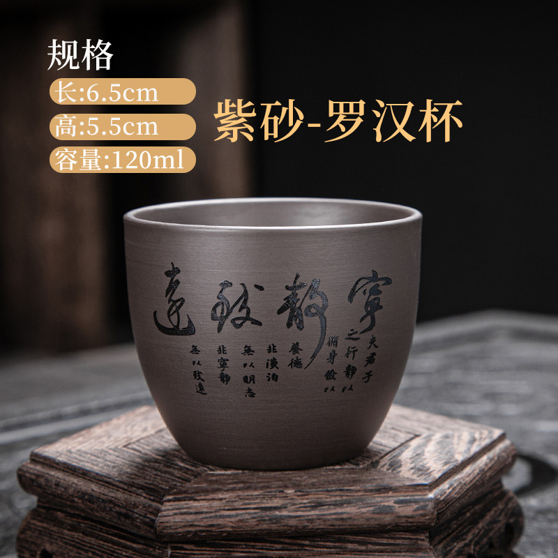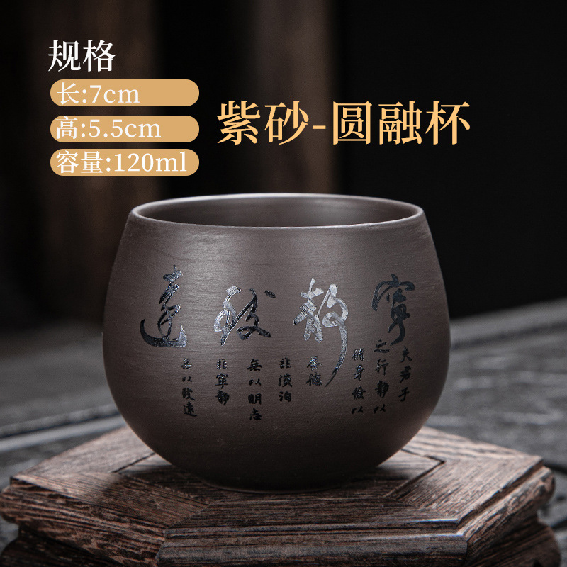 紫砂茶杯家用茶盏品茗杯单杯大号主人杯功夫茶具茶碗刻字百姓杯